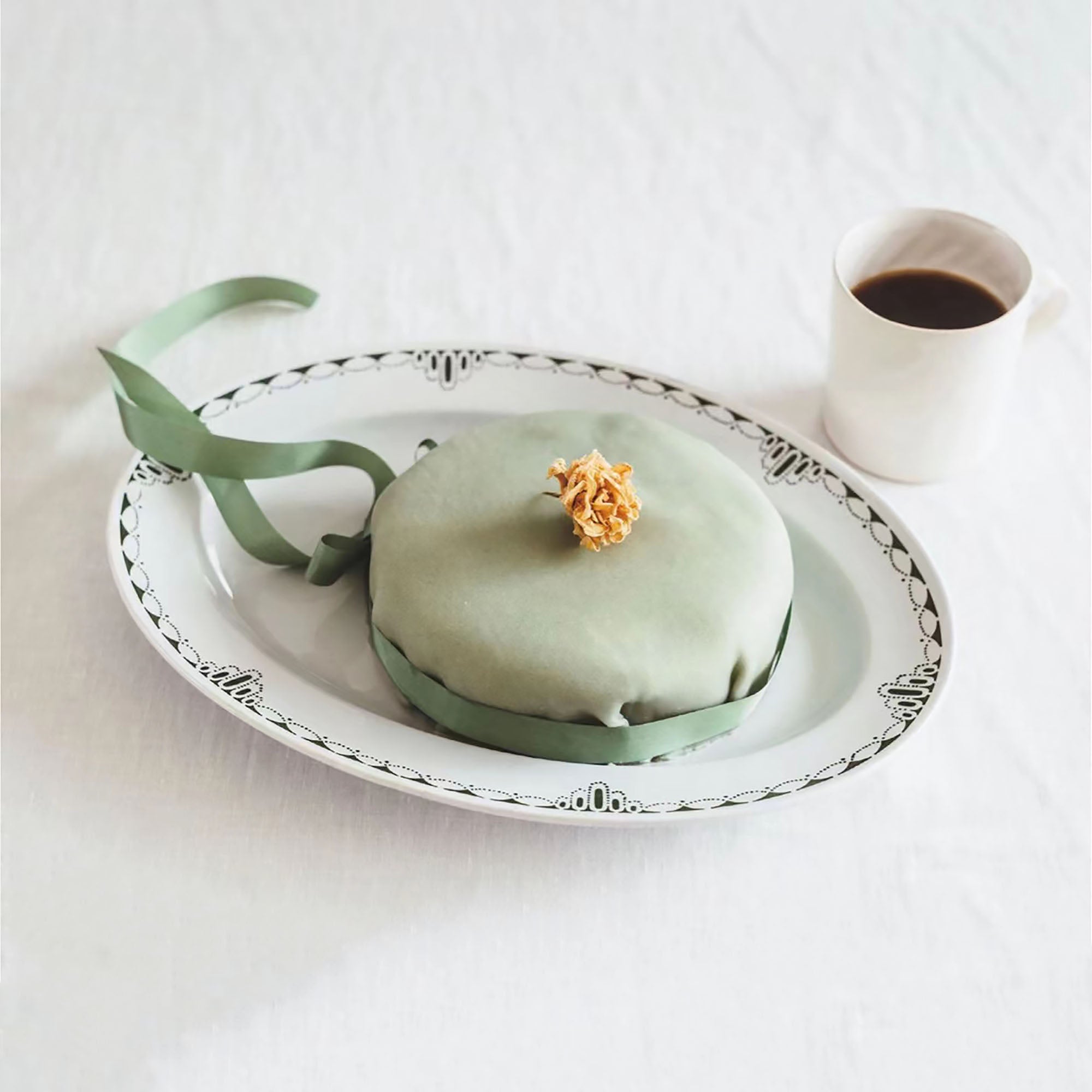 - Recouvrez entièrement le gâteau d’une couche épaisse de crème fraîche, puis enveloppez-le délicatement de pâte d’amande étalée. Découpez l’excédent et ajoutez un ruban pour parfaire la présentation.