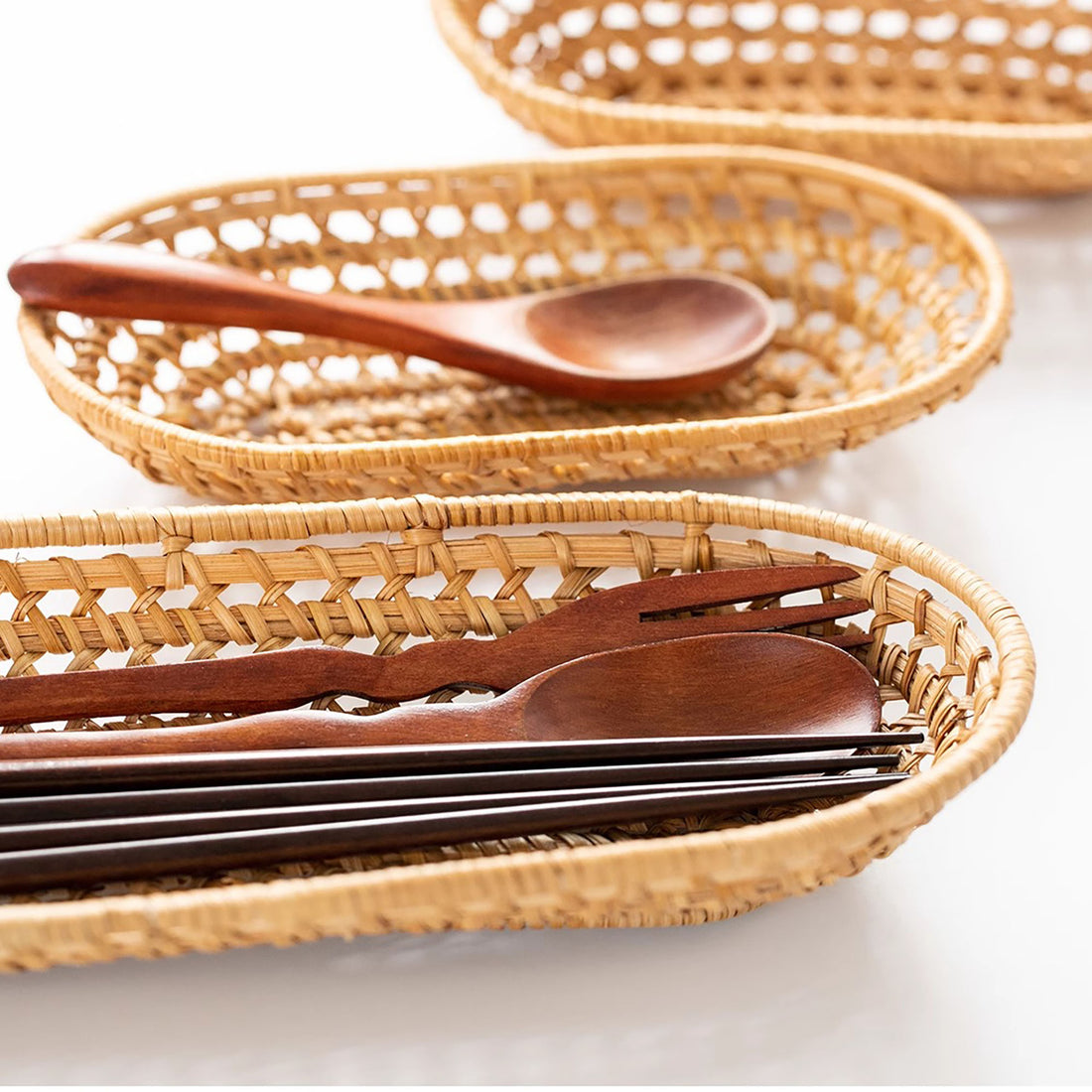Plateau rond en rotin tressé à la mainPlateau rond en rotin tressé à la main- Prix normal