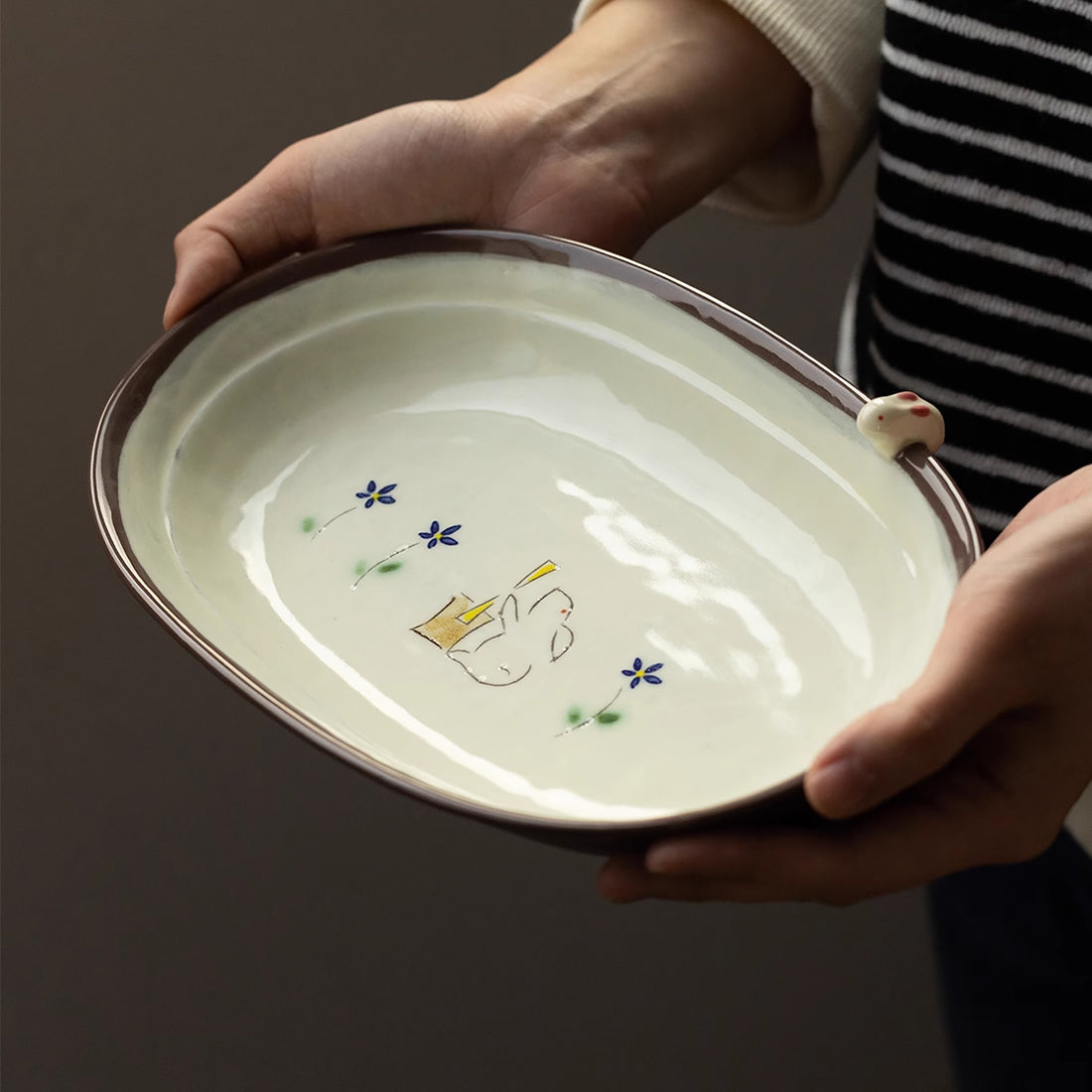 Oval ceramic plate with Sakura patternOval ceramic plate with Sakura pattern- Regular price