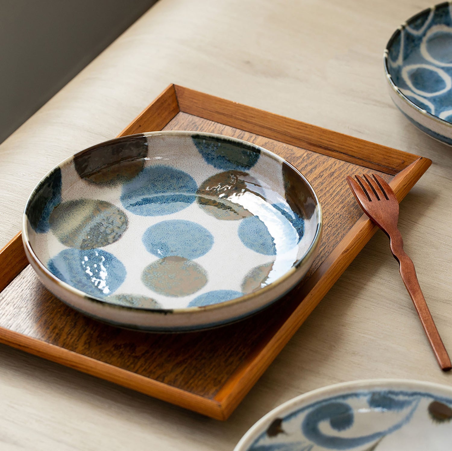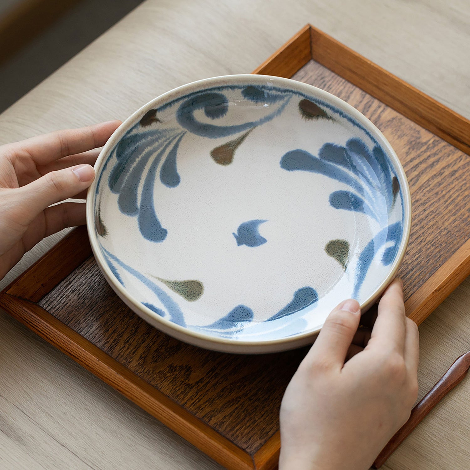 This ceramic plate, made in the Mino region, is decorated with traditional hand-painted "blue brush" patterns. It brings to your table an atmosphere deeply rooted in Japanese culture. Every detail reflects artisanal expertise and respect for traditional Japanese art. Whether for everyday use or for special occasions, this tray adds a unique and charming touch to your table.