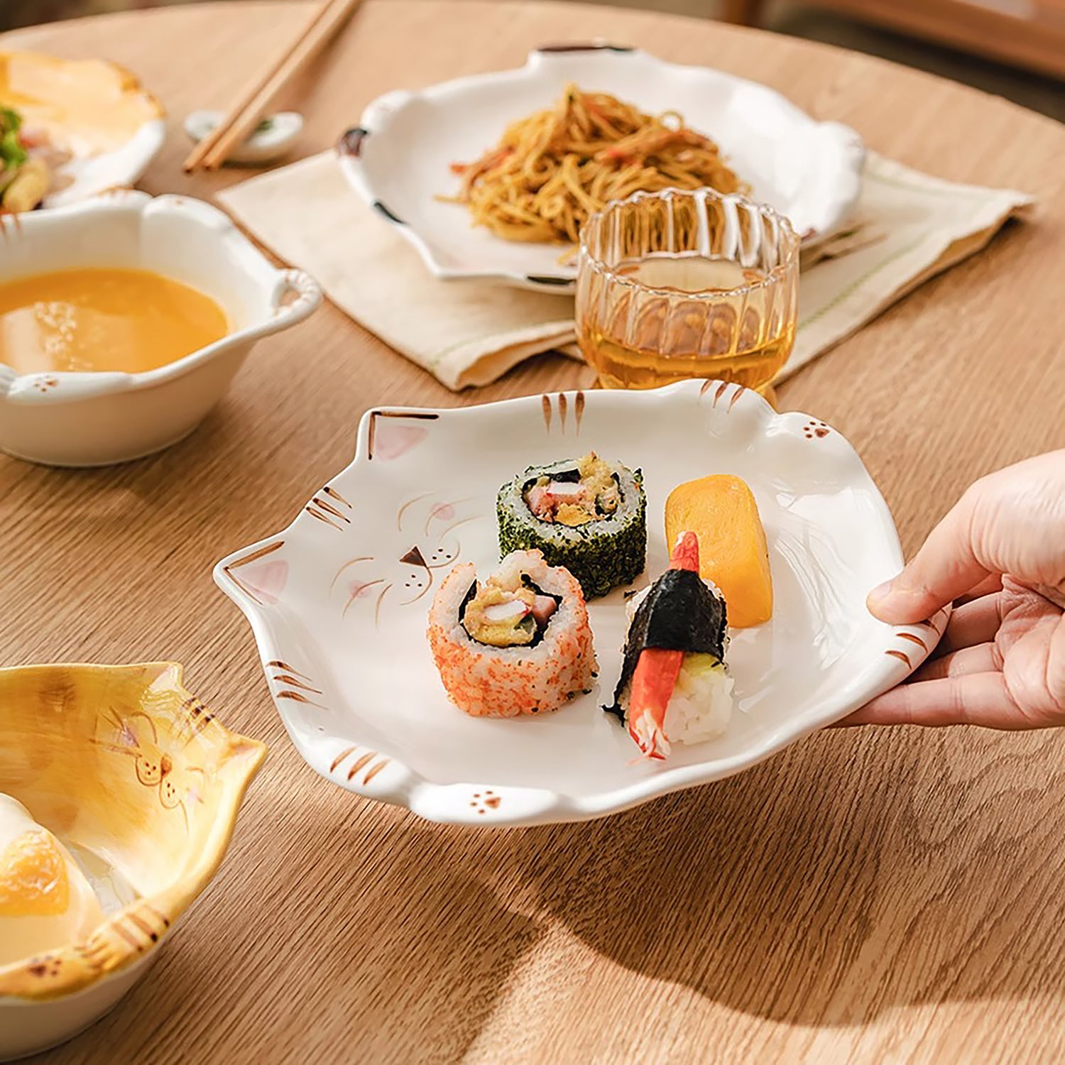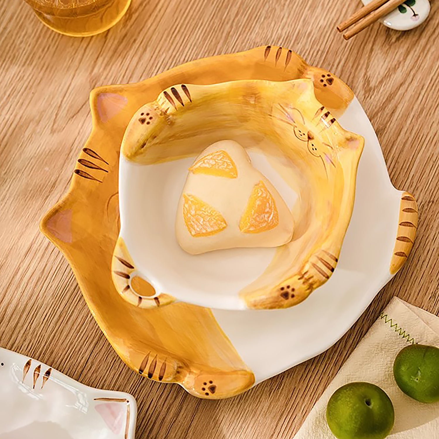 Vaisselle en céramique fabriqués à Jingdezhen, cuits à haute température avec émail sans plomb. Design en forme de chat, détails peints à la main sous émail pour un rendu plein de charme et de douceur. Parfaits pour les repas quotidiens ou comme cadeau original.
