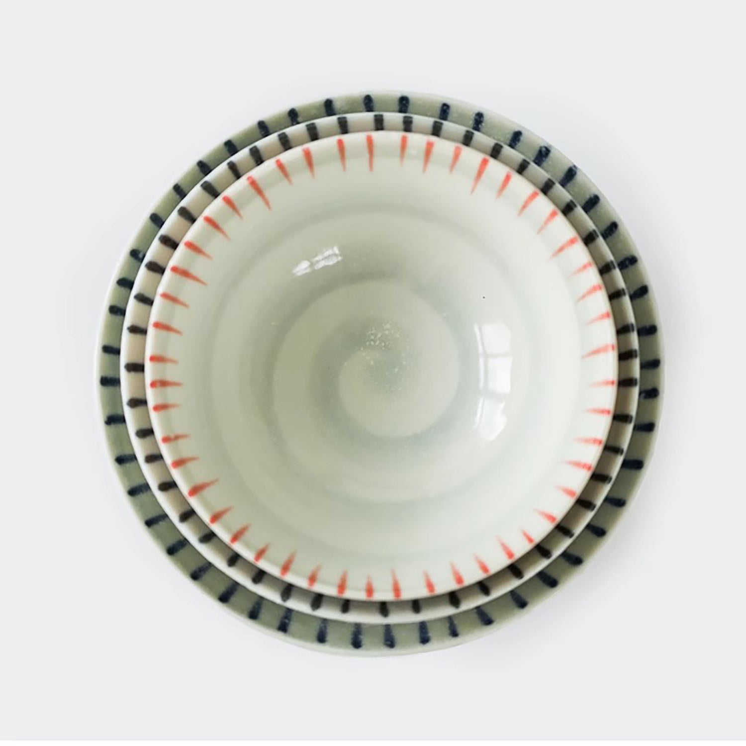 Bol en céramique Minoyaki avec Motif Suji-Tokusa