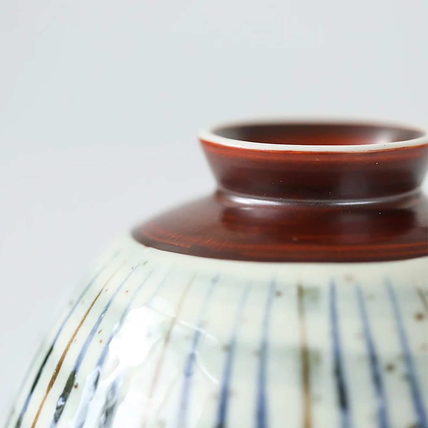 Ce bol en céramique Mino-yaki est fabriqué selon une technique artisanale sous émail haute température, garantissant une finition lisse et sans plomb pour une utilisation quotidienne en toute sécurité. Son motif Suji-Tokusa, peint à la main avec des lignes élégantes et raffinées, incarne l’esthétique japonaise intemporelle. Idéal pour sublimer vos repas et créer une ambiance authentiquement japonaise à votre table, il allie simplicité et sophistication dans un design harmonieux.