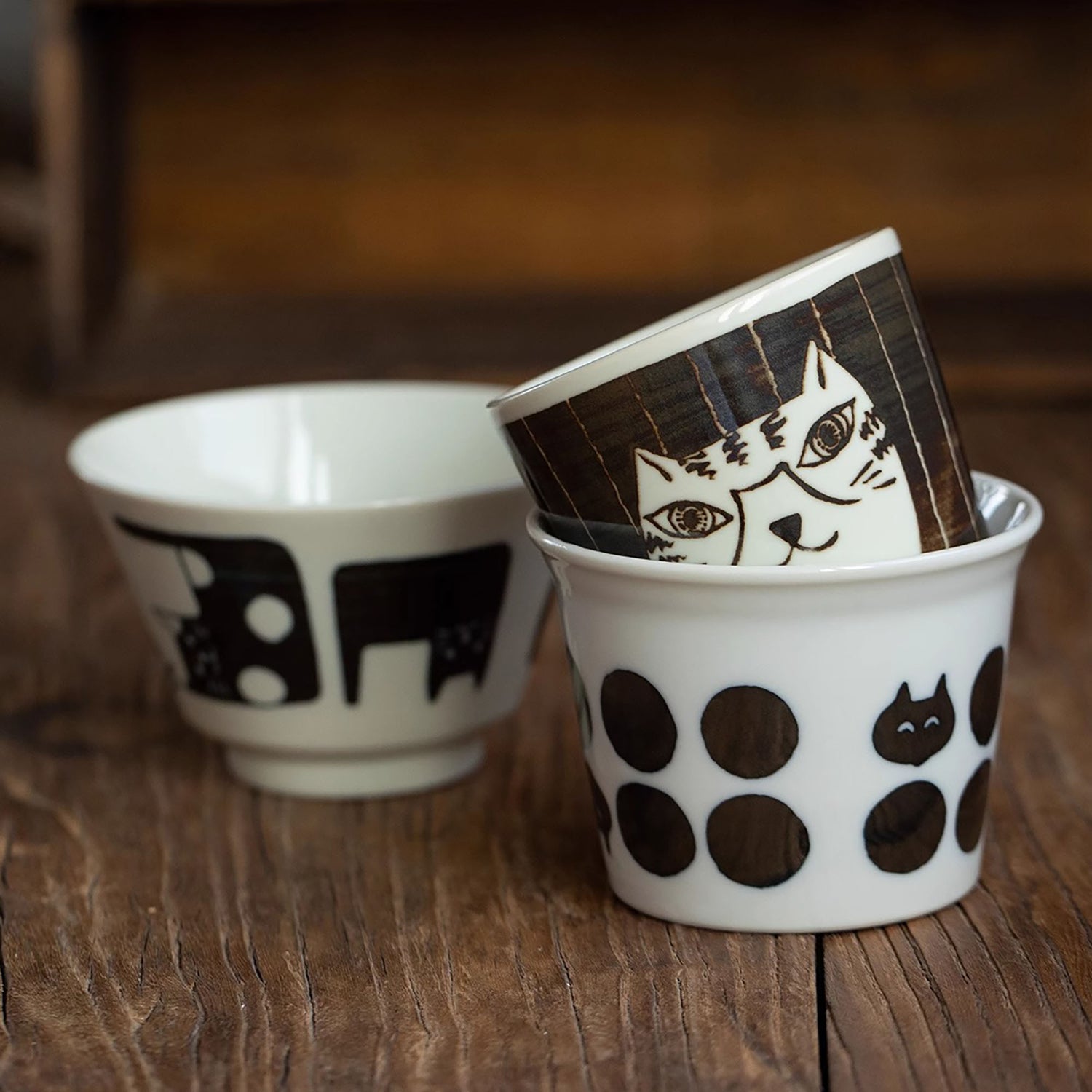 Apportez une touche de fantaisie à votre table avec les tasses en céramique Minoyaki ornée de motifs de chat adorables, issus de la série "Journal de Vie des Chats", imaginée par des designers talentueux.