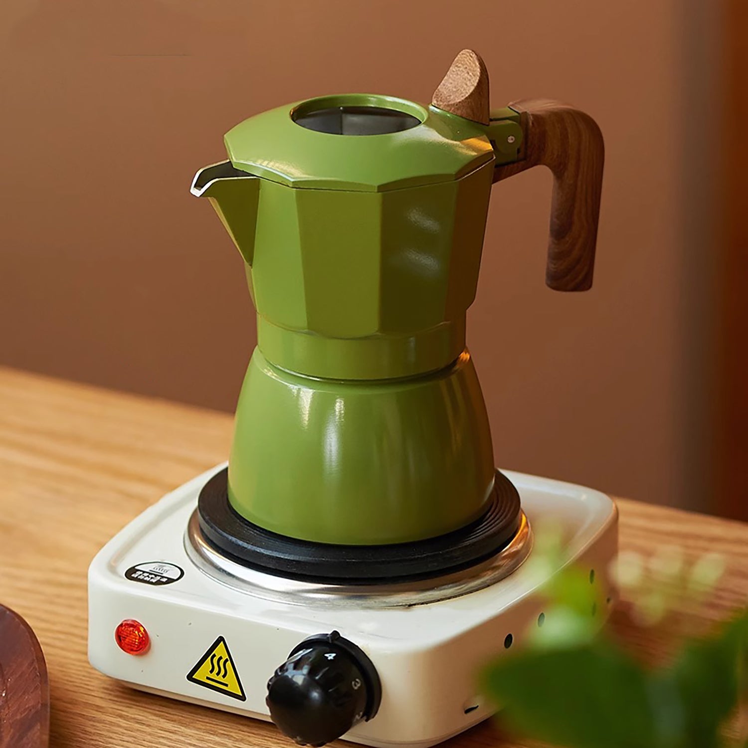 Savourez un espresso riche et aromatique chez vous avec cette cafetière Moka. Grâce à sa technologie d’extraction à double soupape haute pression, elle offre une infusion intense et veloutée. Son revêtement anti-oxydation et son corps en alliage d’aluminium assurent durabilité et élégance, tandis que son manche à effet bois apporte une touche raffinée. Un repère de niveau d’eau intégré permet un dosage précis sans besoin de verre doseur. Idéale pour les amateurs de café authentique.