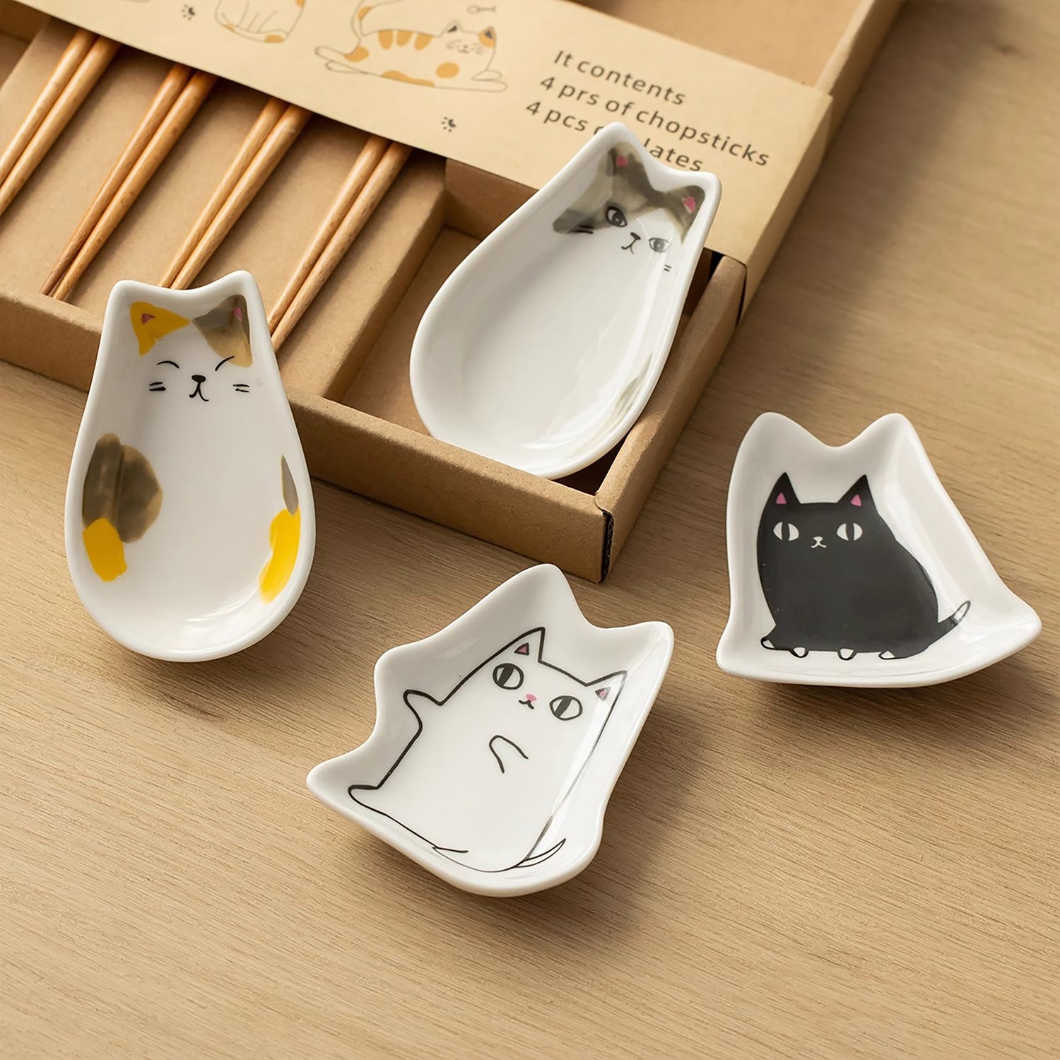 Ce coffret de baguettes en bois fabriqué au Japon est orné de petits animaux en relief adorables, apportant une touche ludique à chaque repas. Il est accompagné d’une coupelle en céramique en forme de chat, parfaite pour les sauces ou condiments. Un ensemble charmant et pratique, idéal pour égayer votre table ou faire plaisir à un·e passionné·e de chats.