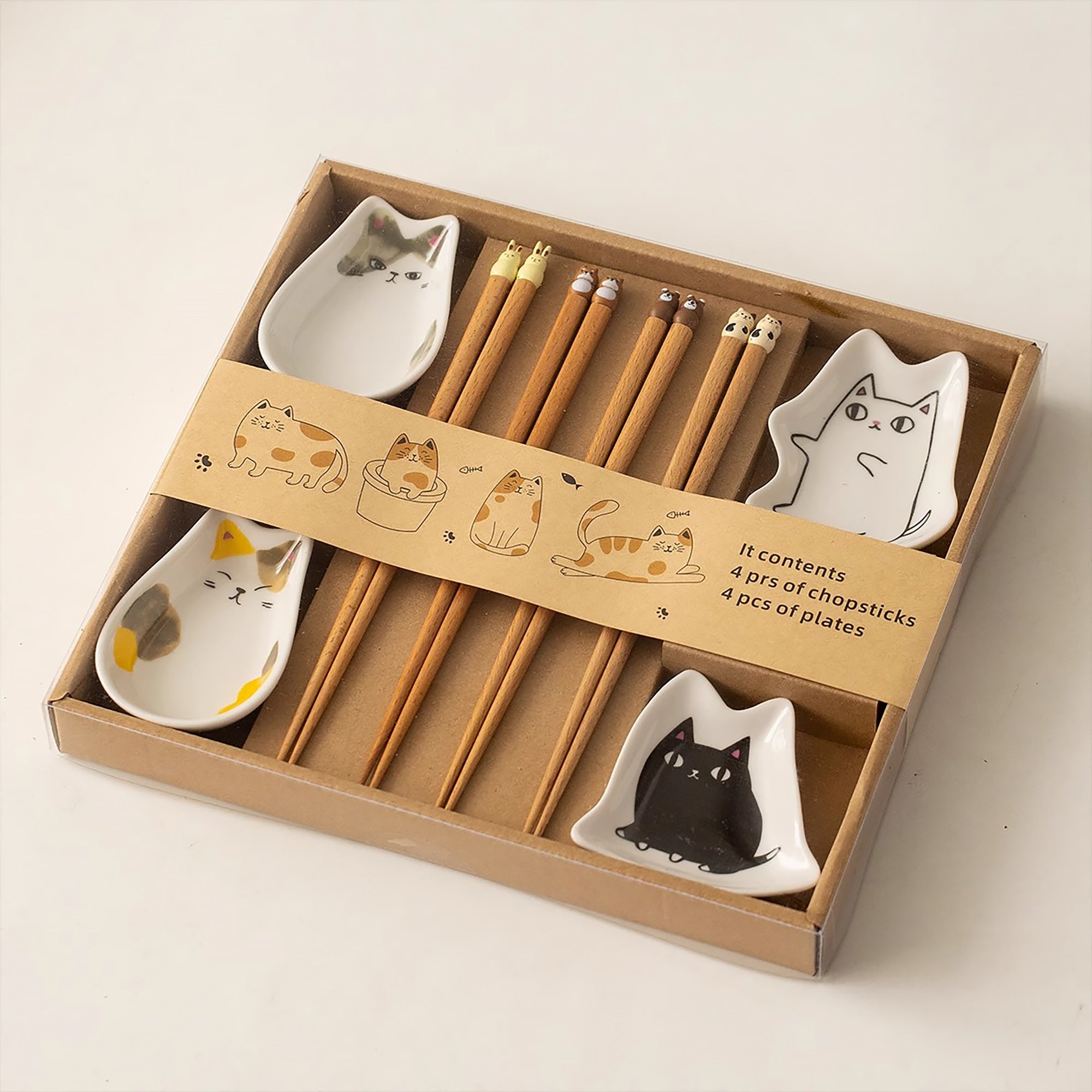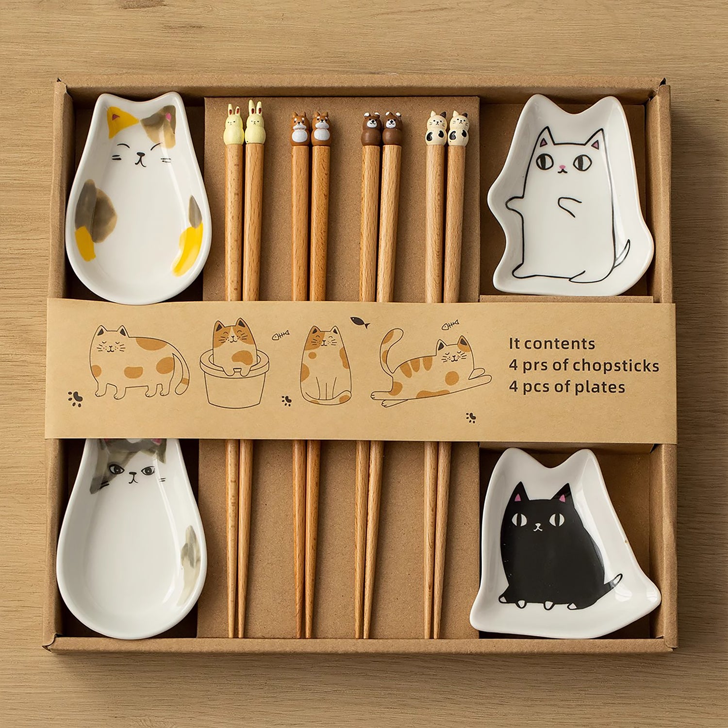 Coffret de baguettes en bois avec coupelle chat