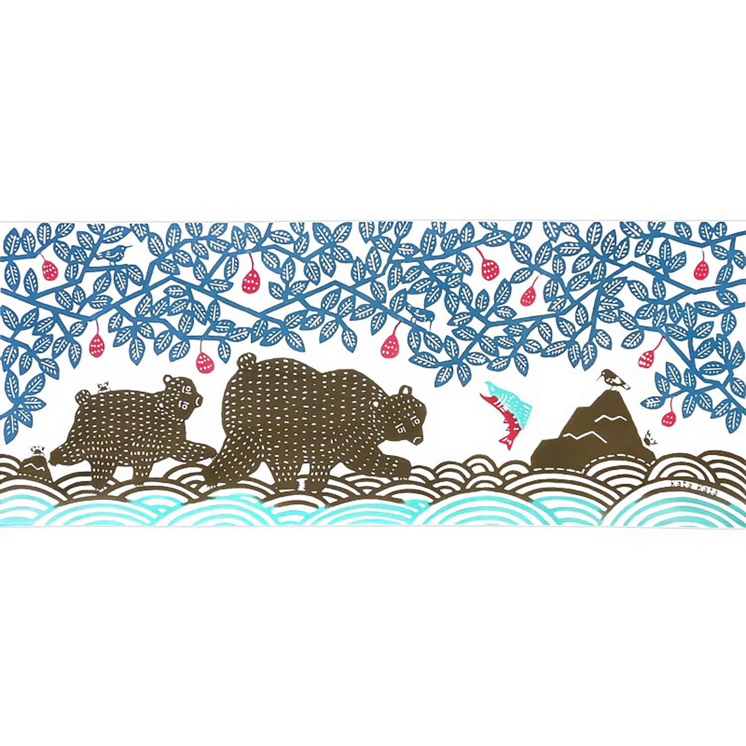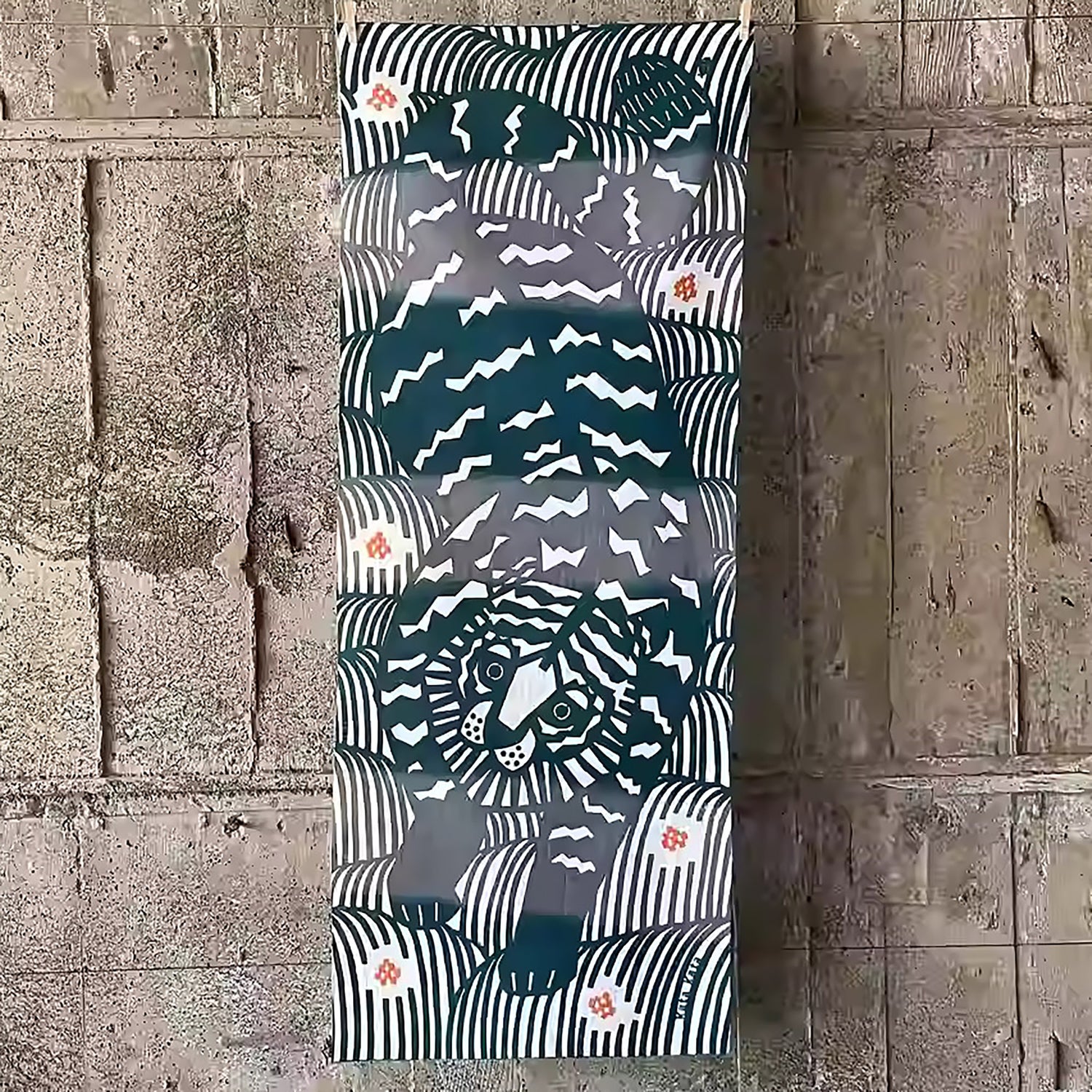 Ce furoshiki long en coton signé kata kata est réalisé selon la méthode traditionnelle de teinture manuelle (chusen), avec une coupe sans surjet pour préserver l’aspect naturel du tissu. Illustré d’animaux expressifs dans un style typiquement japonais, il s’utilise comme foulard, tenture, furoshiki ou même comme tissu de création pour coudre votre propre petit sac. Un objet artisanal qui allie charme et polyvalence.