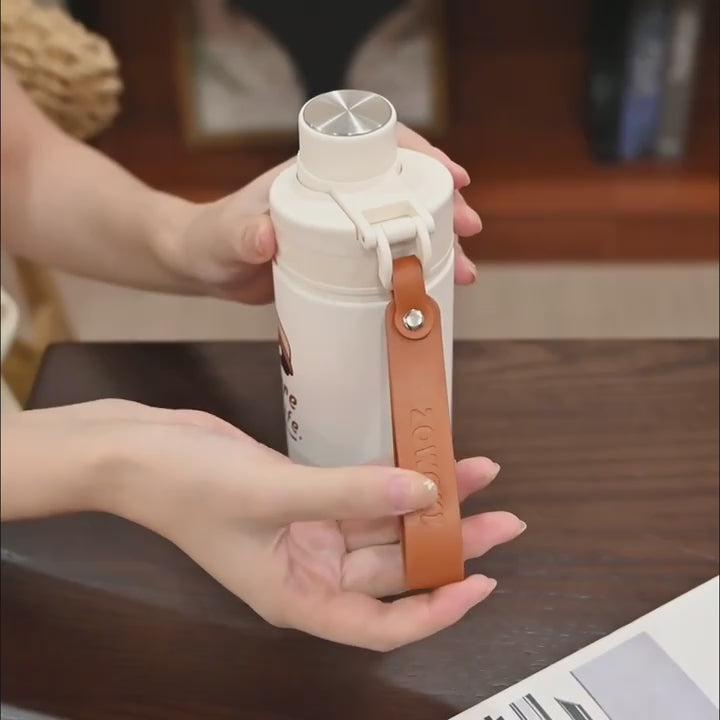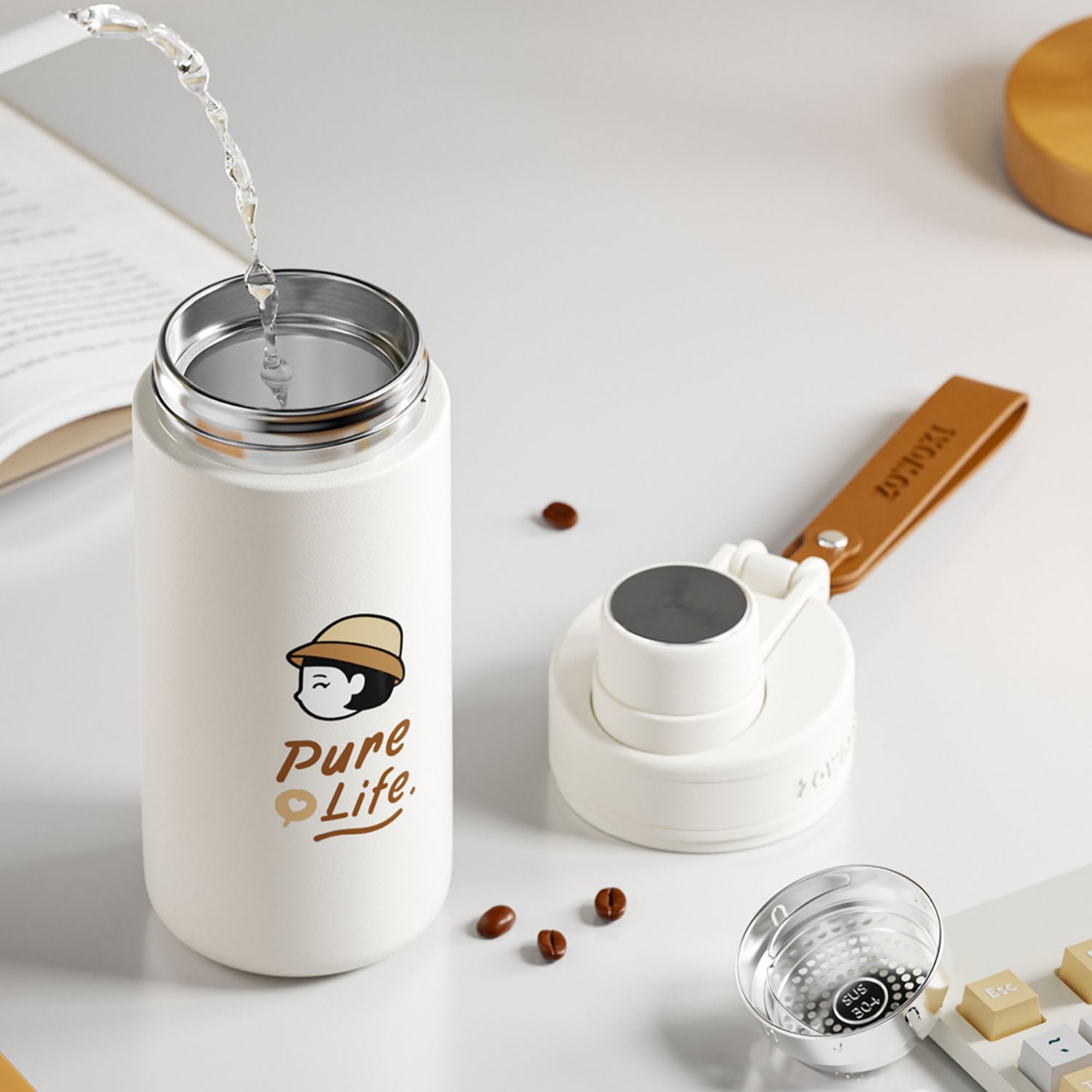 Designed with a tea-water separation, this bottle is equipped with a removable stainless steel infuser, transforming a simple bottle into a true wellness accessory. Its SUS316 stainless steel interior ensures long-lasting heat retention, without leaving any odor. Equipped with a soft PU leather strap, it is easy to carry. The patterns created in collaboration with designers add a minimalist and playful touch, making each sip more enjoyable. Ideal for everyday use or as a thoughtful gift.
