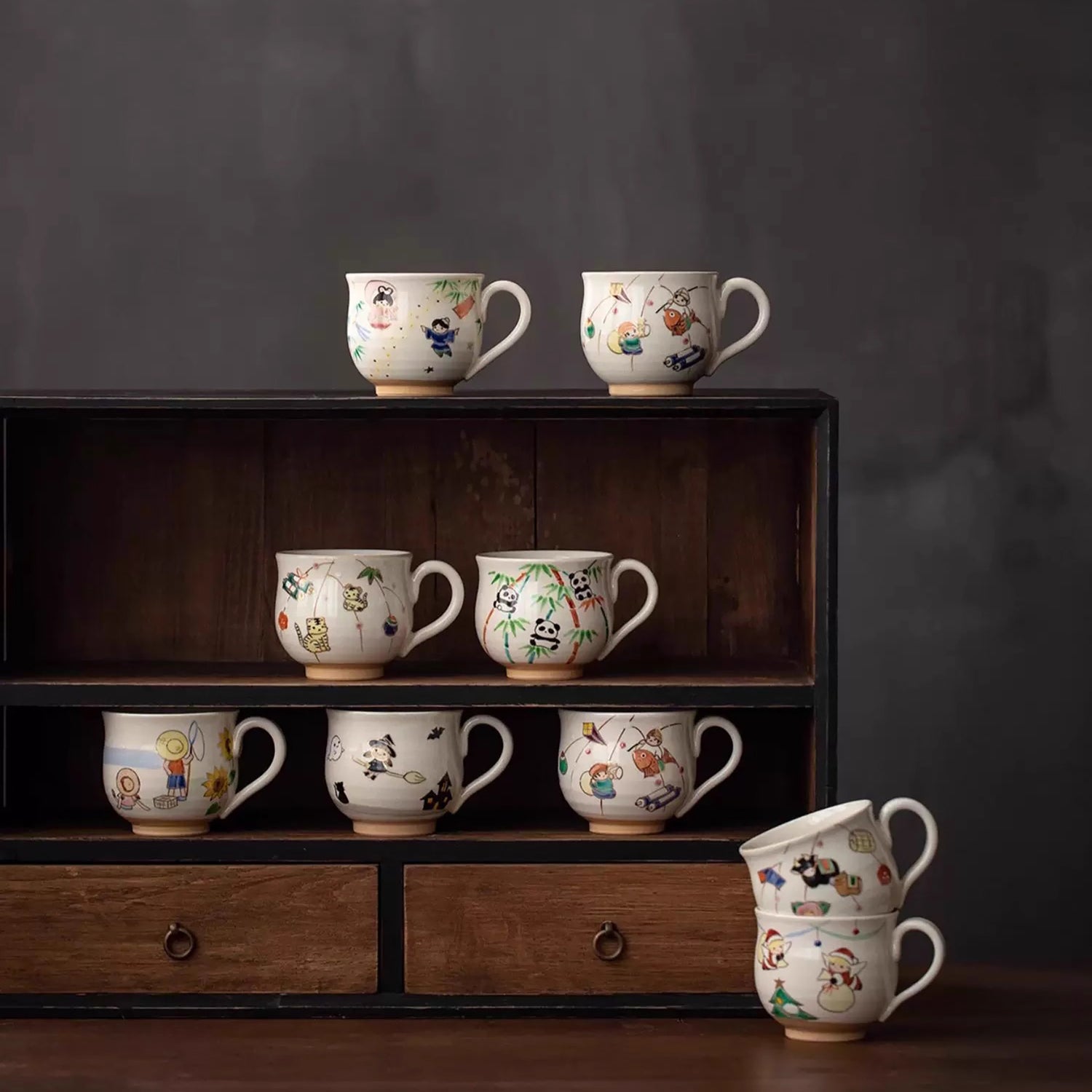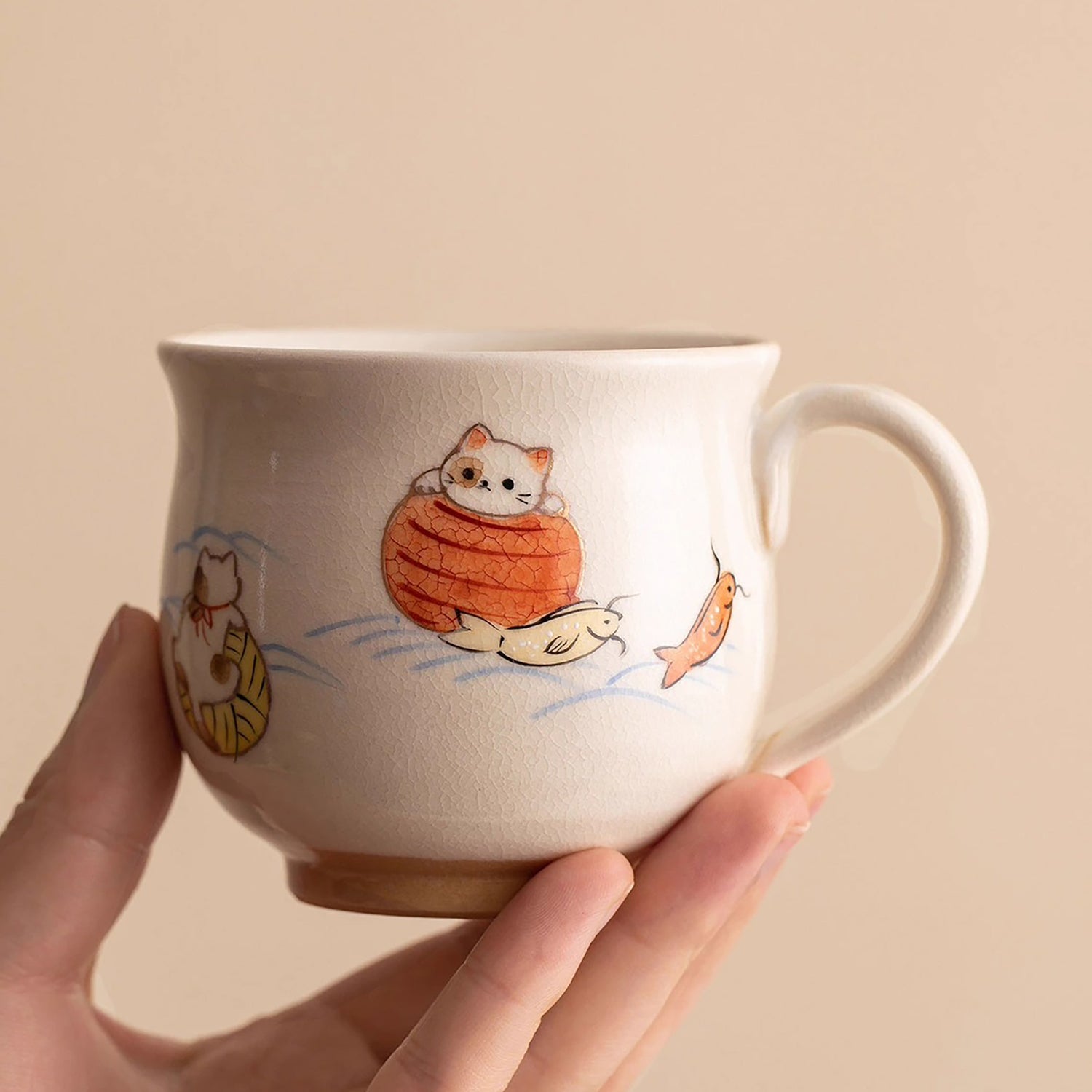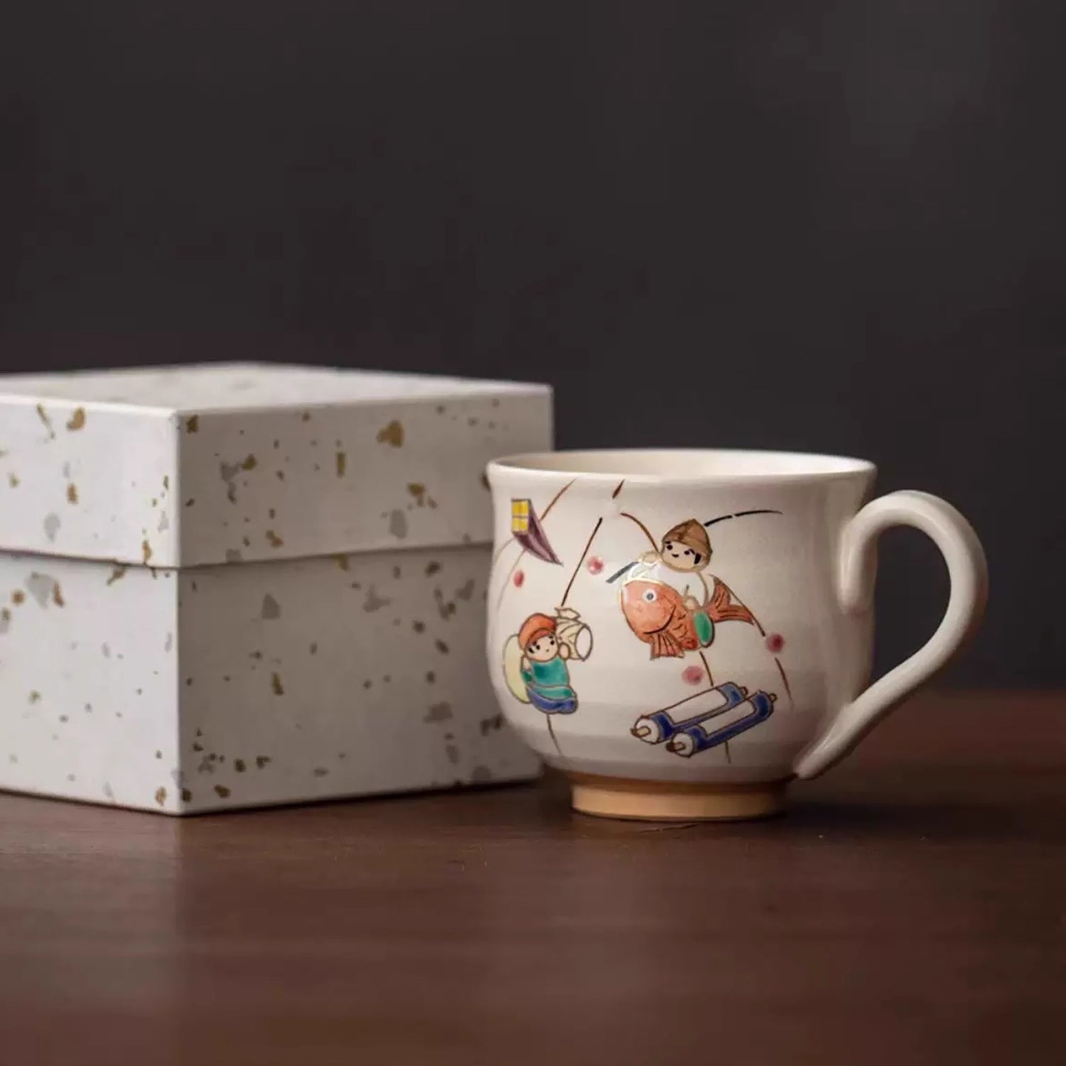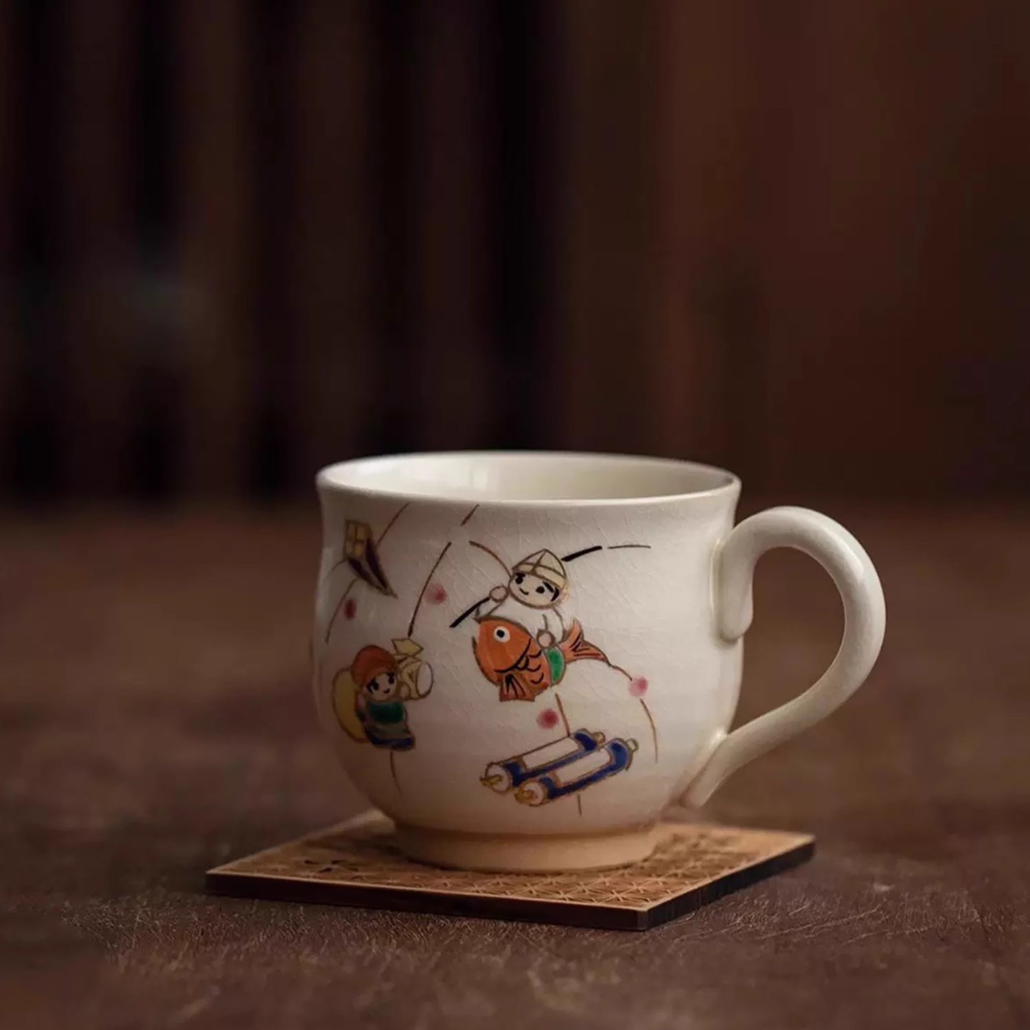 Ce mug en céramique, réalisée à la main dans l'atelier Temari, présente des illustrations originales signées par M. Masao Namikawa. Il reflète l'essence de la culture unique de Kyoto et l'élégance chaleureuse de l'art japonais. Un choix idéal pour un usage personnel ou comme cadeau raffiné.