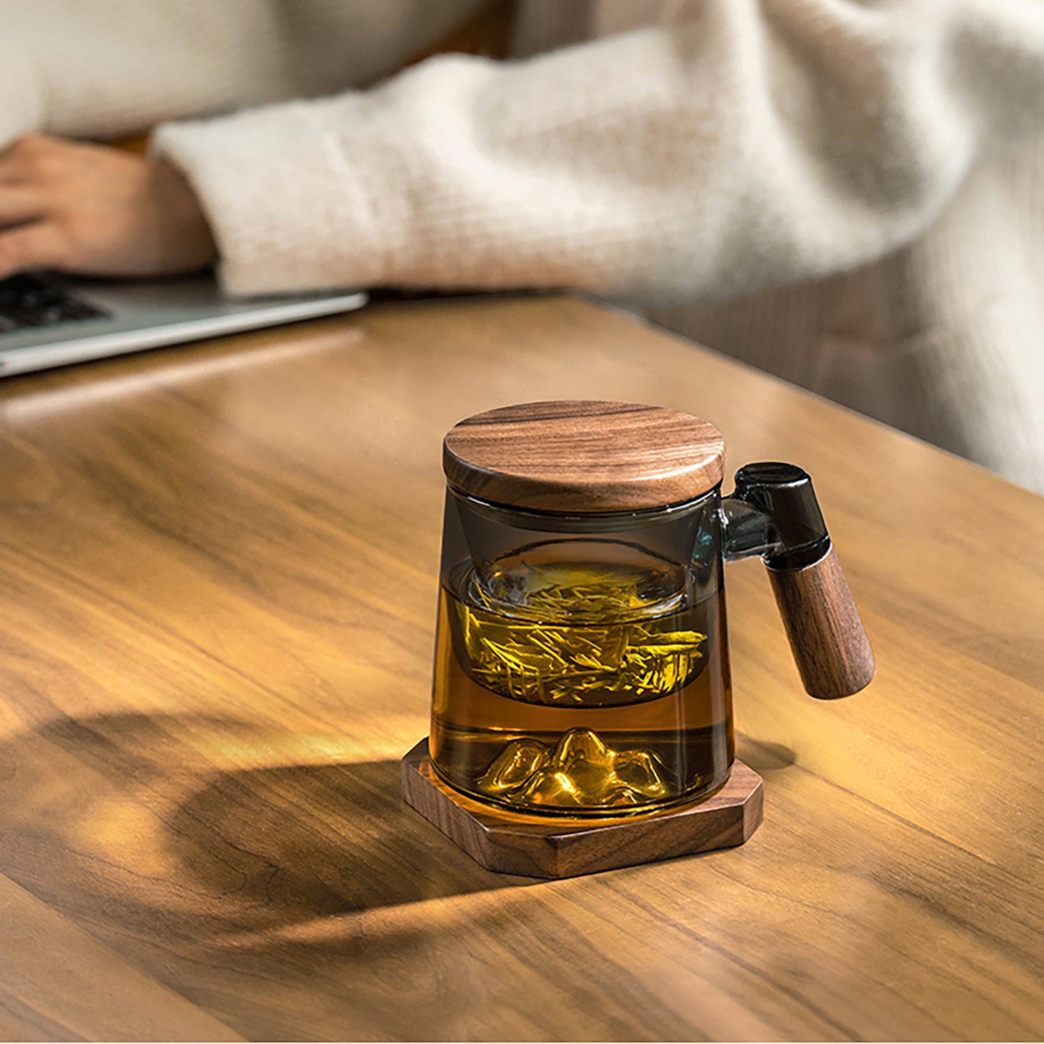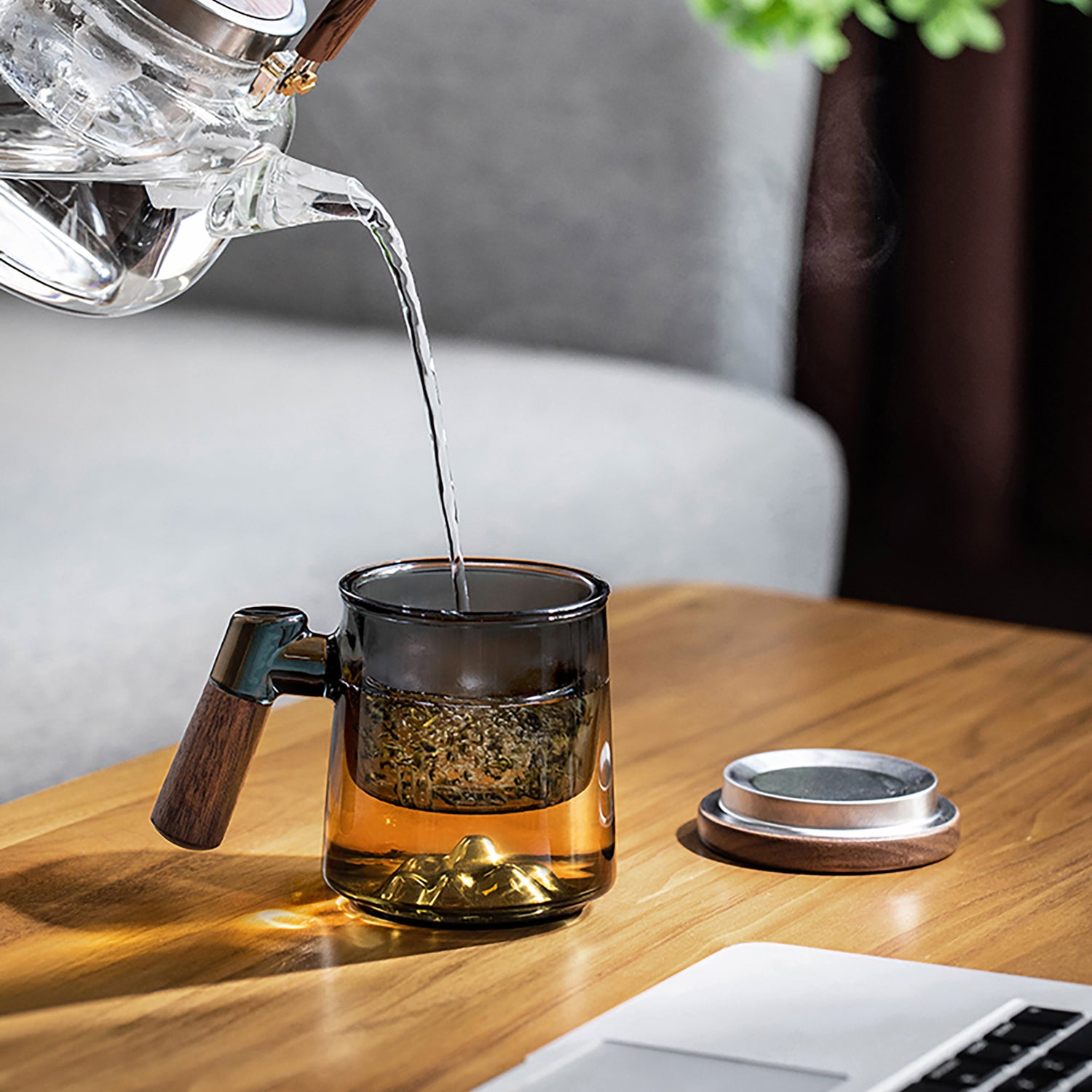 This Glass Teapot has a lid and wooden handle that is easy to handle without burning your fingers. Beautiful mountain view in glass inside when you infuse your tea or flowers. With the wooden coaster you can easily place it on the table. An ideal teapot for iced summer teas and infusions or to admire the blooming of a tea flower. This small size is easy to bring and ideal for use in the office.