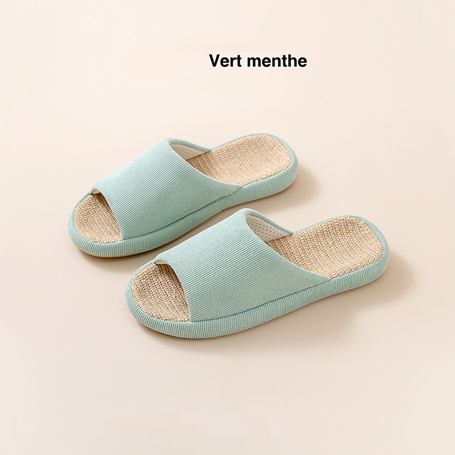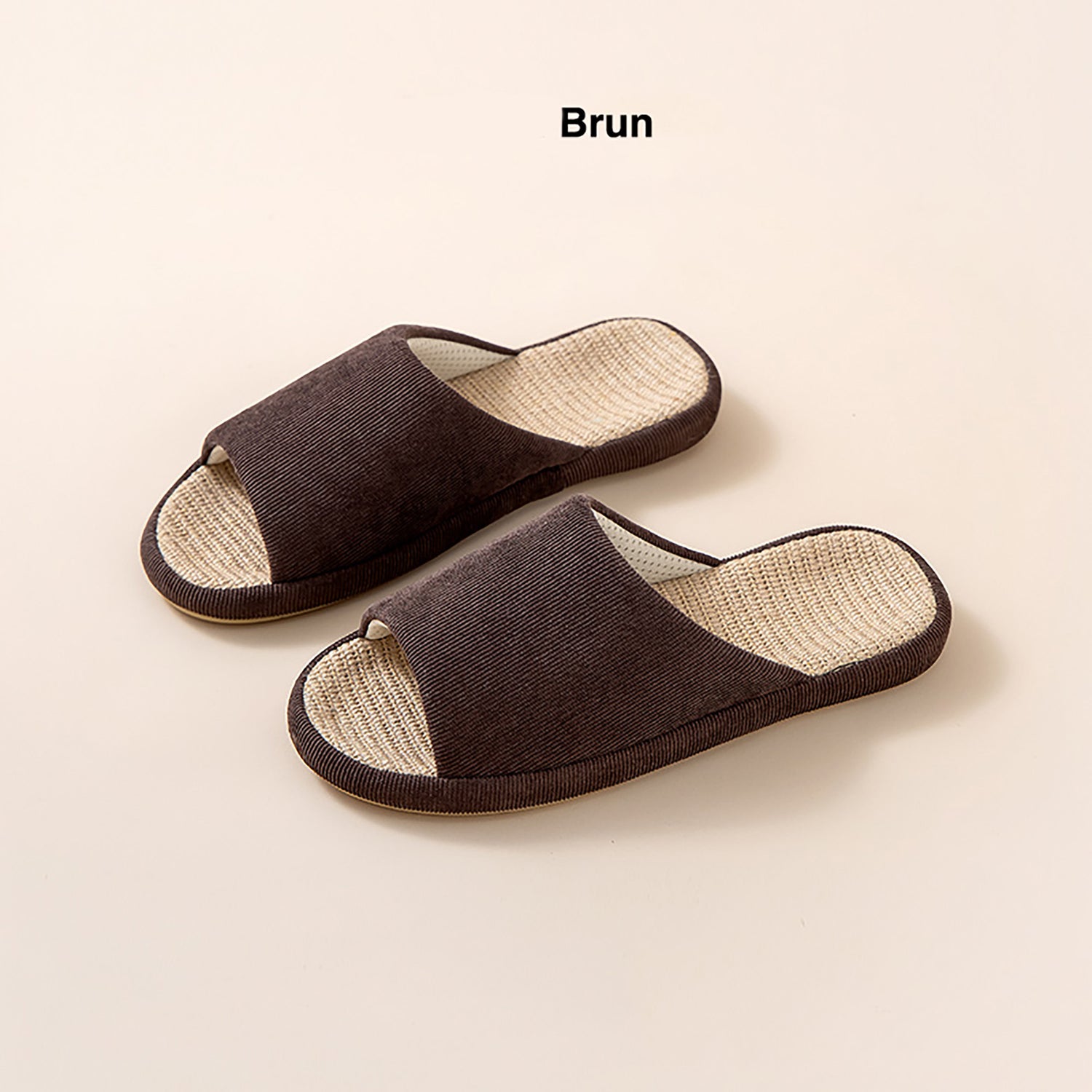 These comfortable open toe mule slippers are perfect for indoor and outdoor use, all year round. Made with a corduroy upper and a linen insole, they offer excellent comfort and breathability. The TPR sole, an environmentally friendly material, ensures a silent, non-slip, flexible and durable effect, making these slippers an ideal choice.
