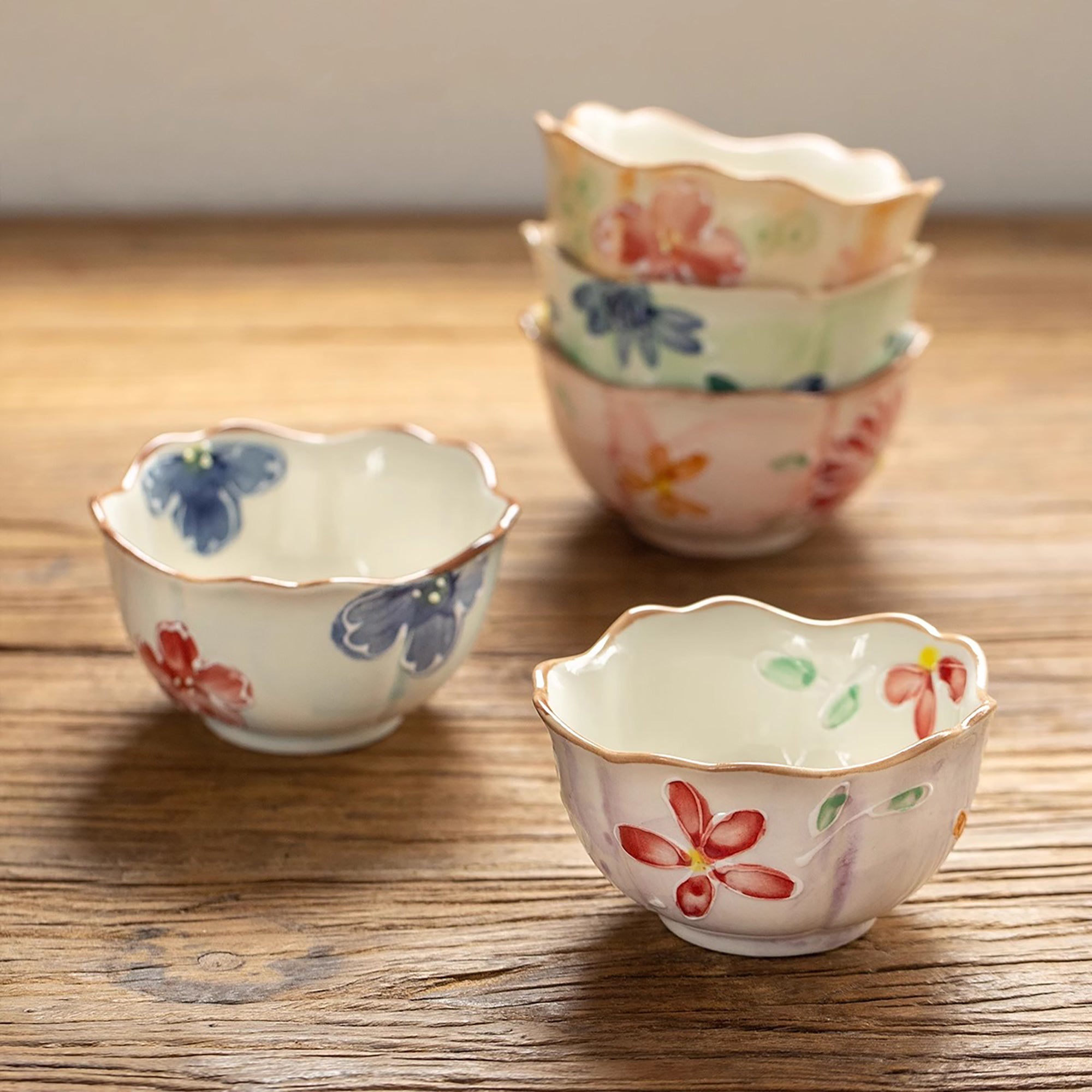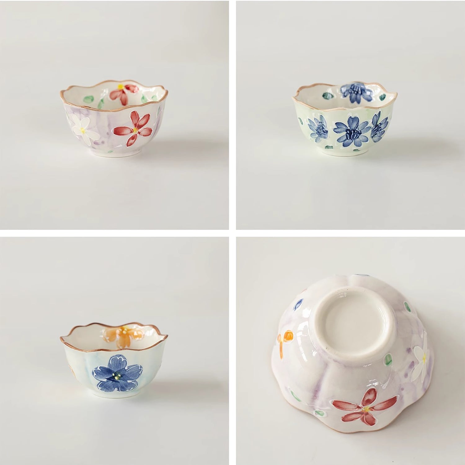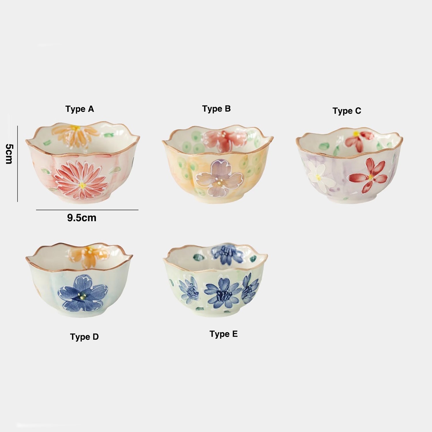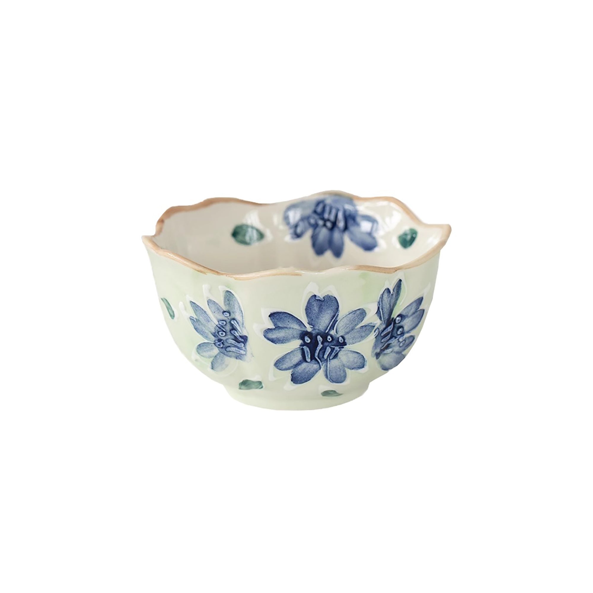 Ce petit bol en céramique, fabriqué à Jingdezhen selon la technique traditionnelle de glaçure sans plomb cuite à haute température, adopte une forme délicate de fleur avec des bords ondulés. L’intérieur et l’extérieur sont décorés de fleurs peintes à la main, apportant une touche printanière à votre table. Le bord brun souligne son charme vintage. Parfait pour servir des sauces, des fruits ou des amuse-bouches, ce bol est à la fois pratique et décoratif.
