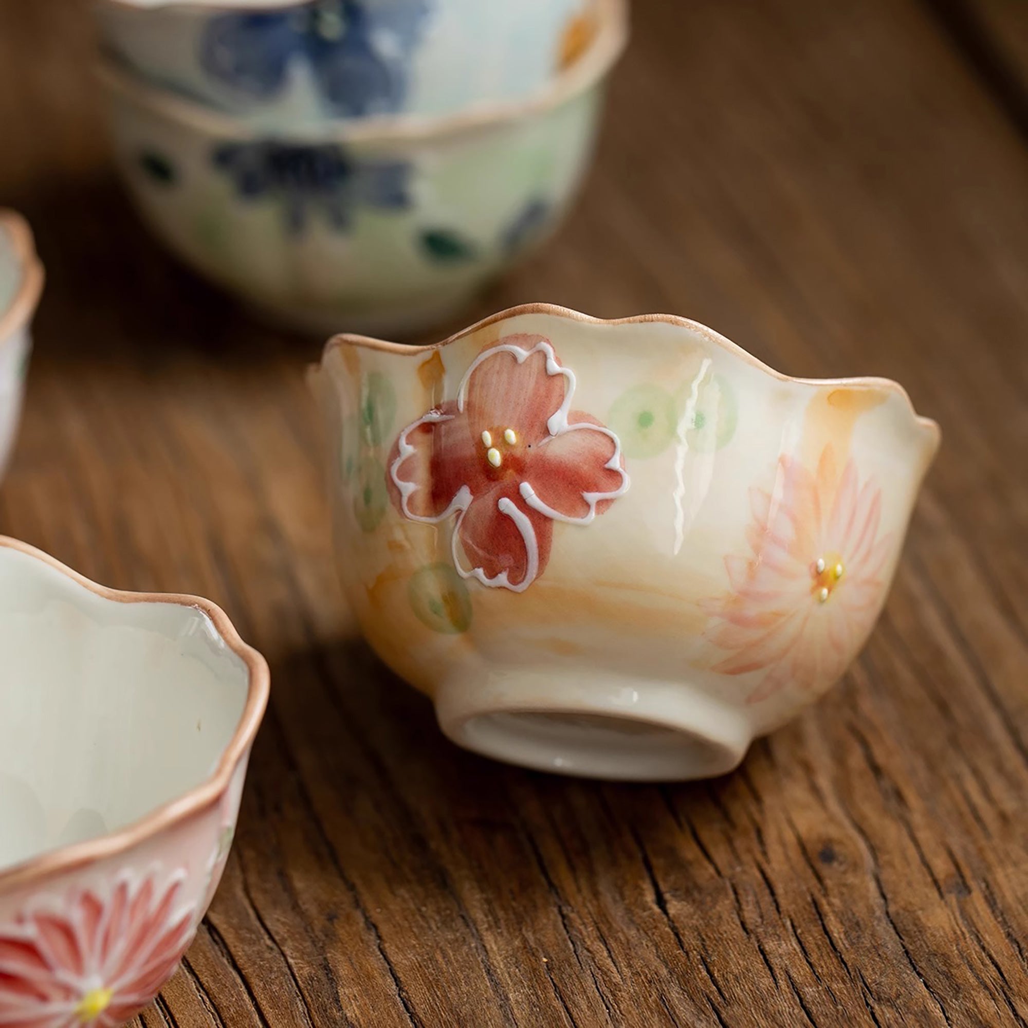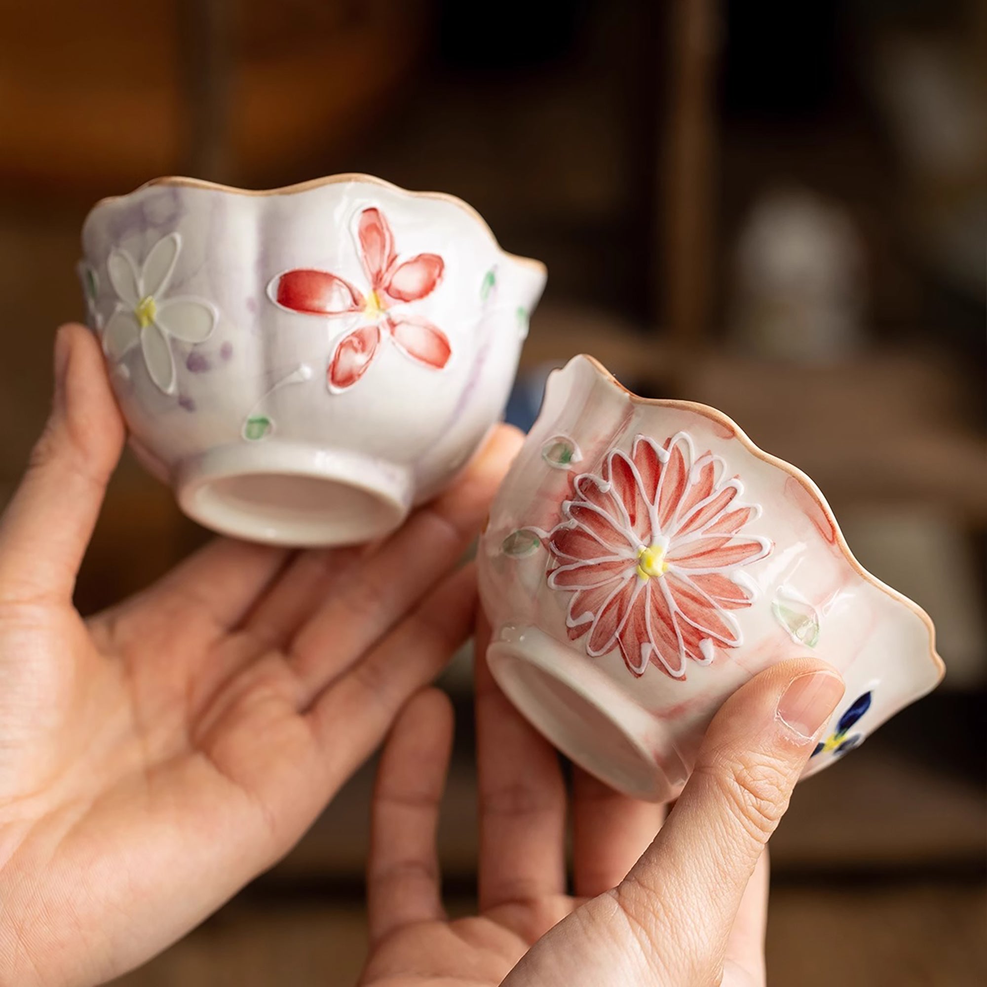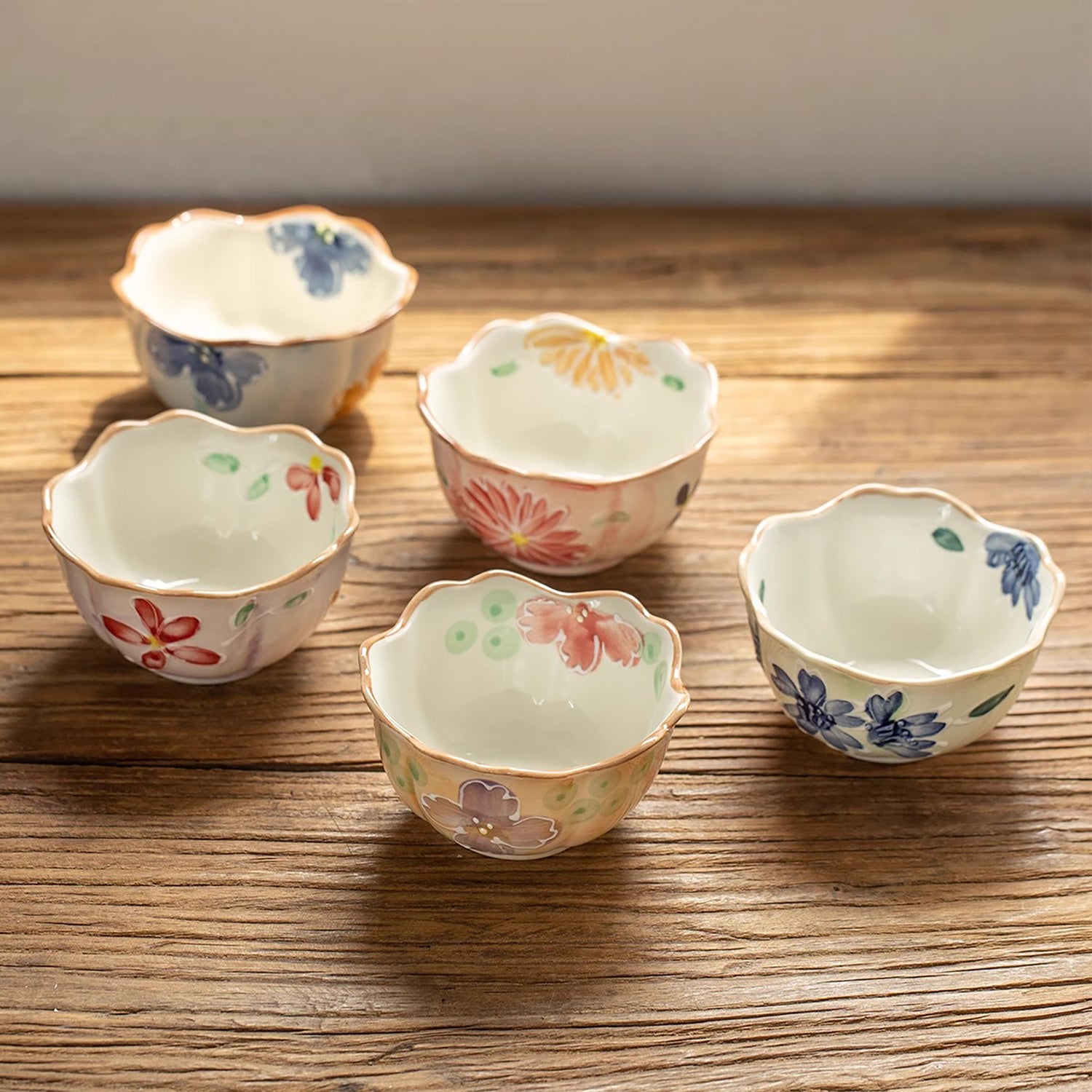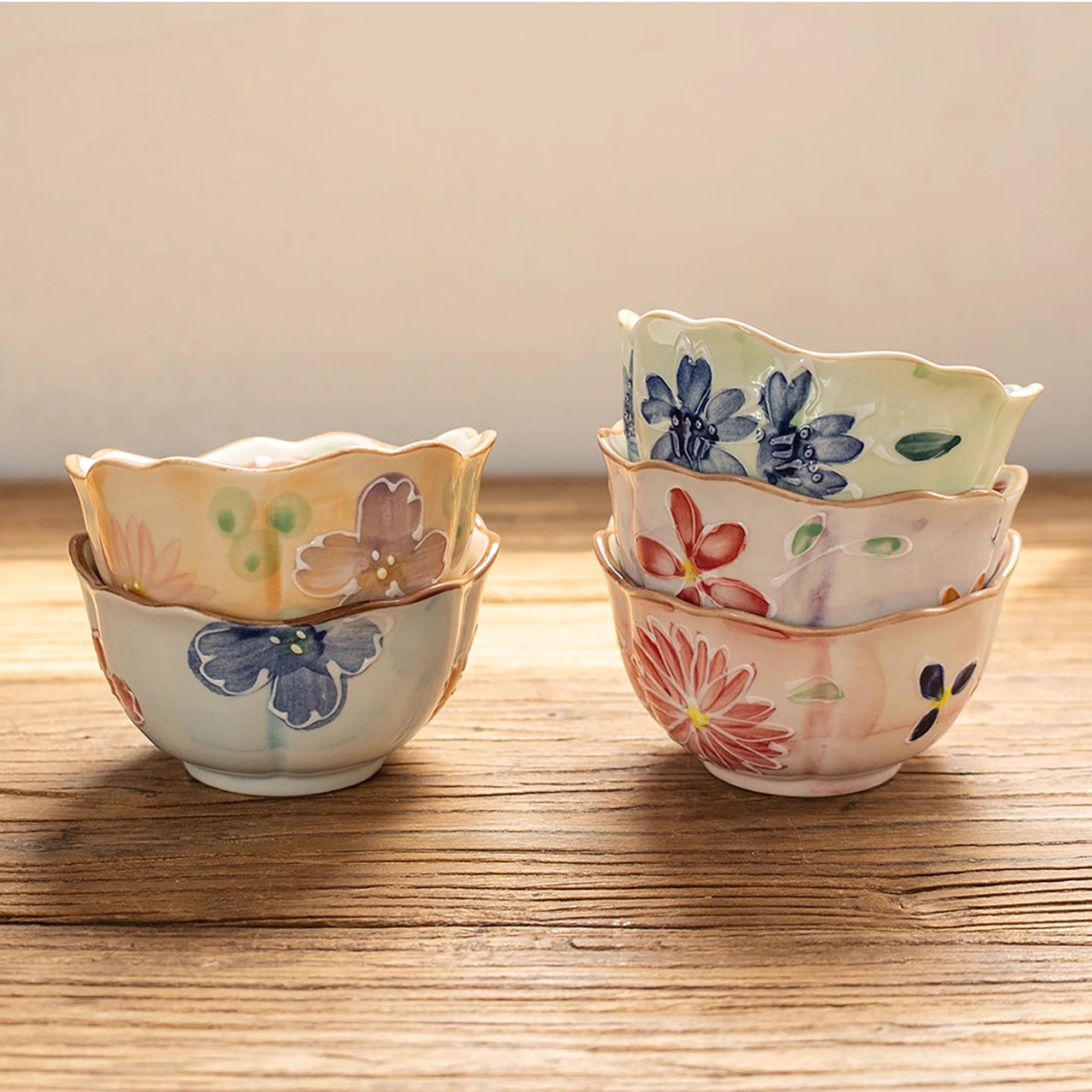 Ce petit bol en céramique, fabriqué à Jingdezhen selon la technique traditionnelle de glaçure sans plomb cuite à haute température, adopte une forme délicate de fleur avec des bords ondulés. L’intérieur et l’extérieur sont décorés de fleurs peintes à la main, apportant une touche printanière à votre table. Le bord brun souligne son charme vintage. Parfait pour servir des sauces, des fruits ou des amuse-bouches, ce bol est à la fois pratique et décoratif.