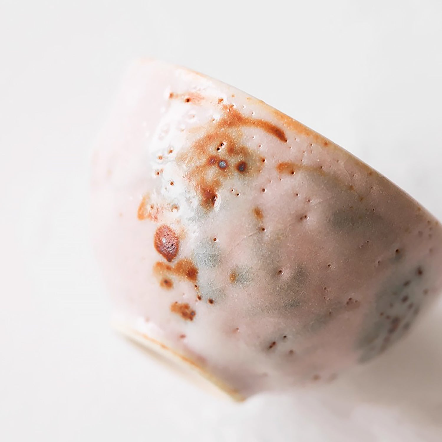 Tasse en grès Shino-yaki avec motifs naturels