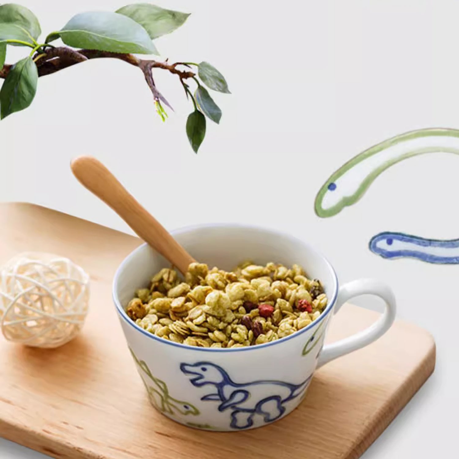Our magnificent collection of ceramic tableware for children! This collection is made in Japan and is decorated with adorable Dinosaur designs, made with an underglaze color technique for a premium finish. This tableware is perfect for giving your children fun at every meal.