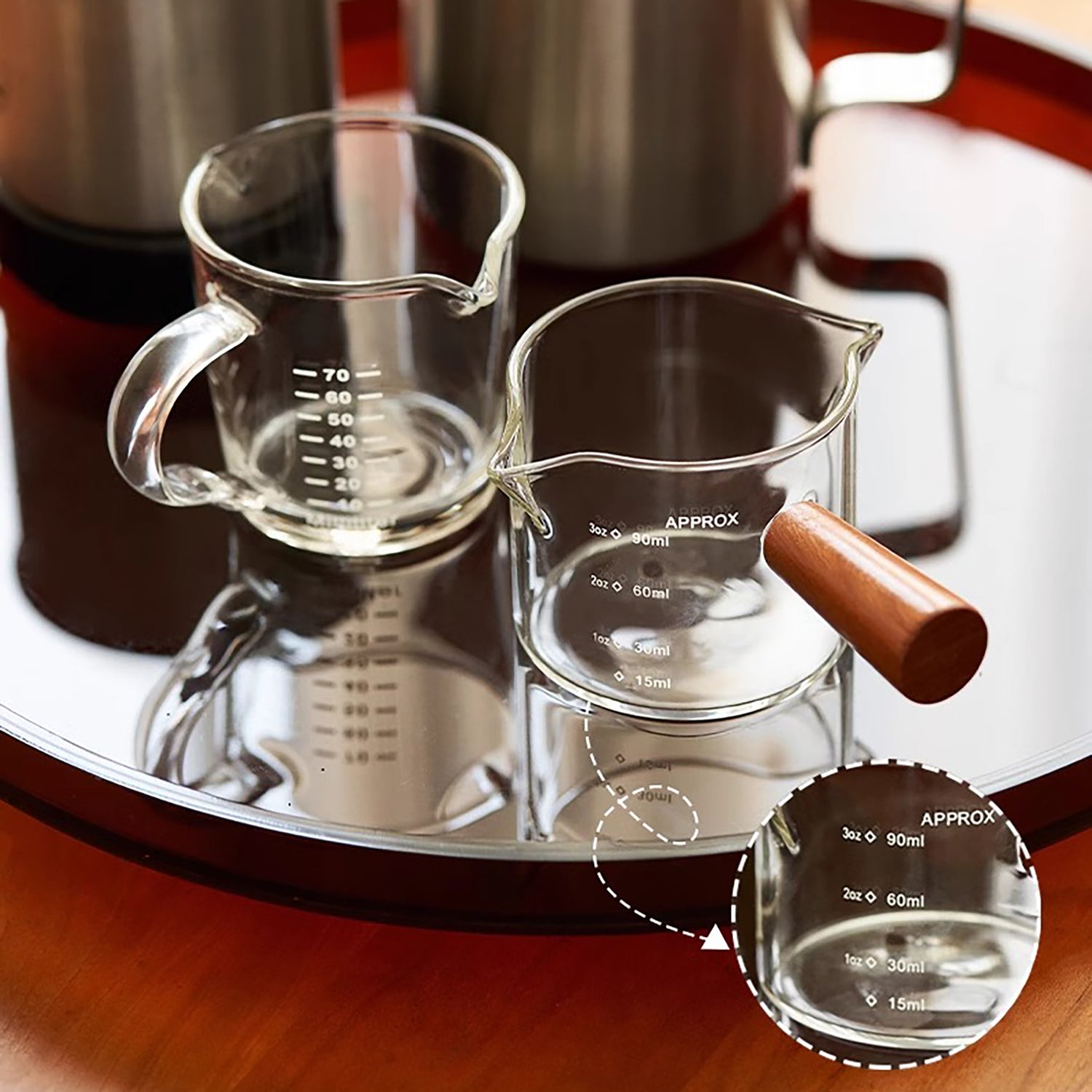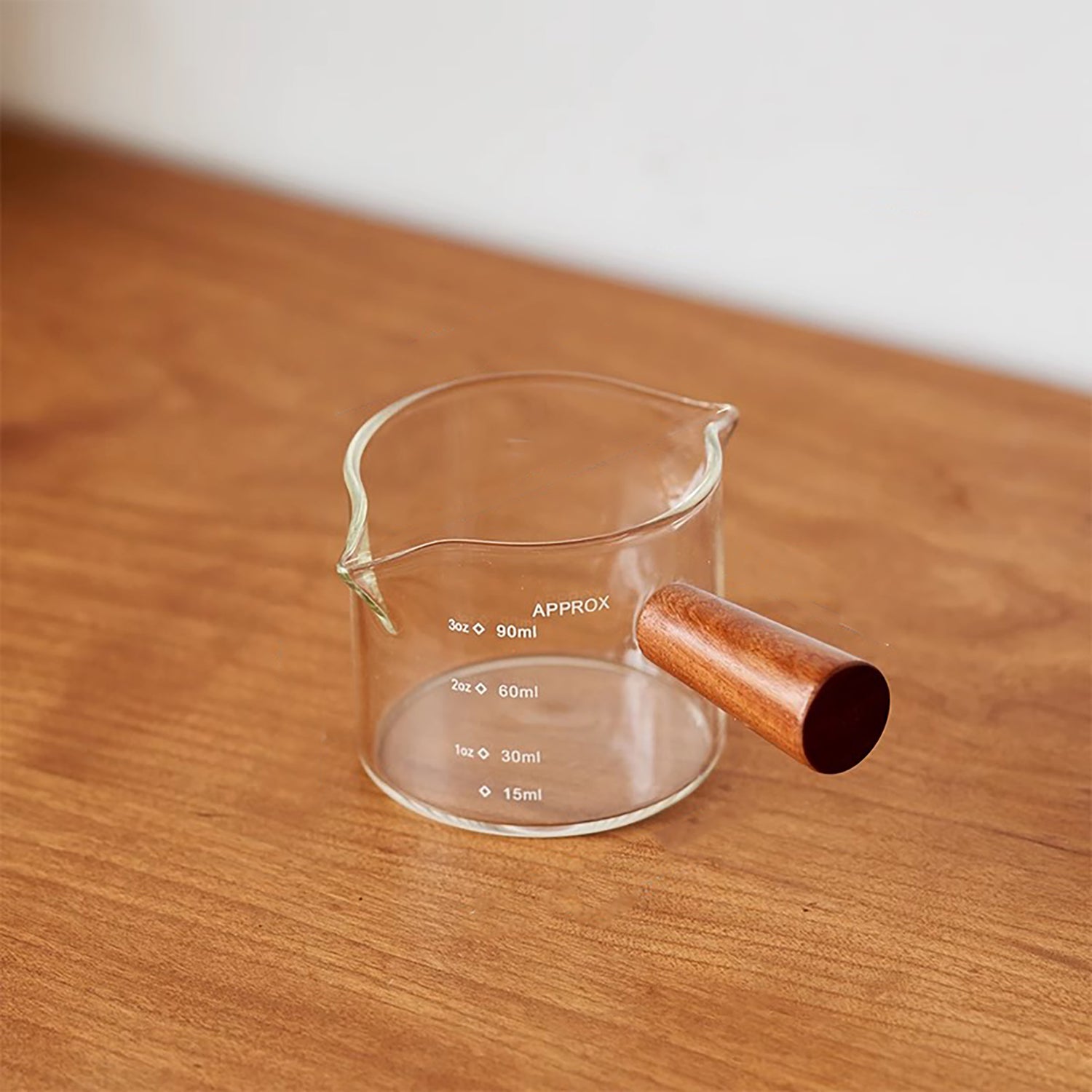 Ce verre doseur en borosilicate soufflé à la main est à la fois élégant et résistant aux chocs thermiques. Son double bec verseur assure une utilisation fluide et pratique. Doté d’une poignée latérale en bois, il offre une prise en main confortable et une touche naturelle. Son design épuré et raffiné vous permet de savourer vos boissons comme dans un café haut de gamme, directement chez vous.
