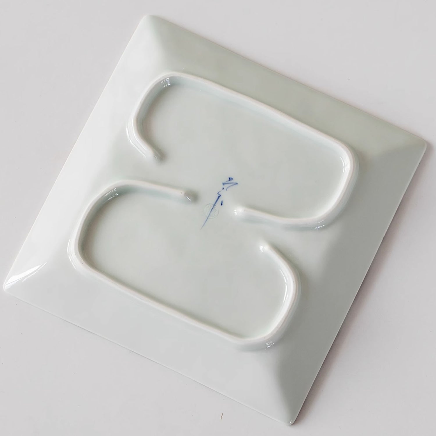 Assiette carrée en porcelaine Arita-yaki avec motif damier peint à la main