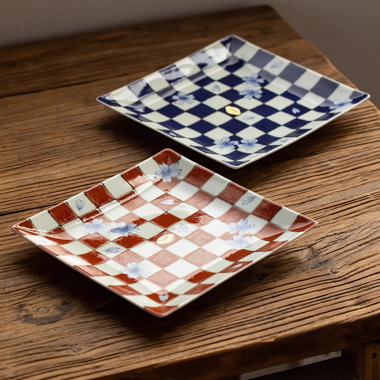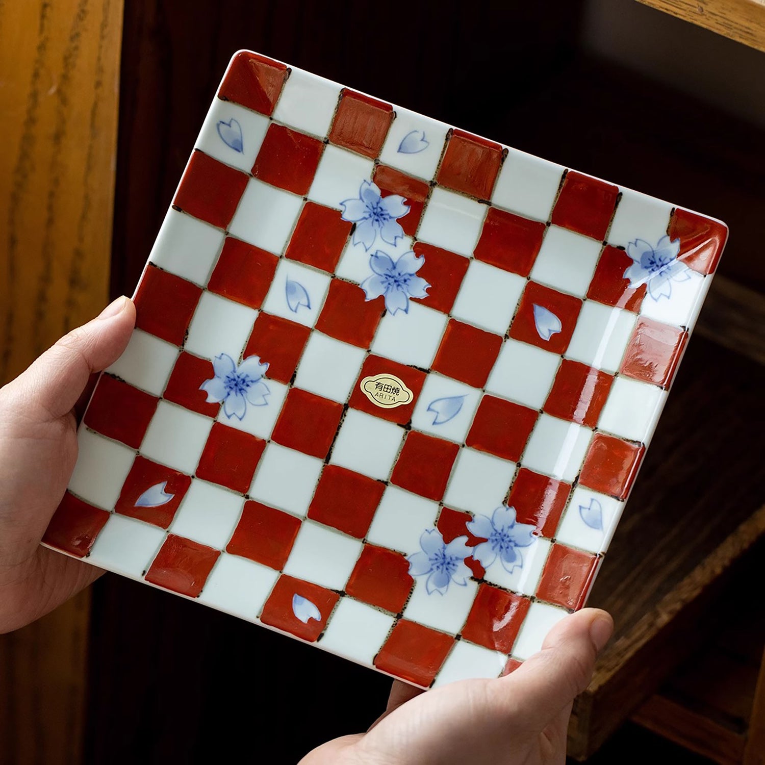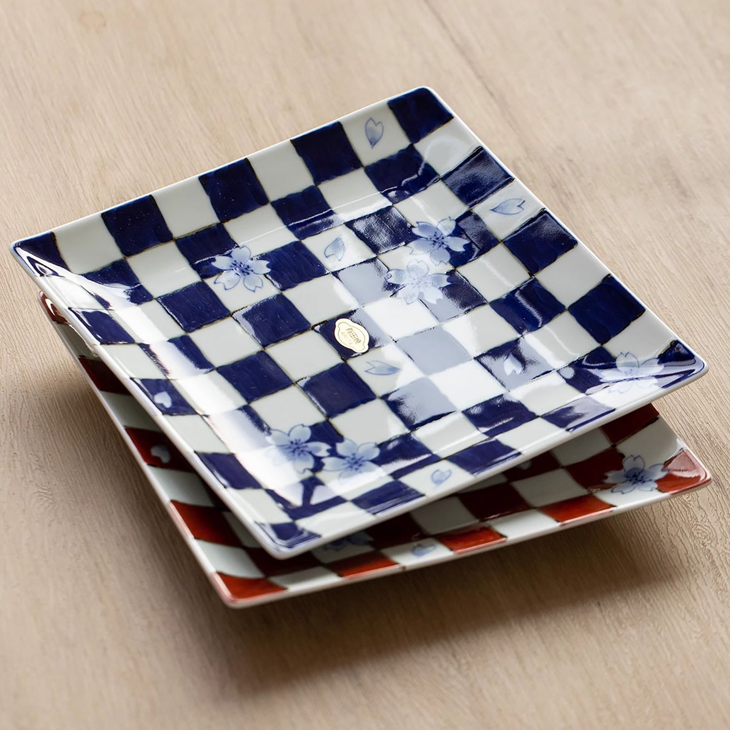 Cette assiette carrée en porcelaine Arita-yaki est réalisée selon la technique traditionnelle de peinture sous émail sans plomb à haute température, témoignant du savoir-faire artisanal. Son motif en damier rouge et bleu, aux couleurs profondes et élégantes, est subtilement rehaussé de délicates fleurs de cerisier bleues, ajoutant une touche de raffinement japonais. Idéale pour présenter vos plats ou embellir votre table avec un charme rétro et sophistiqué.
