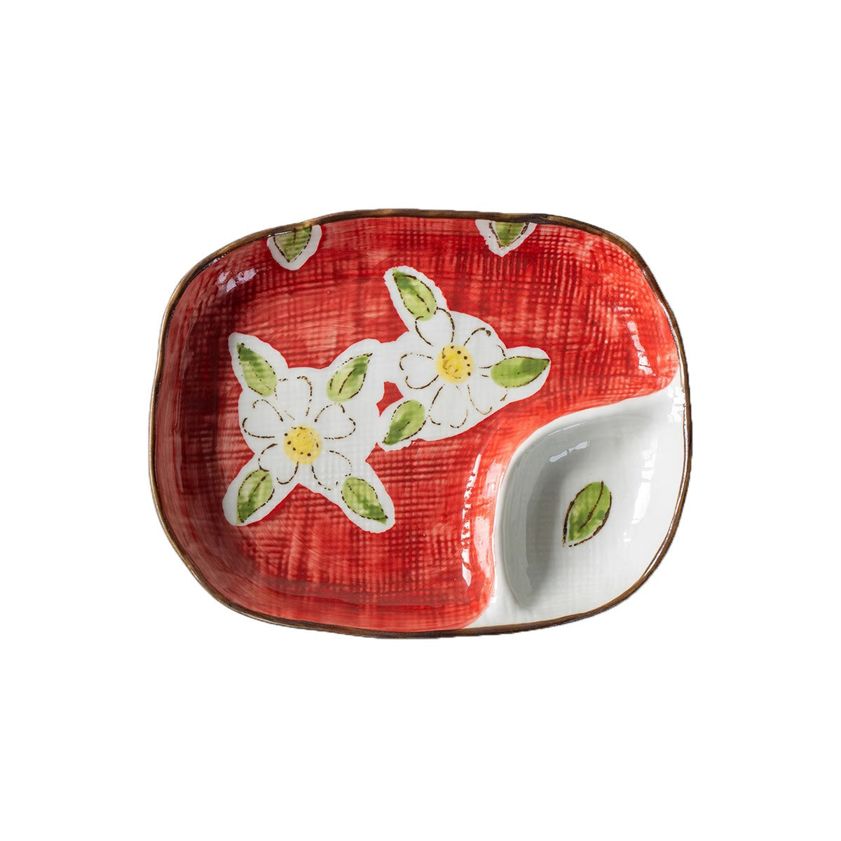 Cette assiette compartimentée en céramique Mino-yaki est réalisée selon la technique traditionnelle de peinture sous émail sans plomb à haute température. Chaque pièce est ornée d’un motif peint à la main par un artisan et possède un bord irrégulier, reflétant l’authenticité du travail manuel. Son design compartimenté permet de séparer sauces et accompagnements, idéal pour la cuisine japonaise. À la fois pratique et esthétique, elle apporte une touche artisanale à votre table.