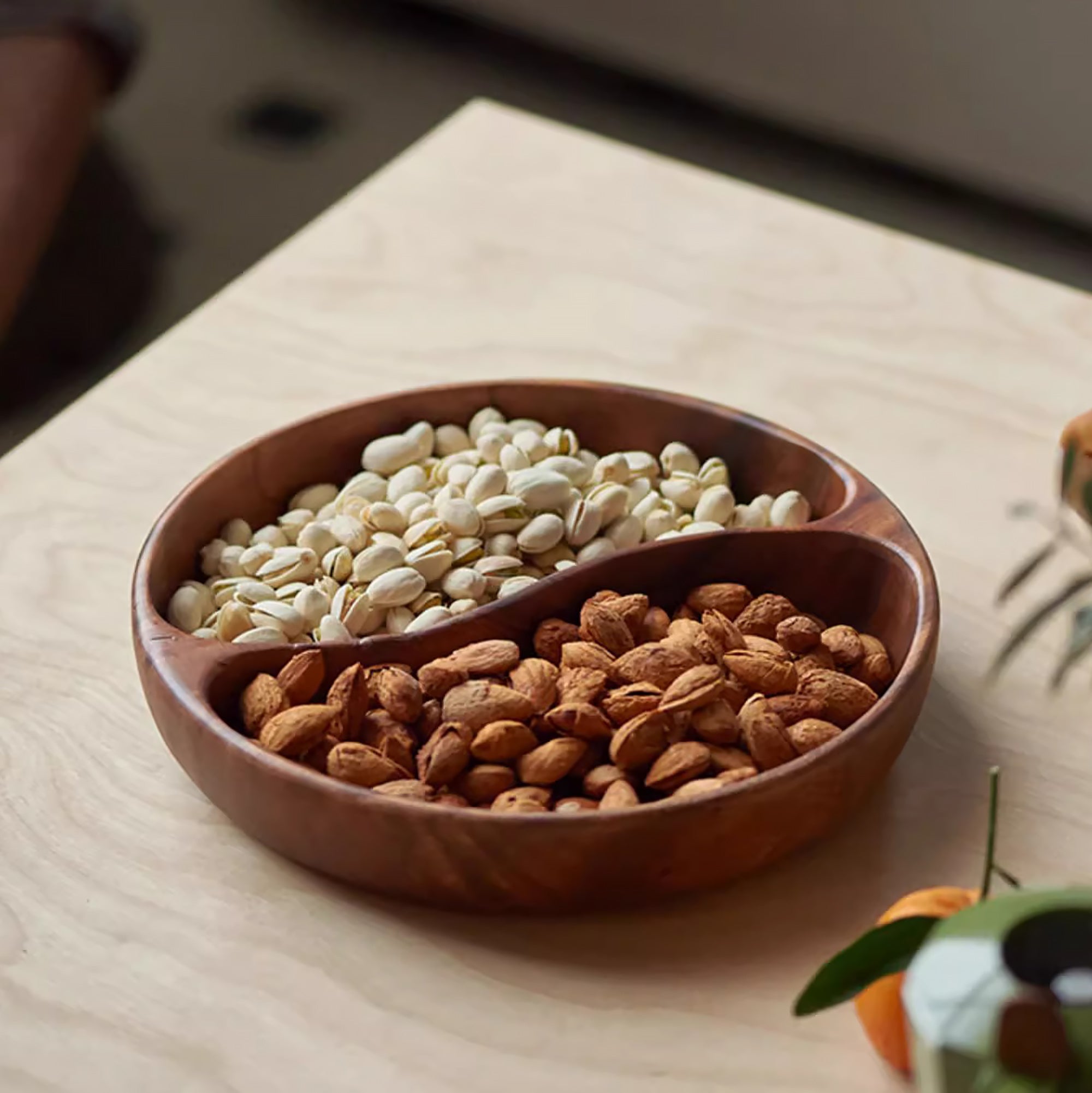 Fabriquée à la main en bois d’acacia de haute qualité, cette assiette conserve la texture naturelle et chaleureuse du bois. Son design compartimenté en forme arrondie est idéal pour présenter fruits, snacks et petites douceurs avec élégance. Une touche pratique et authentique pour votre table du quotidien.