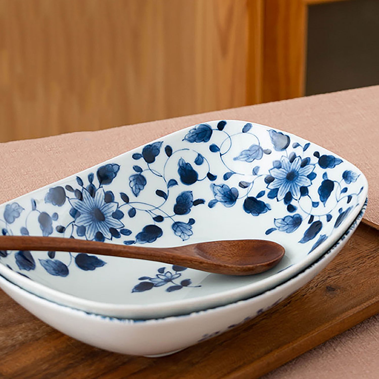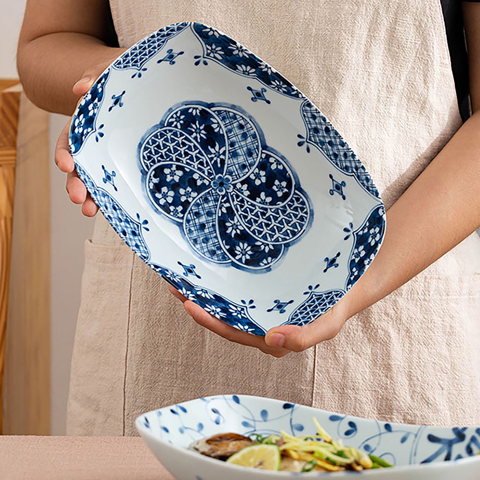 Cette collection d'assiettes rectangulaires Rintrindo se distingue par ses motifs traditionnels de bleu et blanc, minutieusement dessinés à la main. Elles ajoutent non seulement une touche d'émerveillement à votre table, mais elles imprègnent également une atmosphère japonaise authentique.