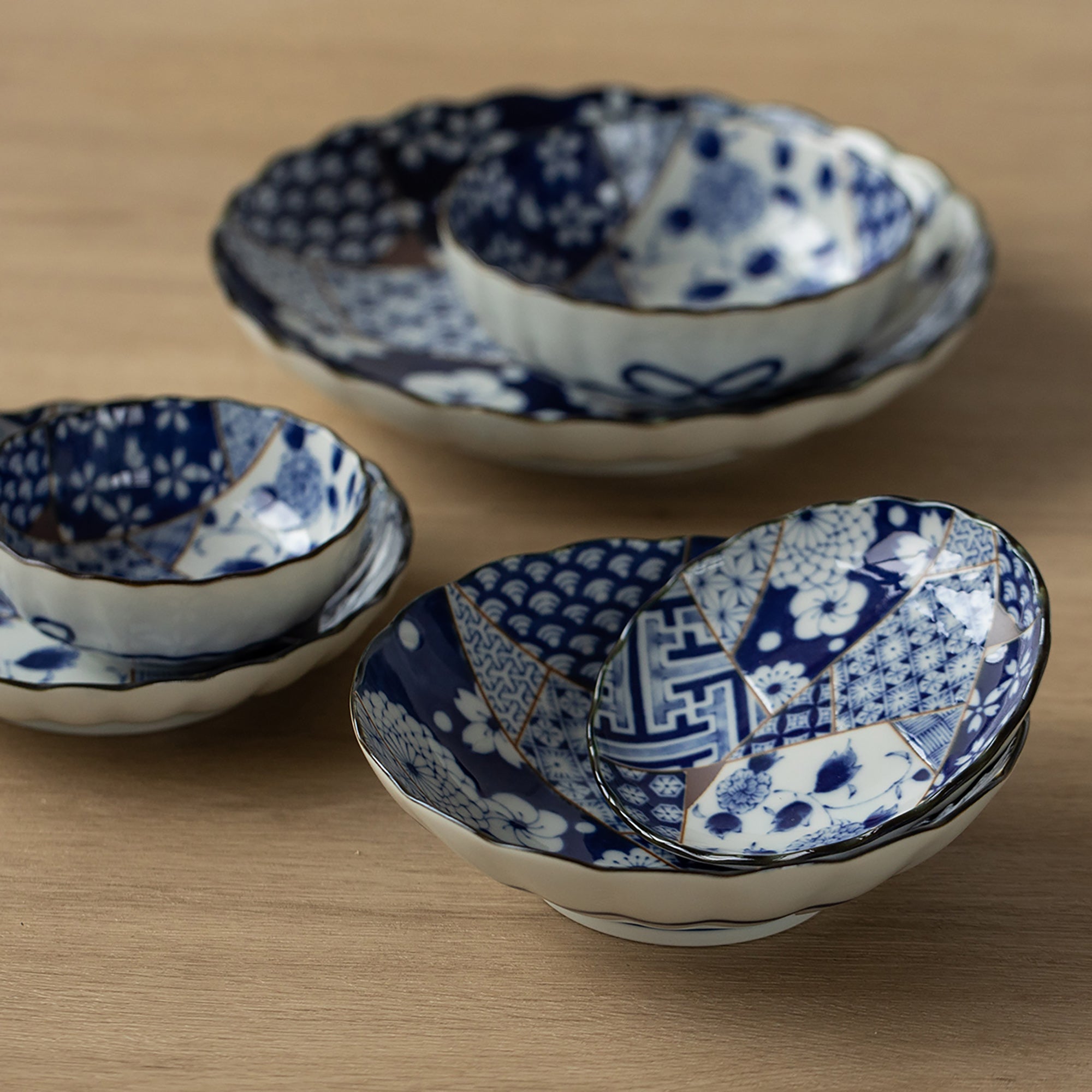 Assiettes Minoyaki Hanami traditionnel artisanal japonais en porcelaine et fait main avec design fleurs Sakura sous glaçure.