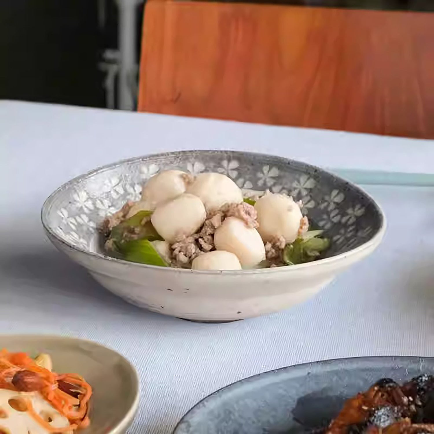 Cette collection d'assiette en céramique Mino-yaki fait main incarne l'élégance du design traditionnel japonais avec sa forme épurée et ses teintes douces. Les motifs floraux délicats ornent l'intérieur du bol, ajoutant une touche de charme romantique japonais.