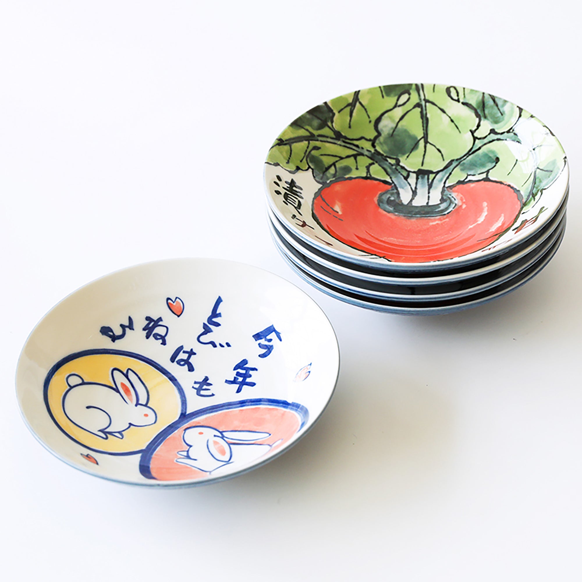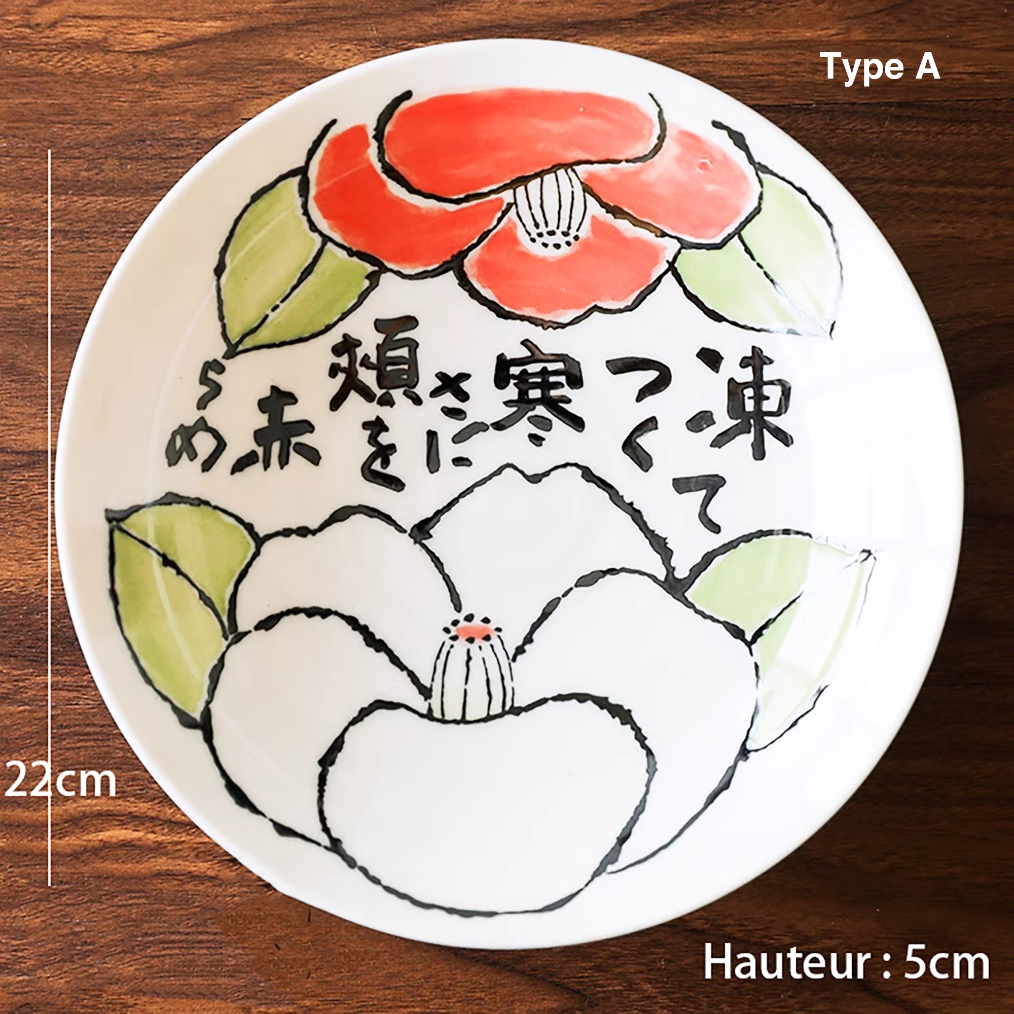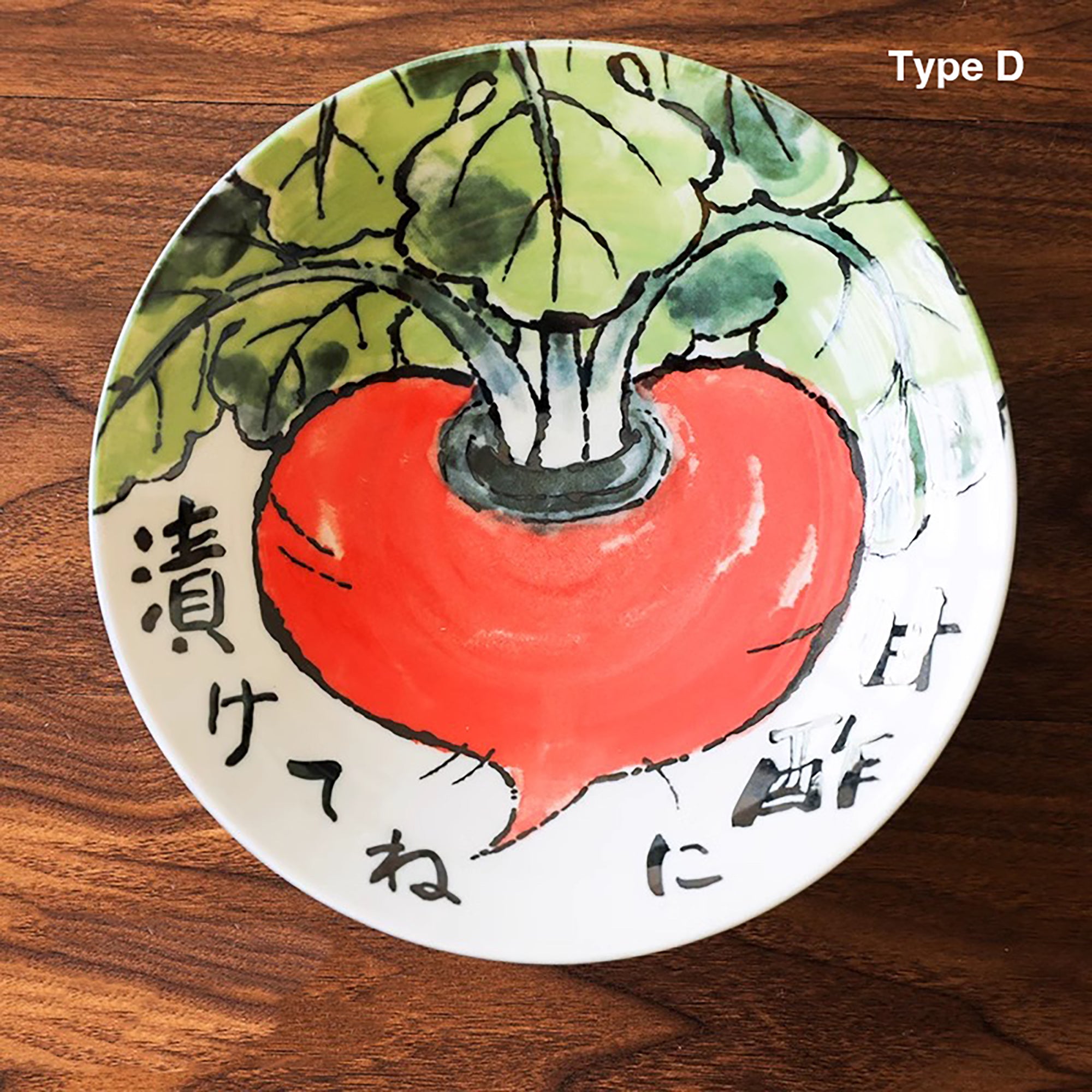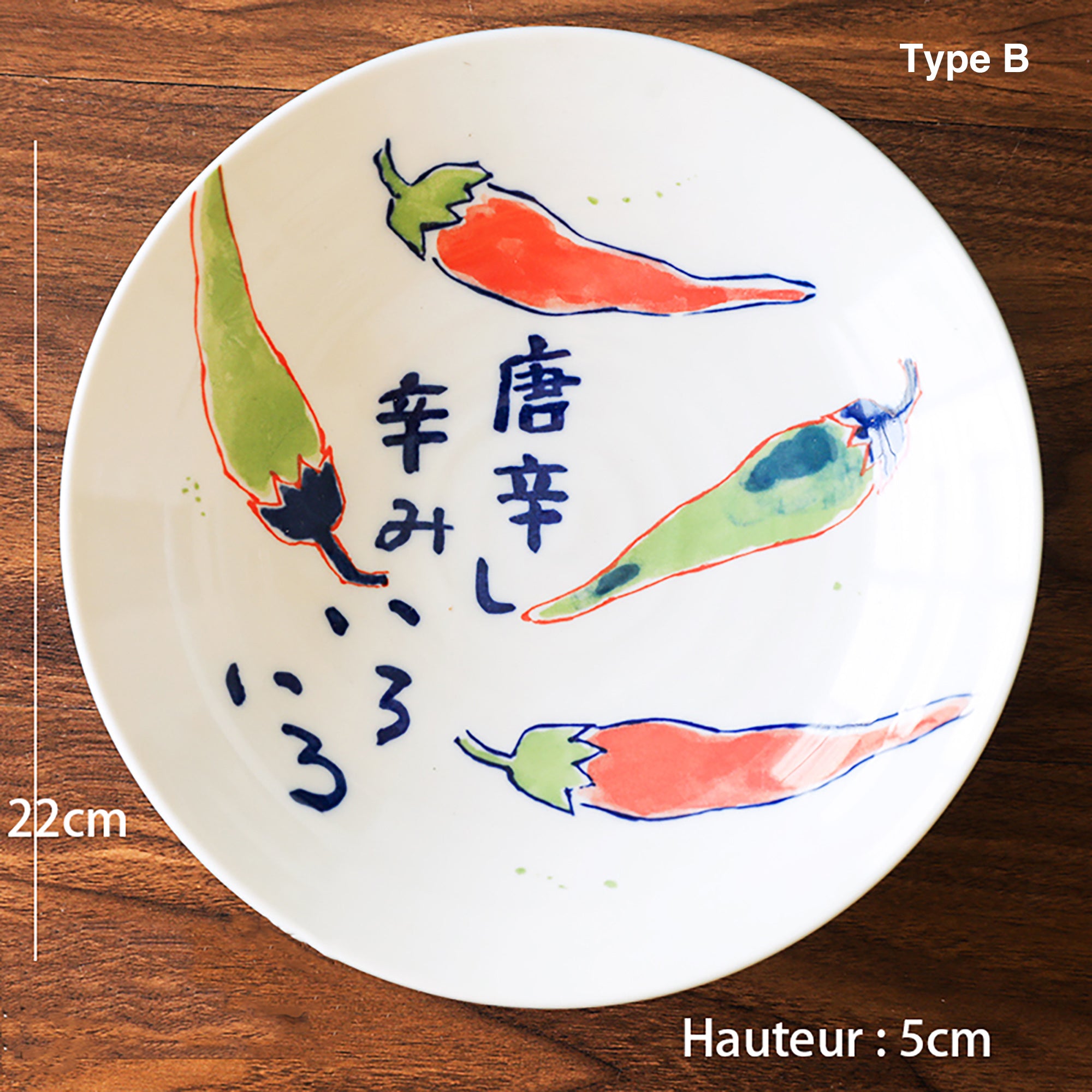 Cette grande assiette en céramique peinte à la main, originaire de Gifu au Japon, présente un motif unique de légumes, créant une atmosphère détendue et chaleureuse pour vos repas. Il ajoute une touche de vie japonaise à votre quotidien.