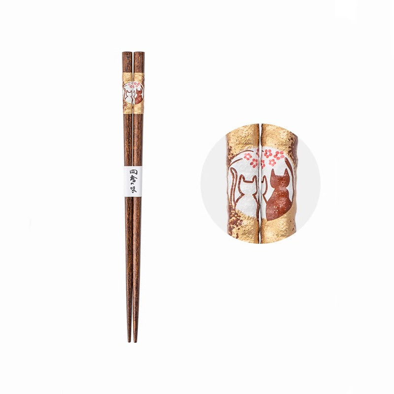 Baguettes en bois avec Chats sous les fleurs de cerisier