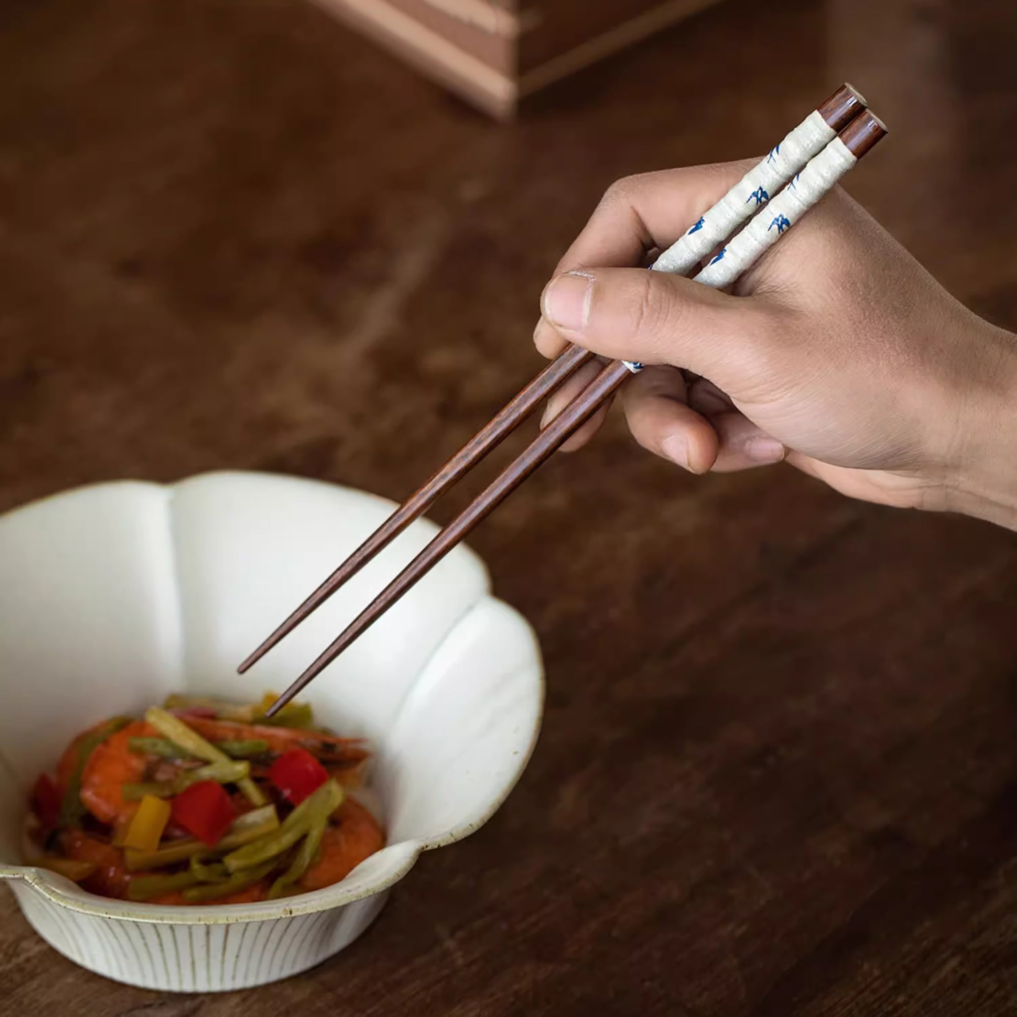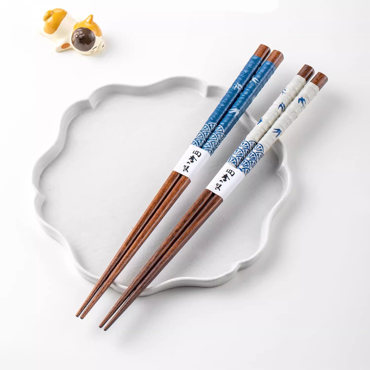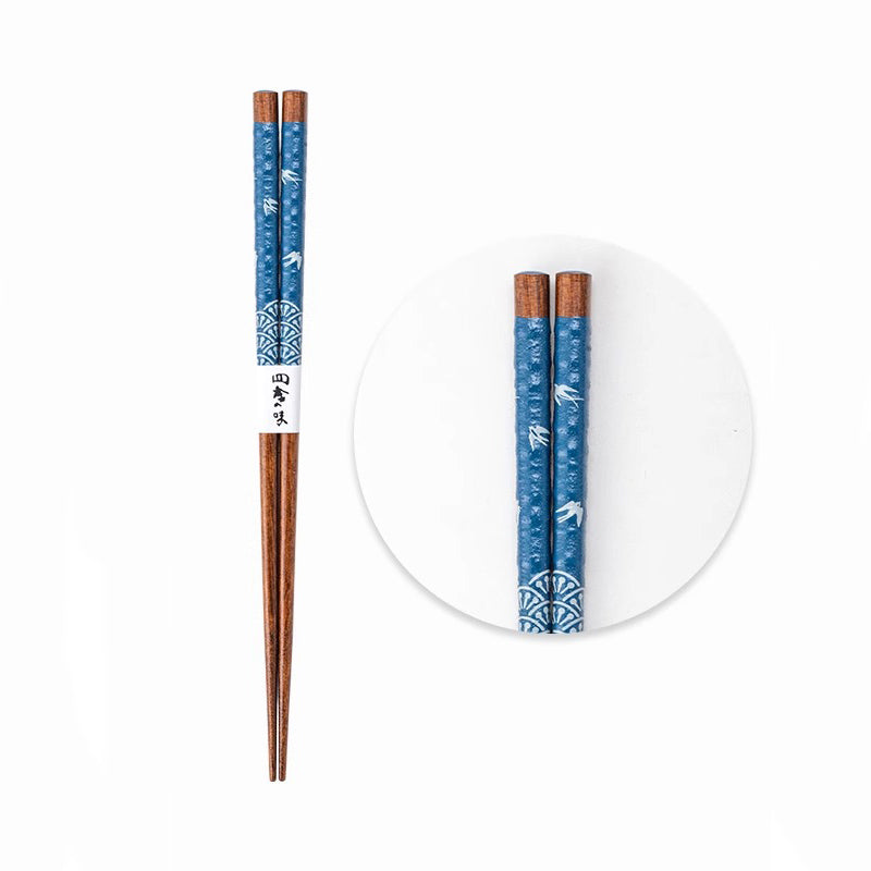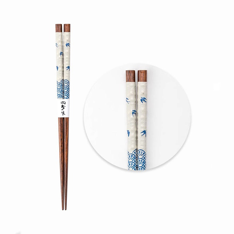 Ces baguettes en bois massif de kaku-no-ki, fabriquées par SUNLIFE Japon, présentent un motif élégant d’hirondelles volant à travers une bambouseraie, ajoutant une touche poétique et raffinée à vos repas. Leur texture mate et leur extrémité fine assurent une prise en main agréable et un usage pratique. Disponibles en bleu et blanc, elles forment un duo parfait pour les couples, apportant harmonie et élégance à la table.