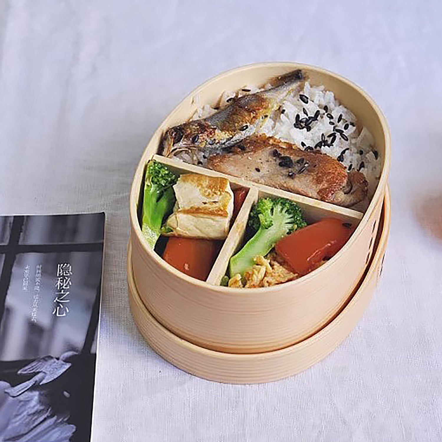 Fabriquée à la main en bois de cèdre, cette boîte à bento arbore une forme ovale traditionnelle et est équipée de séparateurs internes pour organiser facilement différents types de plats. Compatible avec la cuisson à la vapeur et le lave-vaisselle, elle est livrée avec un sac en tissu à cordon au style japonais traditionnel. Un choix chaleureux et romantique, parfait pour un usage personnel ou comme cadeau empreint de culture japonaise.