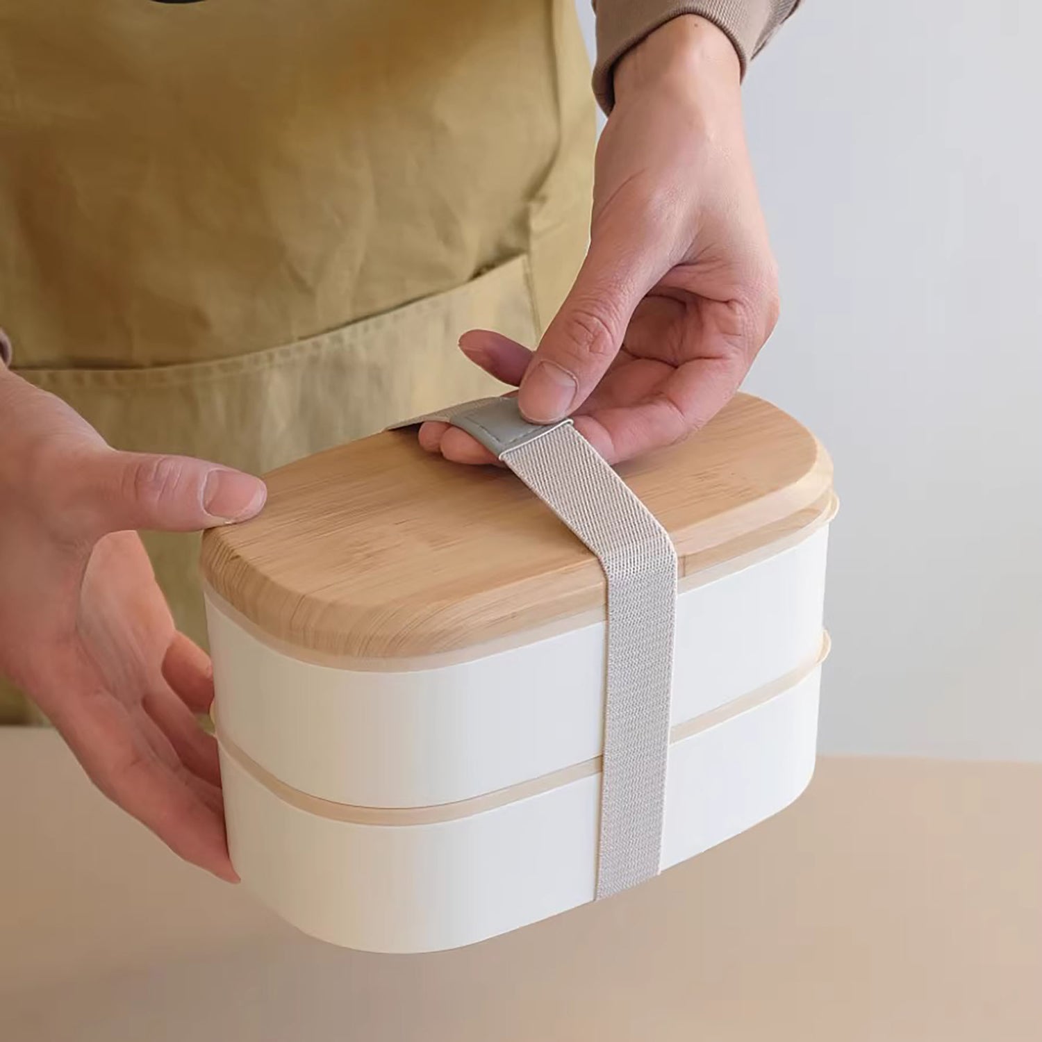 Cette boîte à bento à double étage au design minimaliste et chaleureux est dotée d'un couvercle en bois élégant et d'une grande capacité. Fabriquée en matériau PP de qualité alimentaire, elle est facile à nettoyer et garantit une utilisation hygiénique. Chaque étage est équipé d'un séparateur pour organiser les aliments, et un compartiment à couverts est intégré pour plus de praticité en déplacement. Compatible avec le micro-ondes (temps conseillé : moins de 2 minutes). Associez-la à un sac en tissu à motifs japonais pour une expérience encore plus raffinée. Idéale pour le déjeuner ou un pique-nique, parfaite pour un usage personnel ou comme cadeau élégant.