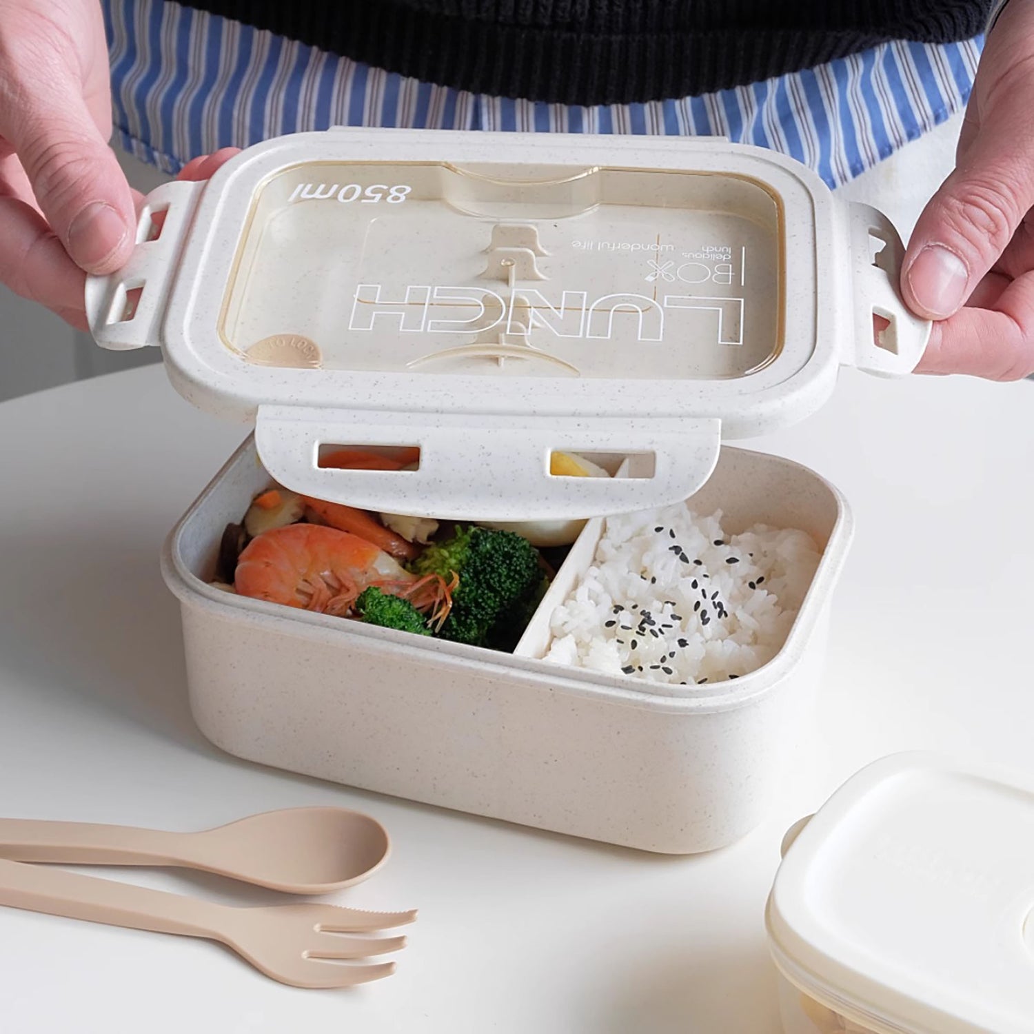 Boîte à bento quotidienne avec couvercle hermétique à clips