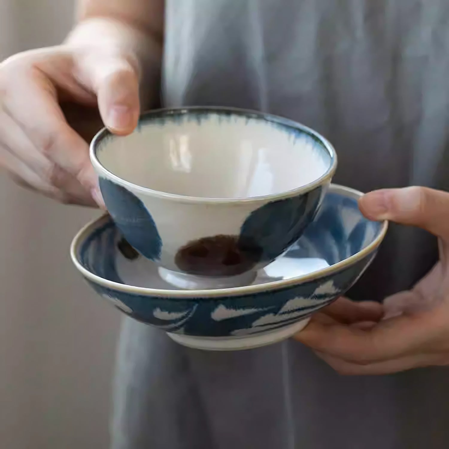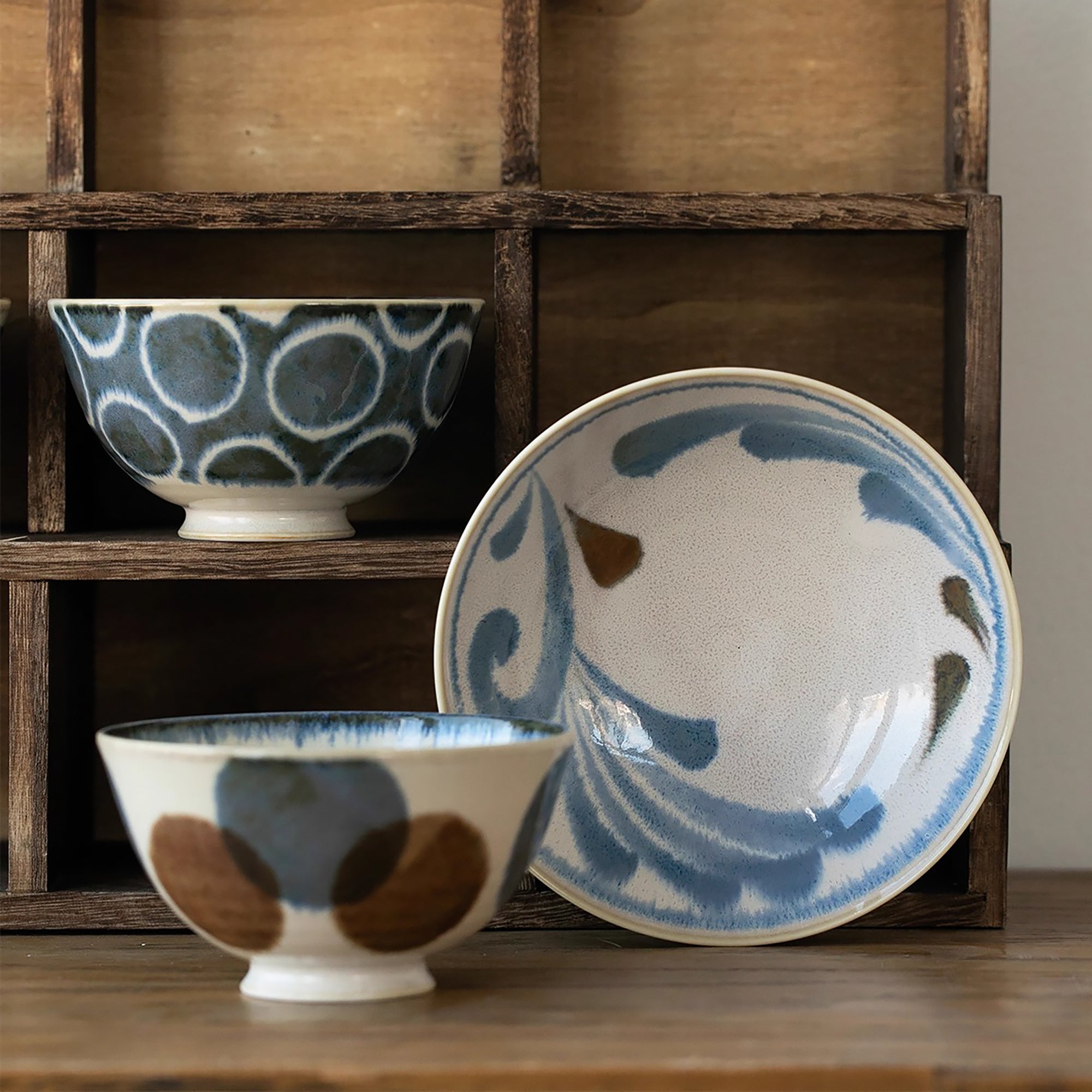 Ce bol en céramique issu de la région de Mino appartient à la série artisanale Brush Blue. Réalisé selon la technique traditionnelle du glaçage sans plomb sous émail, il offre une texture lisse et naturelle. Les motifs bleus peints à la main évoquent la sérénité du style japonais, entre simplicité et élégance du quotidien.