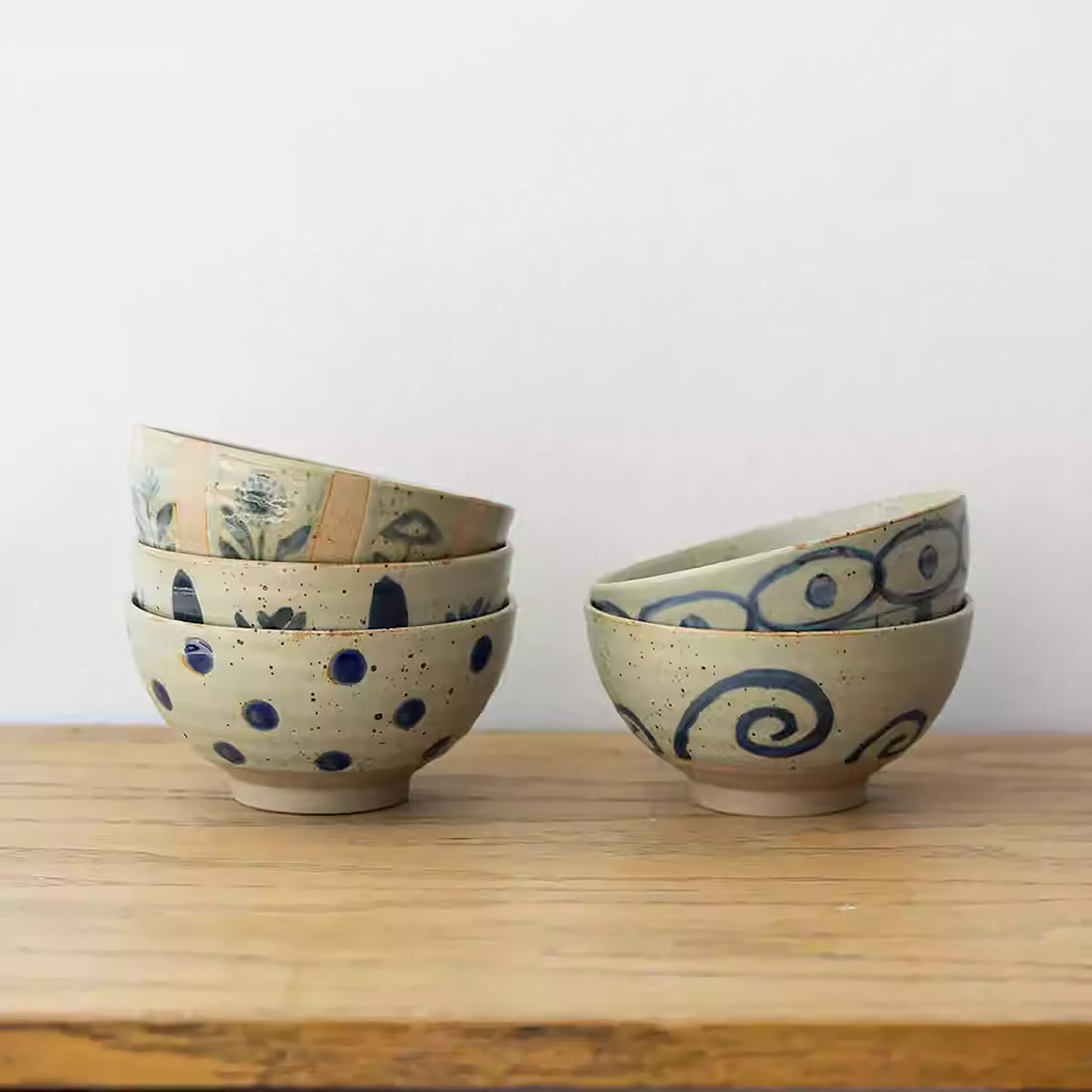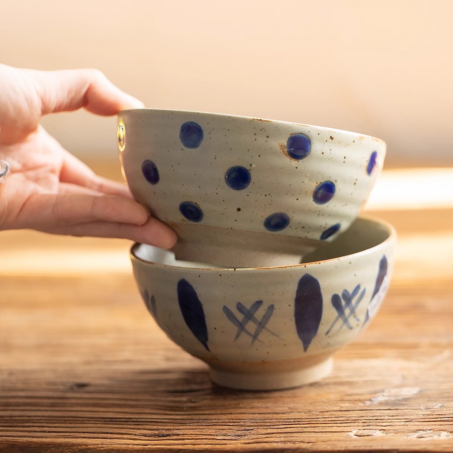Ce bol Mino-yaki en grès brut se distingue par ses points d’émail répartis de façon naturelle et ses motifs minimalistes peints à la main. La texture rustique apporte une atmosphère authentique et chaleureuse, idéale pour accompagner vos repas quotidiens avec une touche de simplicité japonaise.