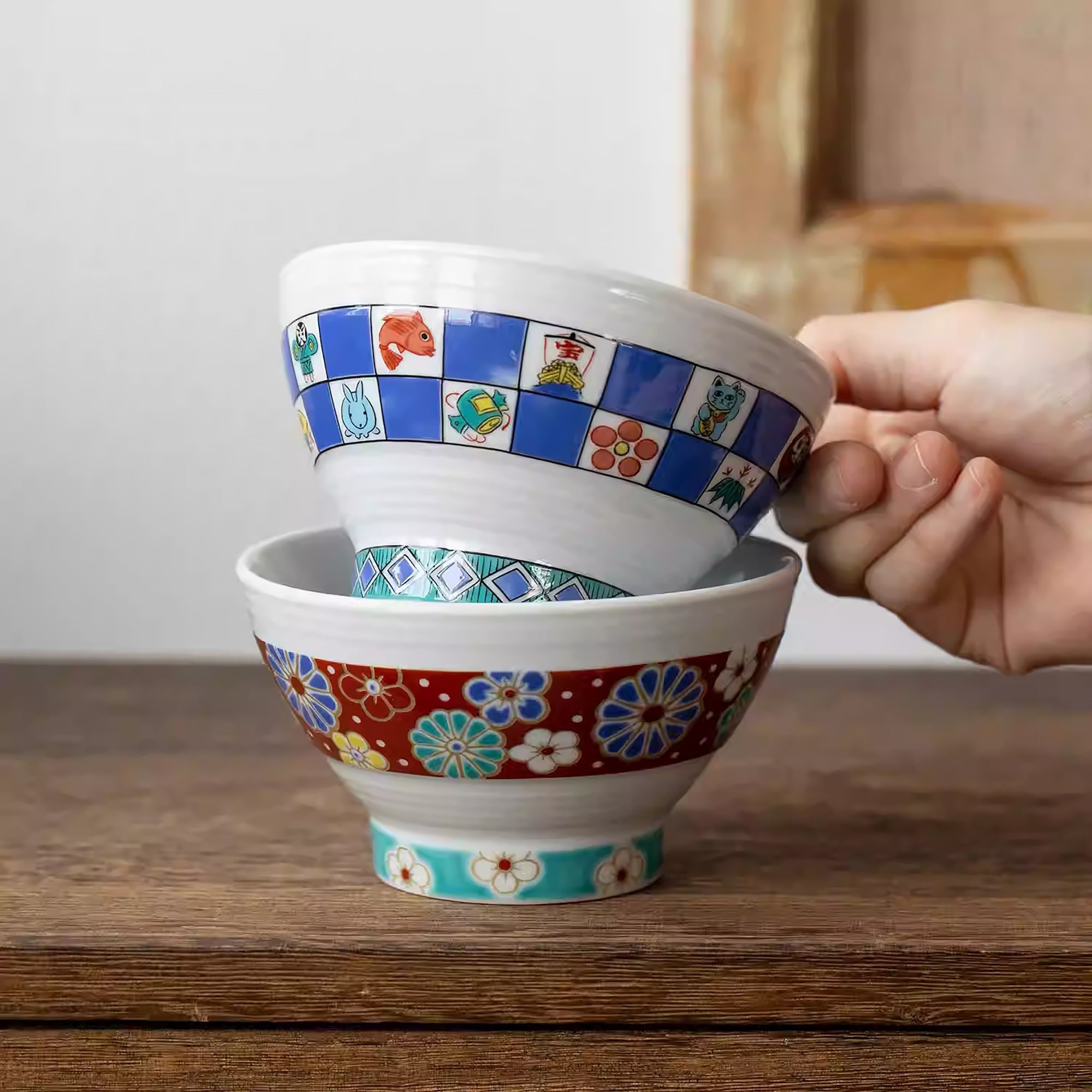 Ce bol japonais Kutani-yaki est orné de motifs traditionnels symbolisant les quatre saisons et la bonne fortune. Réalisé selon la technique artisanale de la peinture sous glaçure sans plomb à haute température, il offre une texture fine et des couleurs éclatantes. Chaque bol exprime l’élégance intemporelle de l’art Kutani, parfait pour savourer riz, soupe ou dessert dans une ambiance japonaise raffinée.