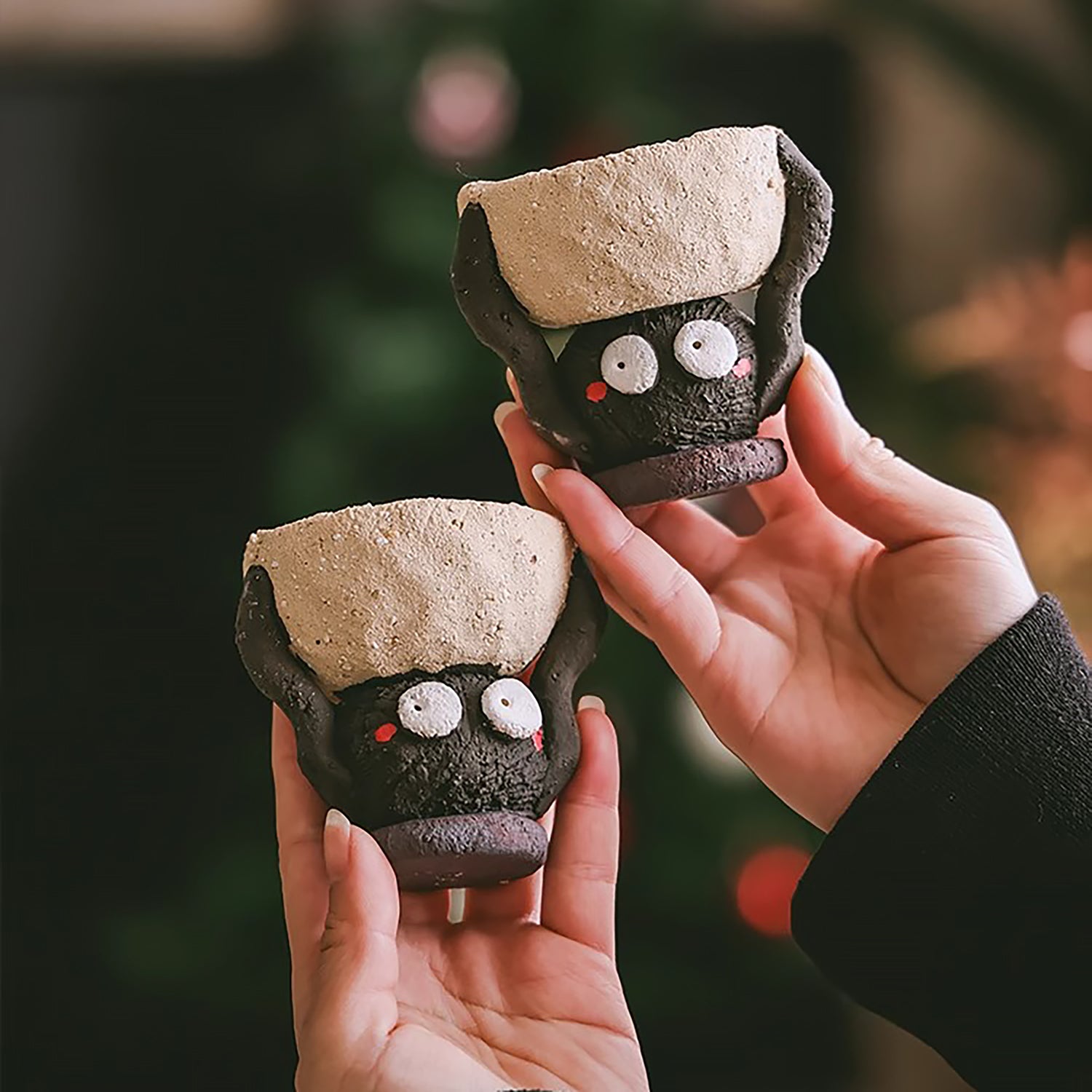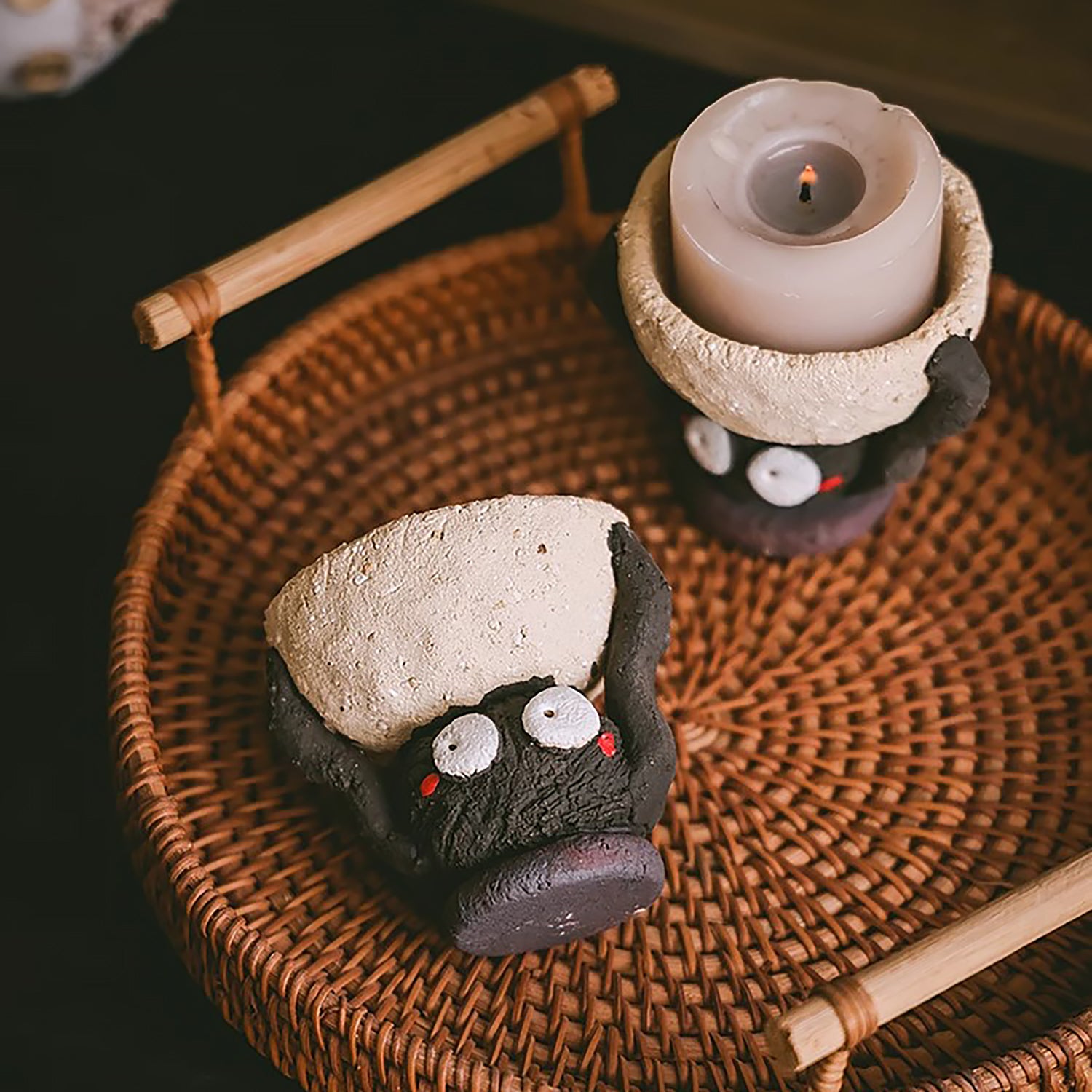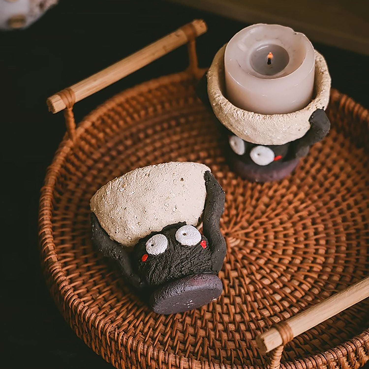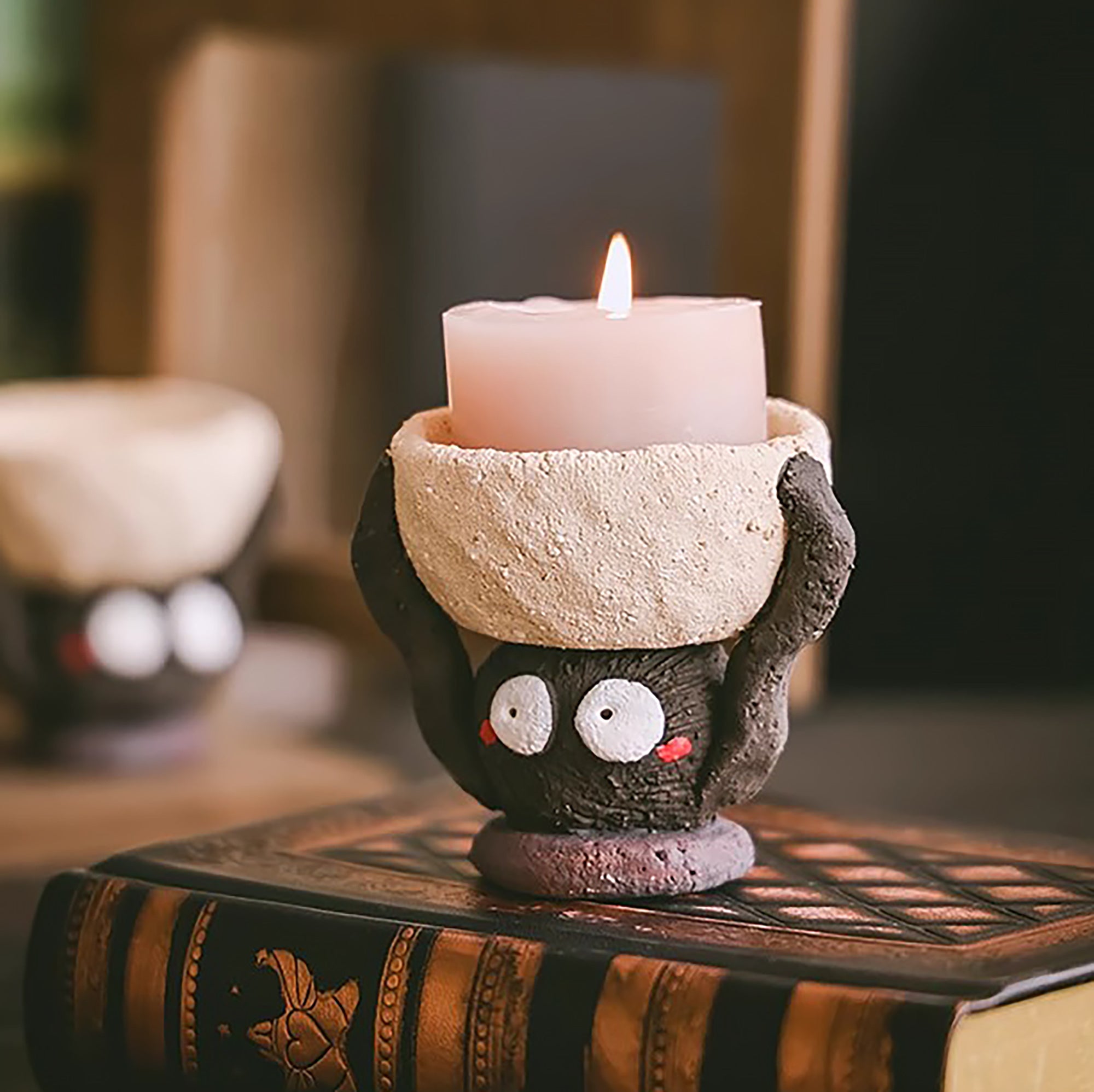 Bougeoir en céramique fait main avec Motif charbon espiègle