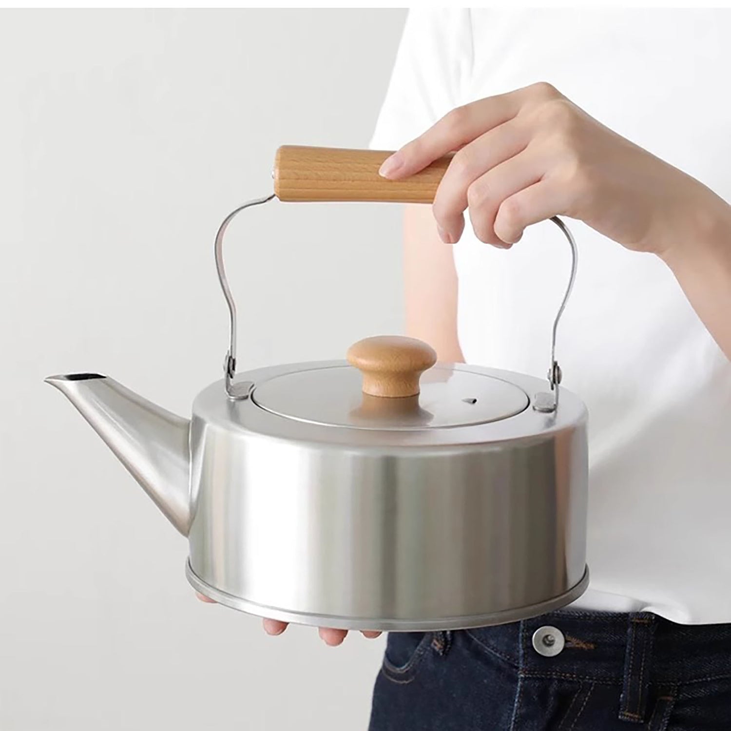 Bouilloire japonaise en inox FREIZ avec poignée en bois