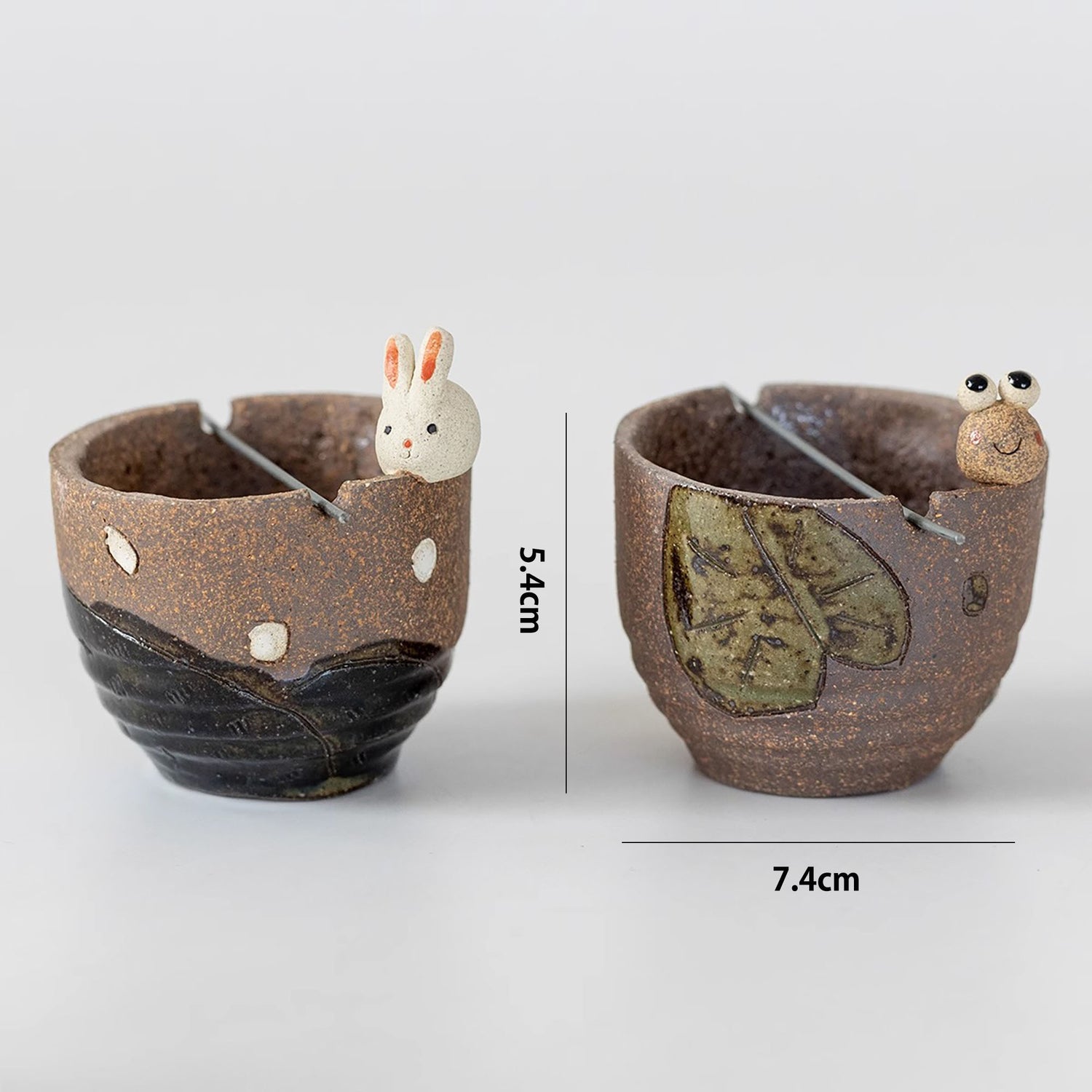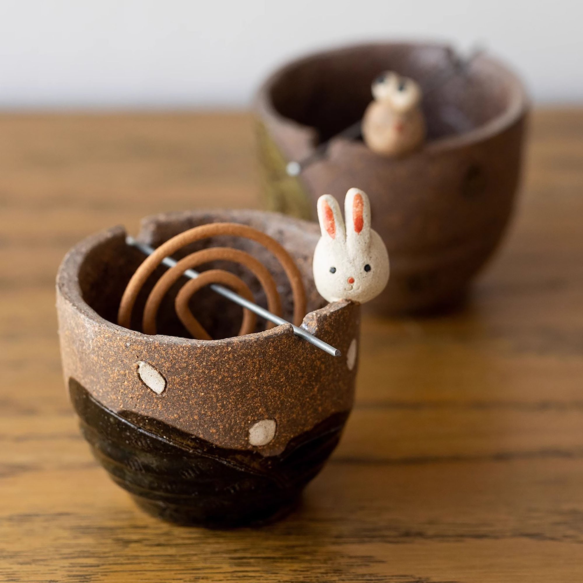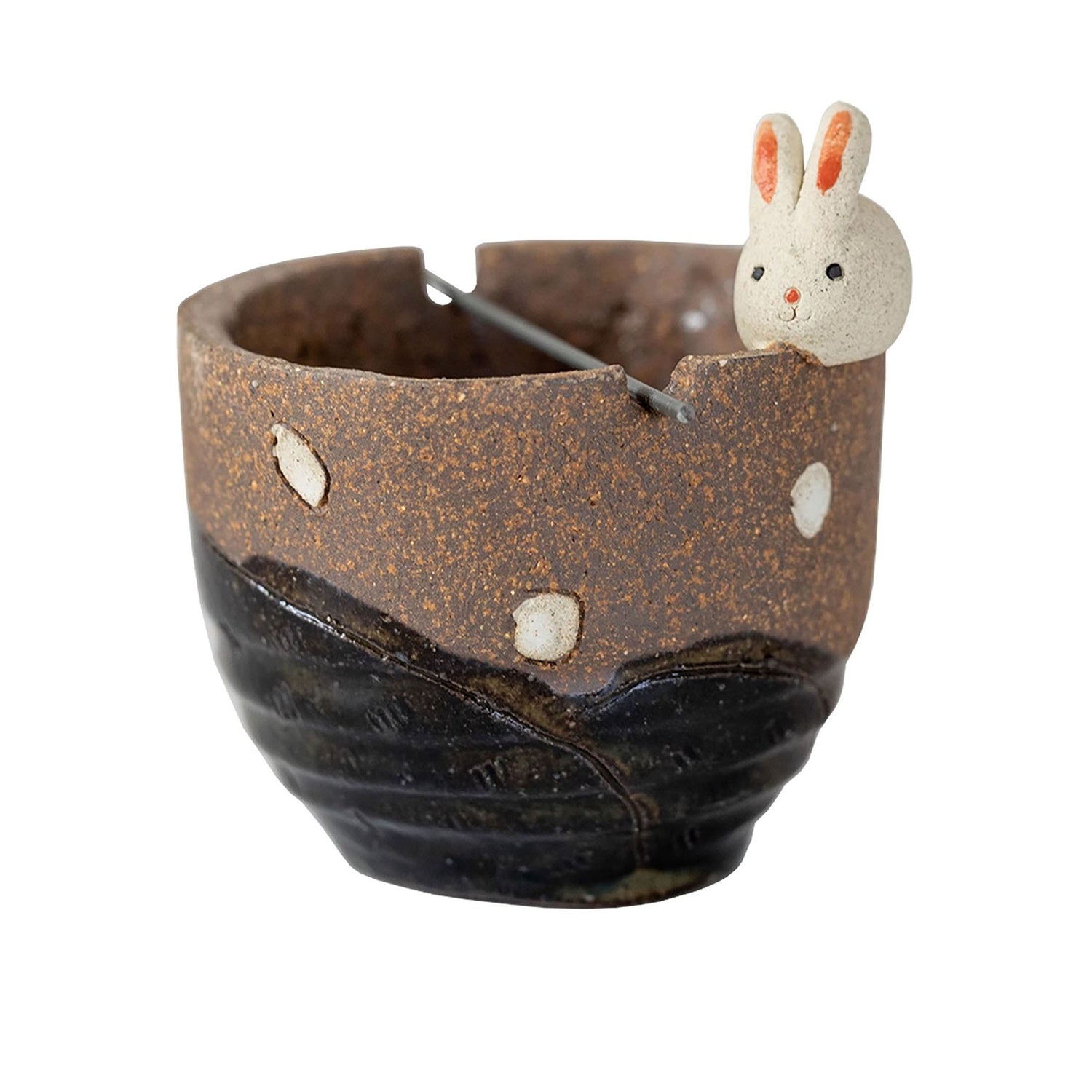 Cette porte encents en céramique Seto-yaki est entièrement fabriqué à la main, orné d’un adorable lapin et d’une grenouille symbolisant la protection et les énergies positives. Chaque pièce, façonnée avec soin, possède un charme artisanal unique et une texture naturelle et apaisante. Idéal pour diffuser des senteurs relaxantes, il constitue également un bel élément de décoration au style japonais raffiné, apportant une touche d’authenticité à votre intérieur.
