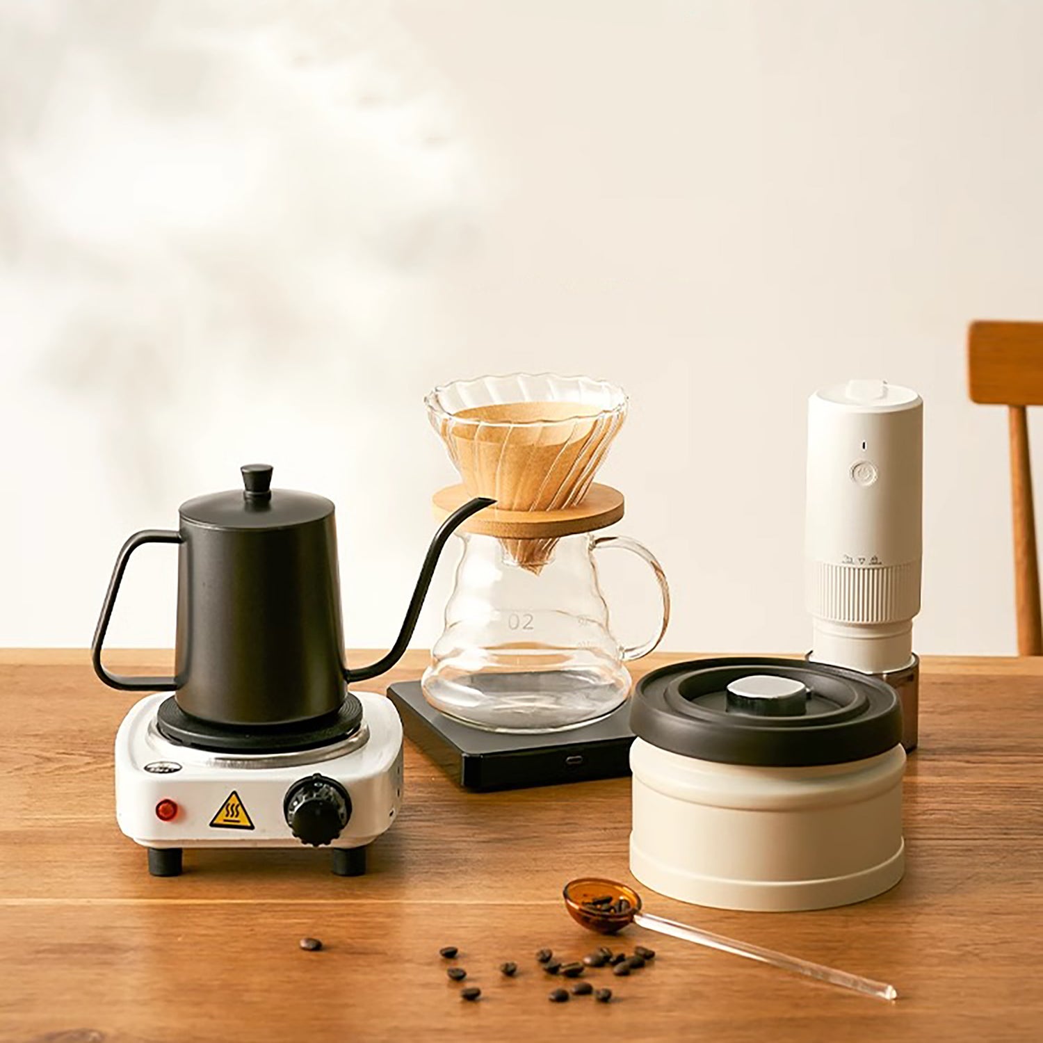 Pour une expérience complète, associez-la à la bouilloire minimaliste noire en acier inoxydable avec bec col de cygne : précision, contrôle et style s’unissent pour sublimer chaque tasse.