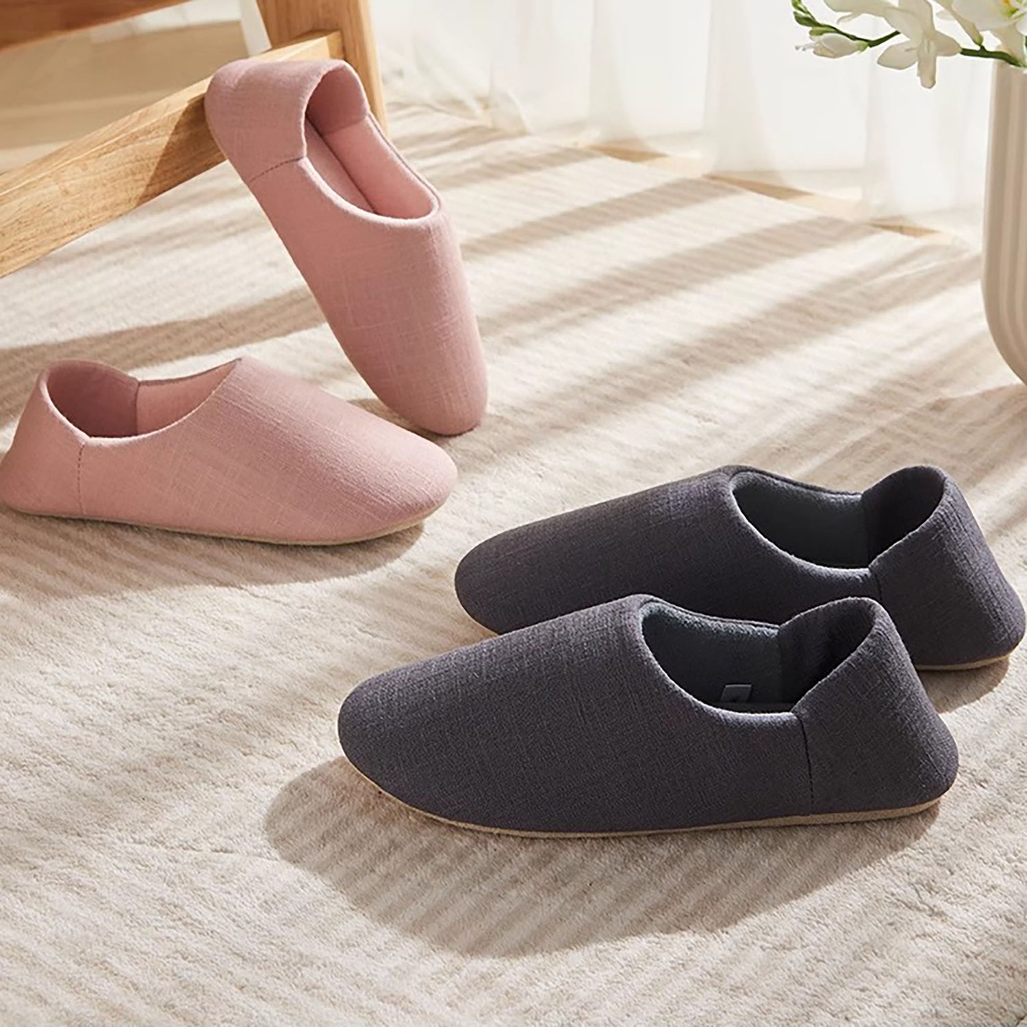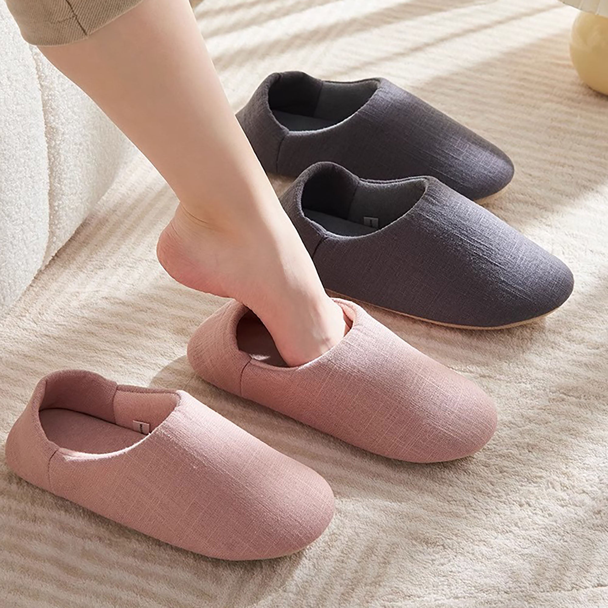 Ces chaussons d'intérieur de style japonais avec talon couvert possèdent une tige en coton pur et une doublure en coton éponge, offrant un toucher doux et respirant. Leur design flexible permet de les porter en les enfilant ou en couvrant le talon, selon vos préférences. Avec une semelle en daim antidérapante et silencieuse, ces chaussons sont idéaux pour un usage domestique. Un choix parfait pour soi-même ou comme cadeau chaleureux à offrir à vos proches.