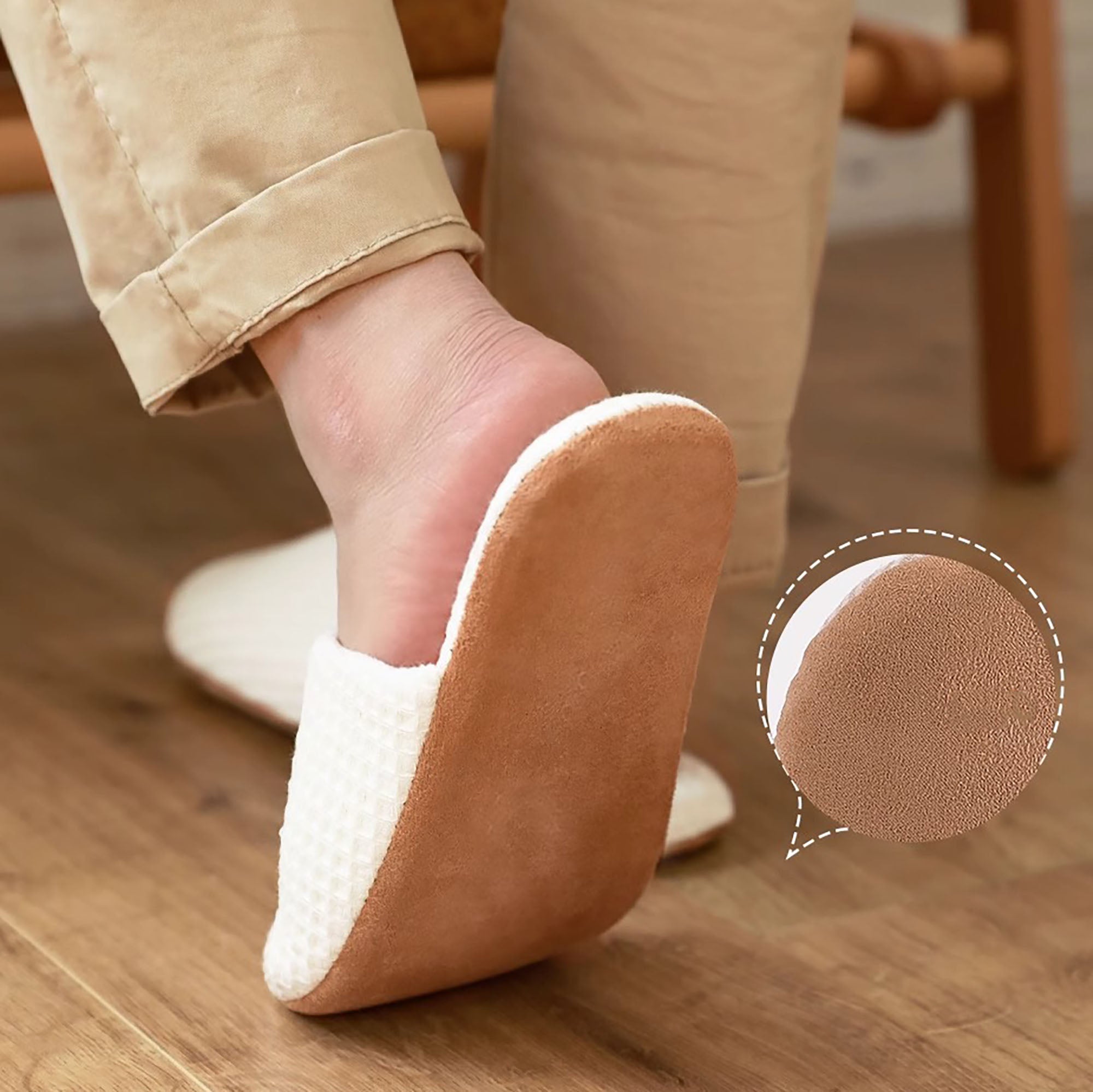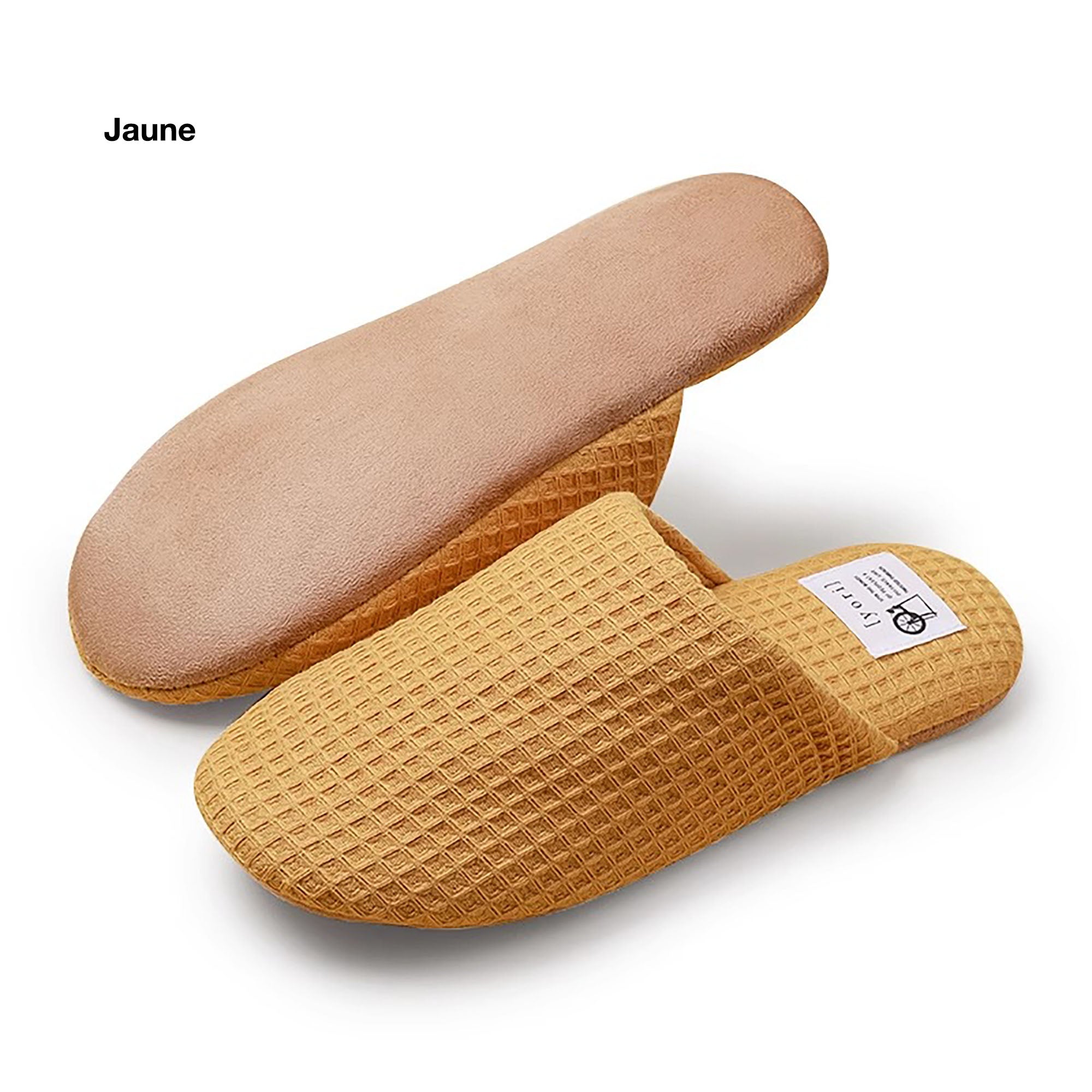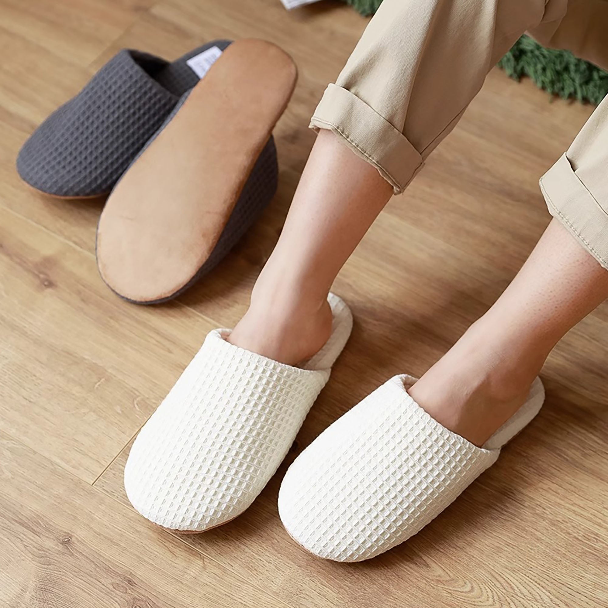 Ces chaussons d'intérieur japonais à bout fermé sont fabriqués en coton pur avec un motif gaufré respirant, offrant un confort doux et agréable. La semelle en suédine est légère, résistante à la déformation, et antidérapante pour un usage silencieux, idéal sur les tapis et parquets. Lavables en machine, ils sont faciles à entretenir. Parfaits pour un usage personnel ou pour offrir un cadeau chaleureux à vos proches.