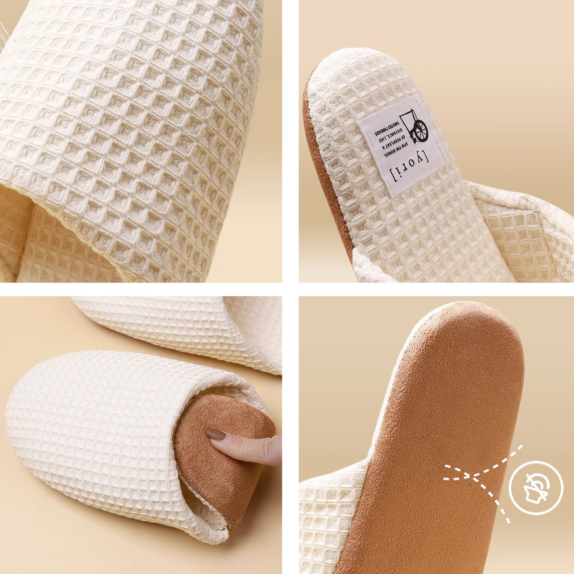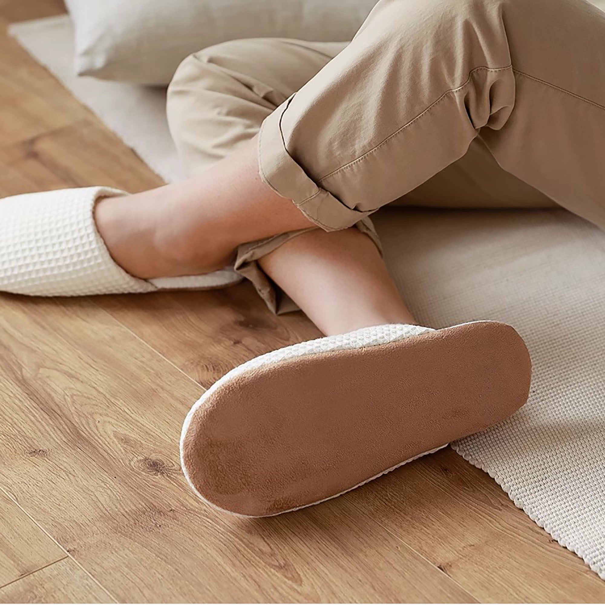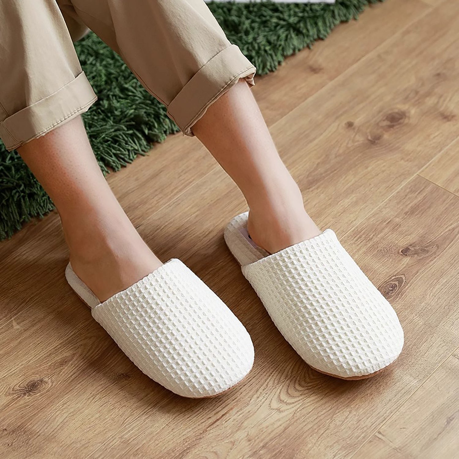 Ces chaussons d'intérieur japonais à bout fermé sont fabriqués en coton pur avec un motif gaufré respirant, offrant un confort doux et agréable. La semelle en suédine est légère, résistante à la déformation, et antidérapante pour un usage silencieux, idéal sur les tapis et parquets. Lavables en machine, ils sont faciles à entretenir. Parfaits pour un usage personnel ou pour offrir un cadeau chaleureux à vos proches.