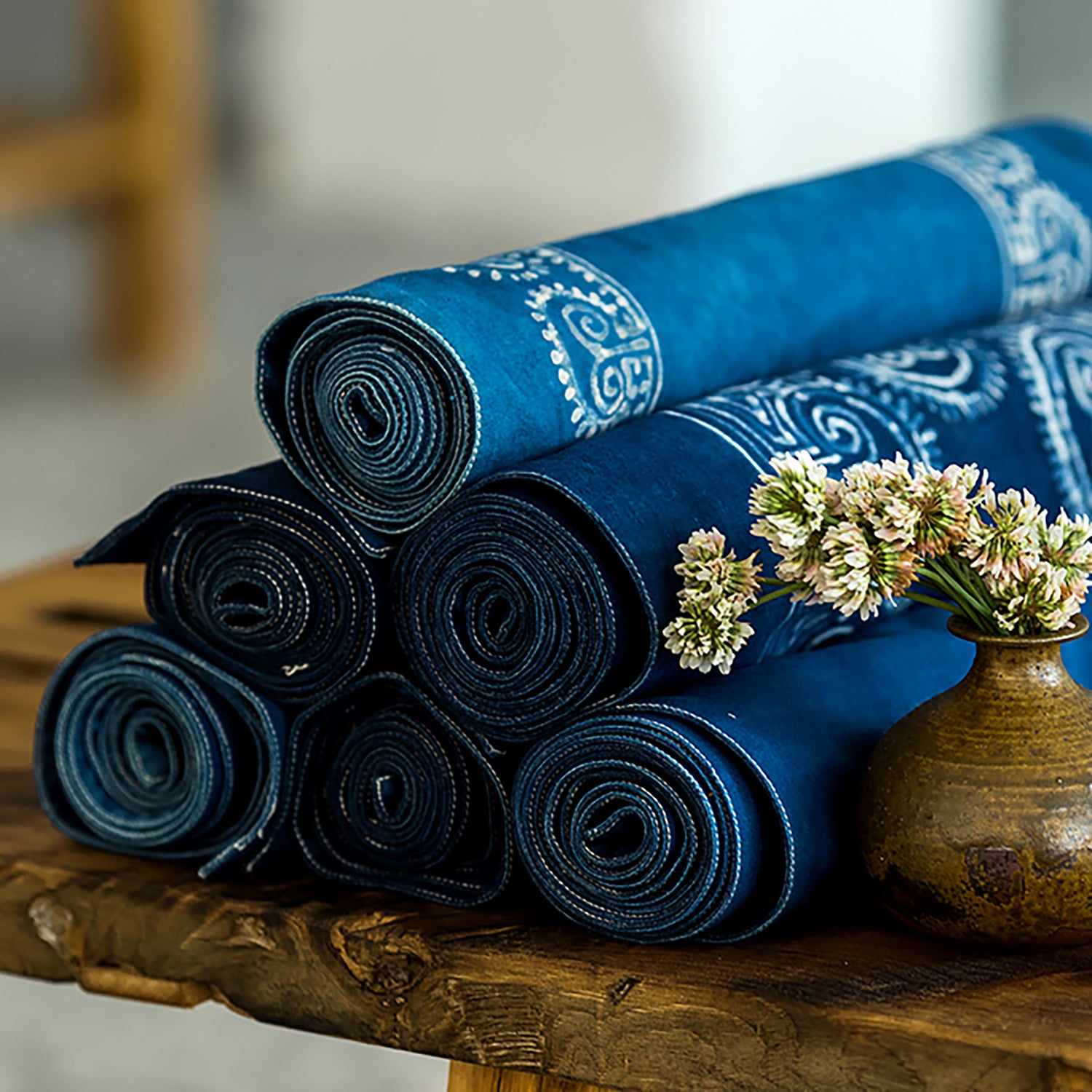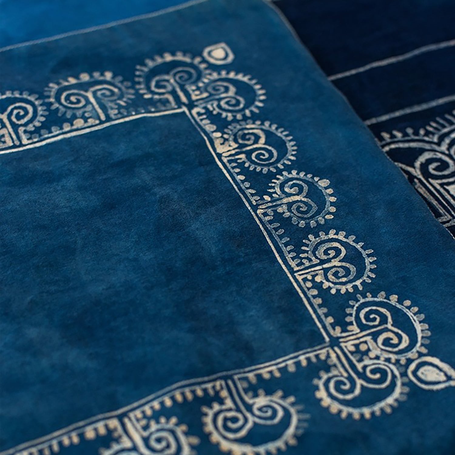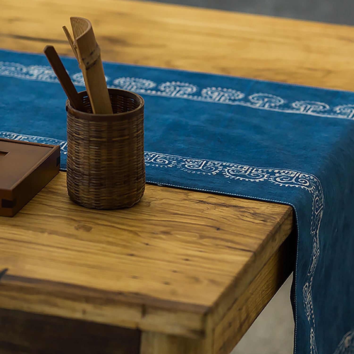 Ce chemin de table artisanal est confectionné par des artisans Yi du Yunnan, selon les techniques traditionnelles du batik et de la teinture indigo. Il présente deux motifs emblématiques de la culture Yi : la spirale, symbole du cycle de la vie, et le soleil, porteur de lumière et de chaleur. Fabriqué en coton et lin naturels, il est composé de deux couches cousues ensemble – une face foncée, une face plus claire – offrant une utilisation réversible et adaptable à différentes ambiances. Élégant, symbolique et polyvalent, ce tissu peut être utilisé sur une table, un meuble d’entrée ou un espace spirituel. Disponible en dimensions personnalisées sur demande.