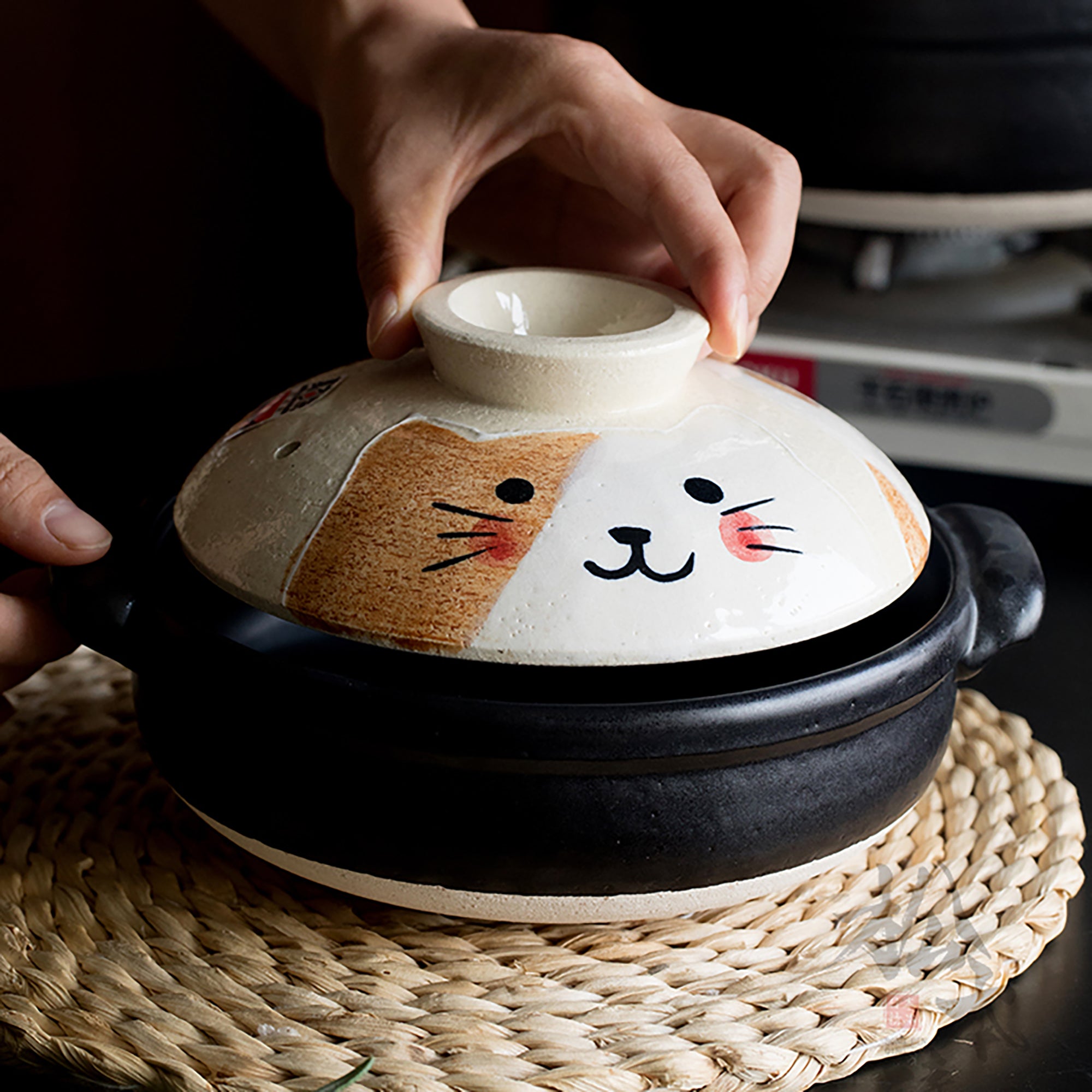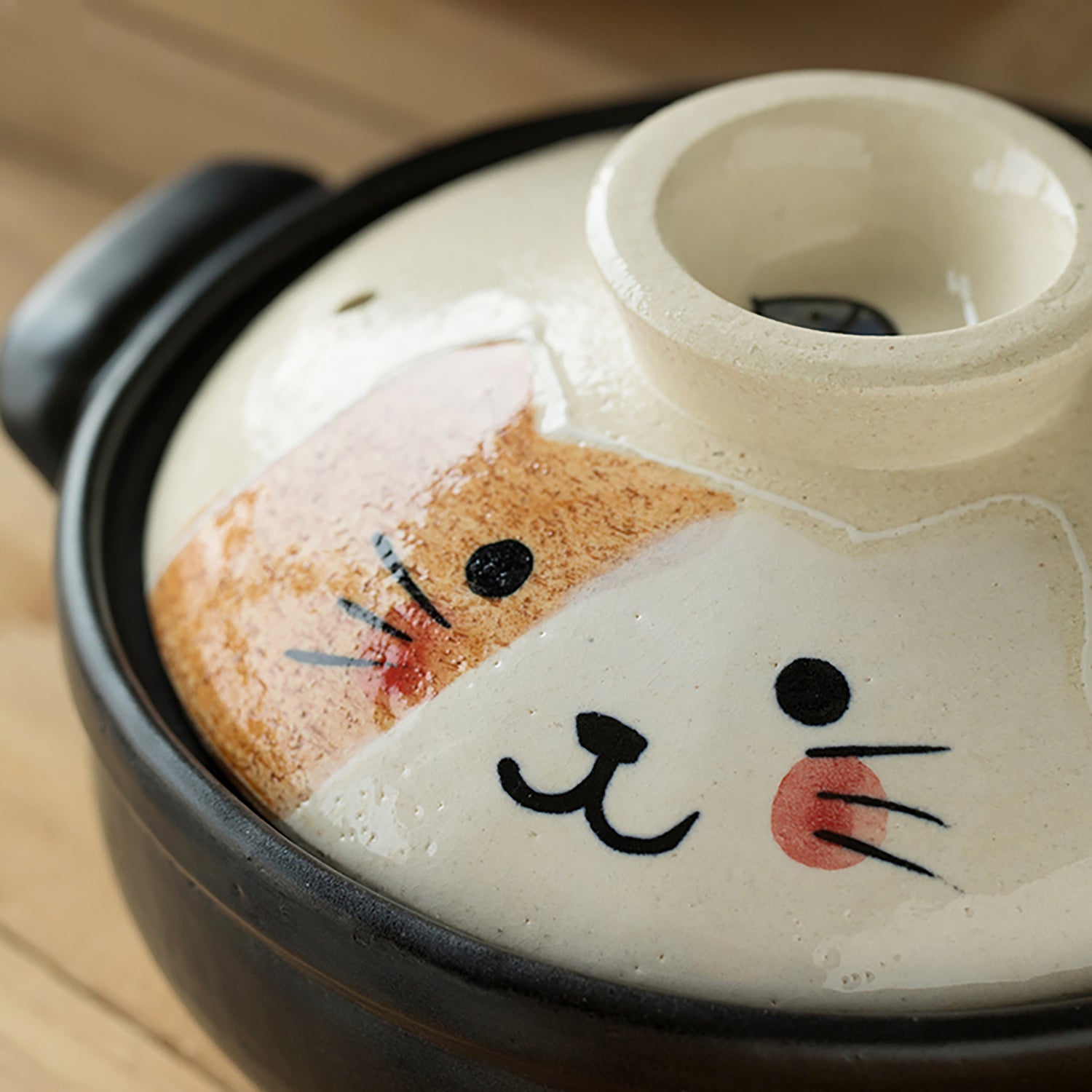 Cette cocotte en terre cuite Banko-yaki est fabriquée à la main selon la tradition japonaise, avec une glaçure sans plomb cuite à haute température. Son excellente répartition et conservation de la chaleur la rendent idéale pour les plats mijotés. Le motif de chat dessiné à la main ajoute une touche de fantaisie à votre table. Résistante aux écarts de température, elle convient pour la cuisson au four ou à flamme directe. Non compatible avec les plaques à induction. Un bel objet culinaire pour les amateurs de cuisine et de culture japonaise.