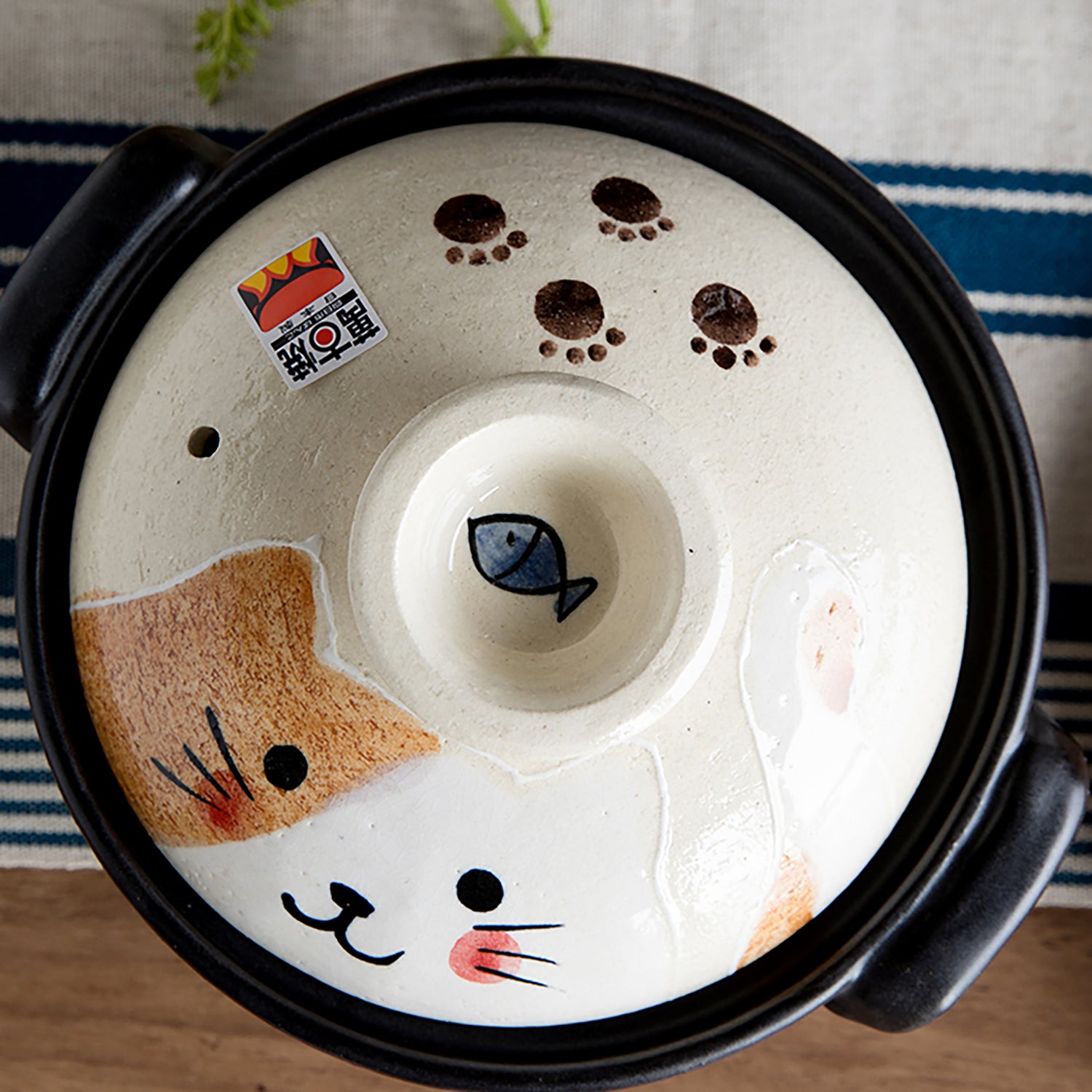 Cocotte japonaise Banko-yaki avec Motif chat peint à la main