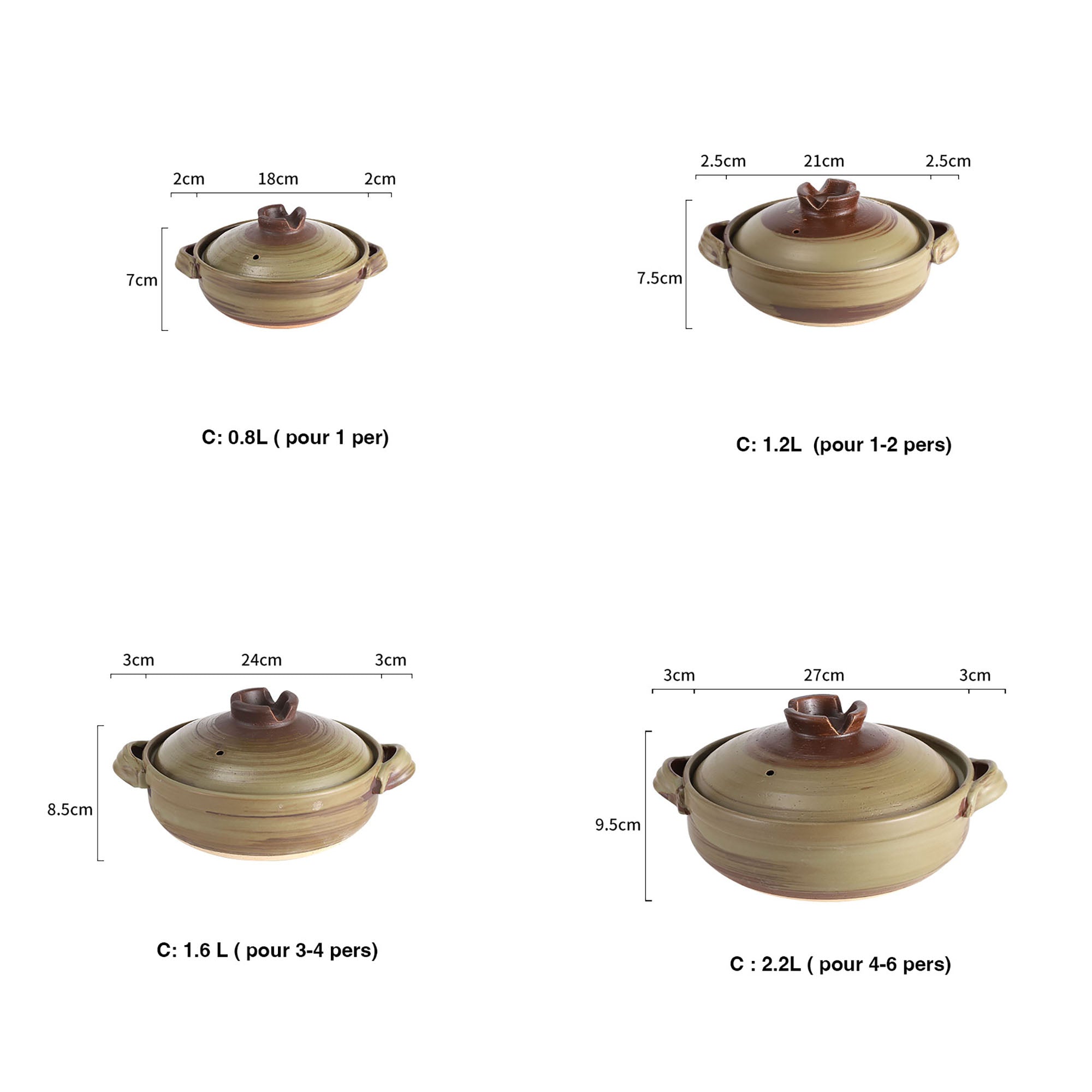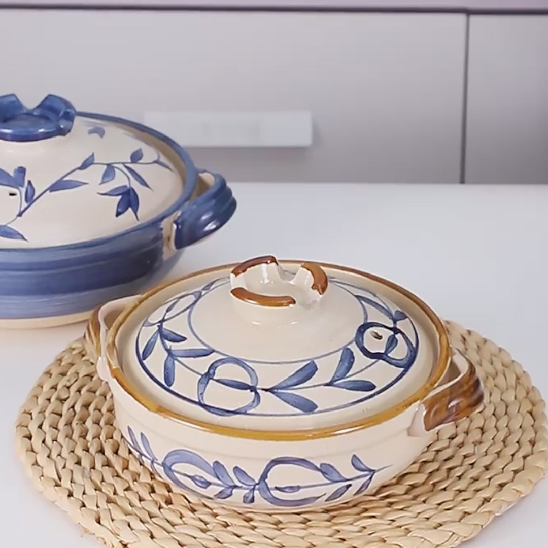Cocotte fabriquée à la main avec un artisanat traditionnel chinois. Cette cocotte présente des motifs uniques de dessins à la main en bleu sur de l'argile lithique, garantissant la santé et la sécurité du produit. Avec une cuisson à haute température de 1300°C, elle offre une excellente stabilité thermique, résistant à des températures allant jusqu'à 450°C sans se fissurer.