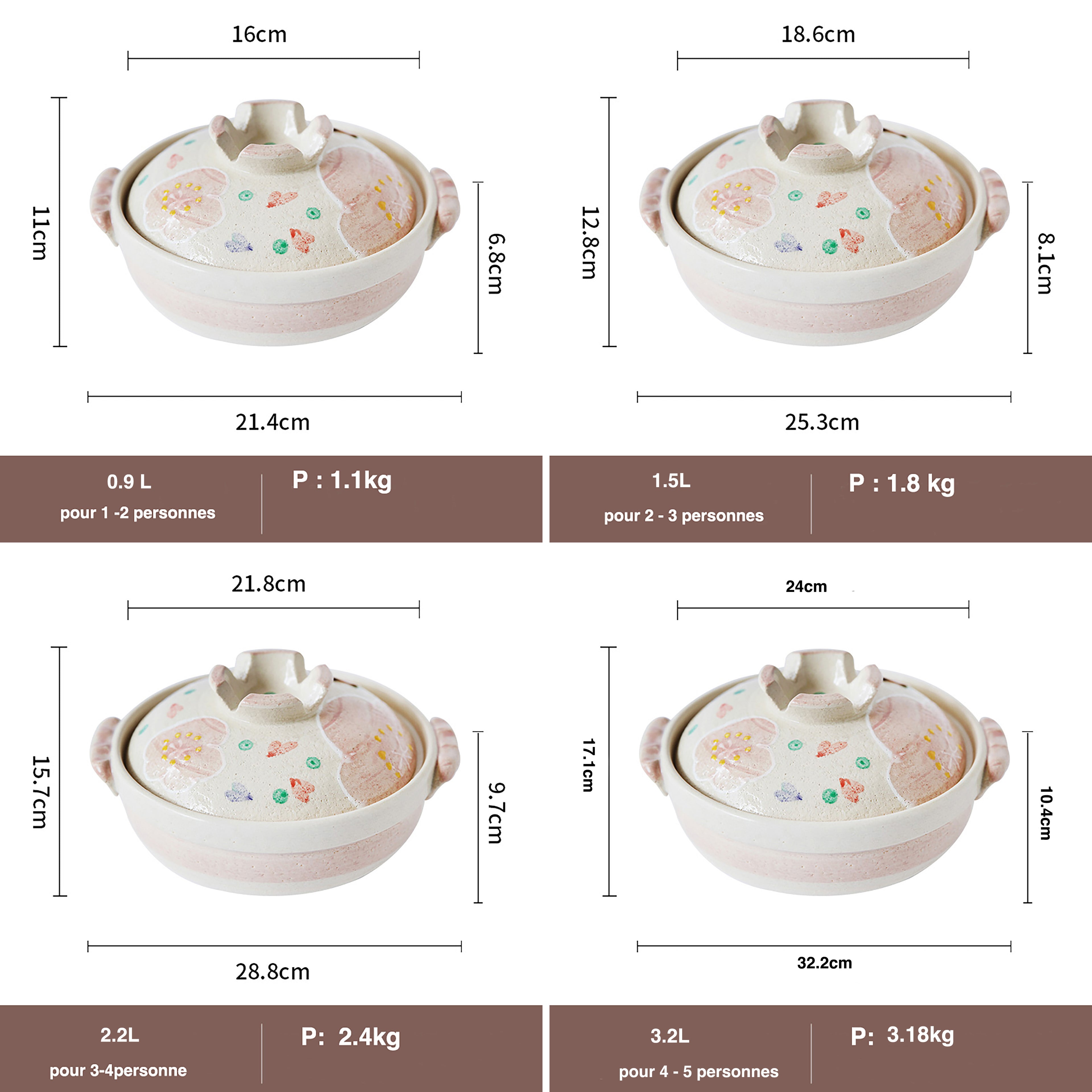 - Capacité : 3.2L - dimension L24cm x H 17.1cm