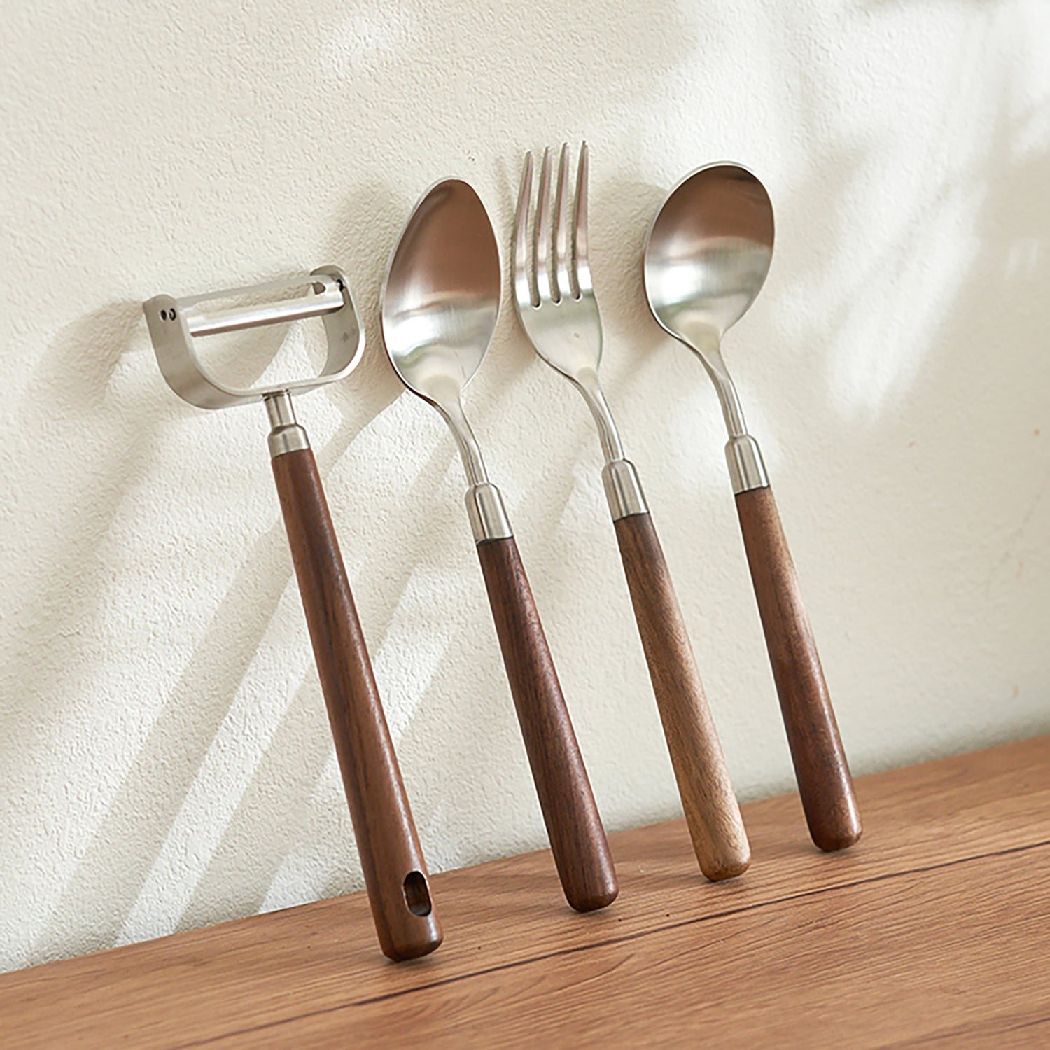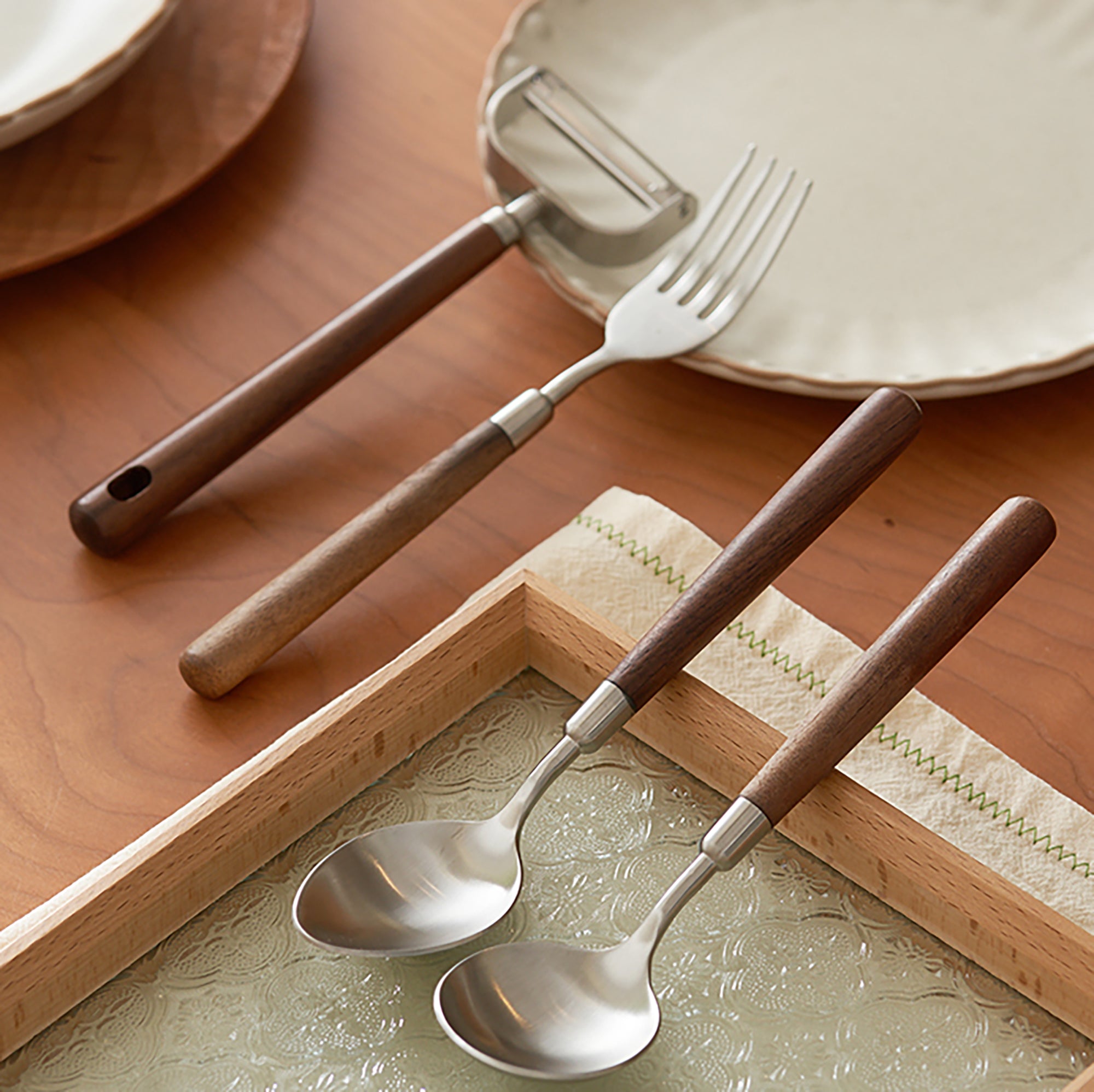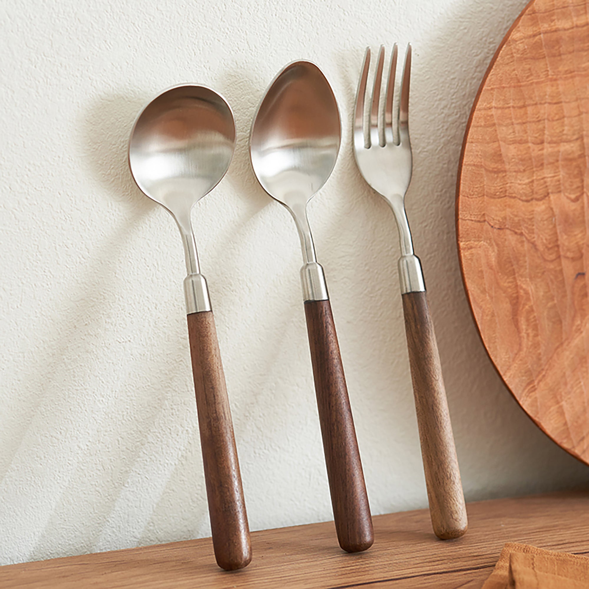 Ces couverts en acier inoxydable 304 allient durabilité et esthétique raffinée. Leur manche en bois de noyer conserve une texture naturelle et une prise en main agréable, apportant une touche chaleureuse et authentique à votre table. Avec leur design sobre et intemporel, ils s’intègrent parfaitement à tous les styles de vaisselle, pour un plaisir quotidien aussi fonctionnel qu’élégant.